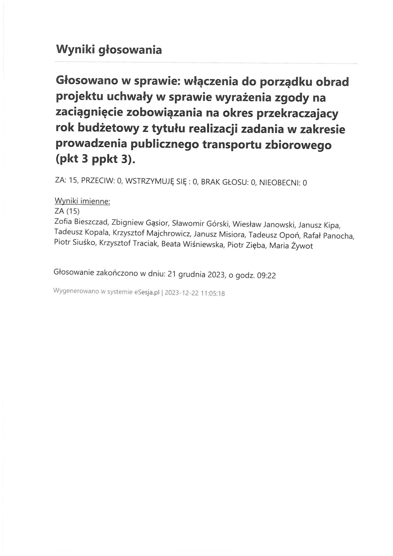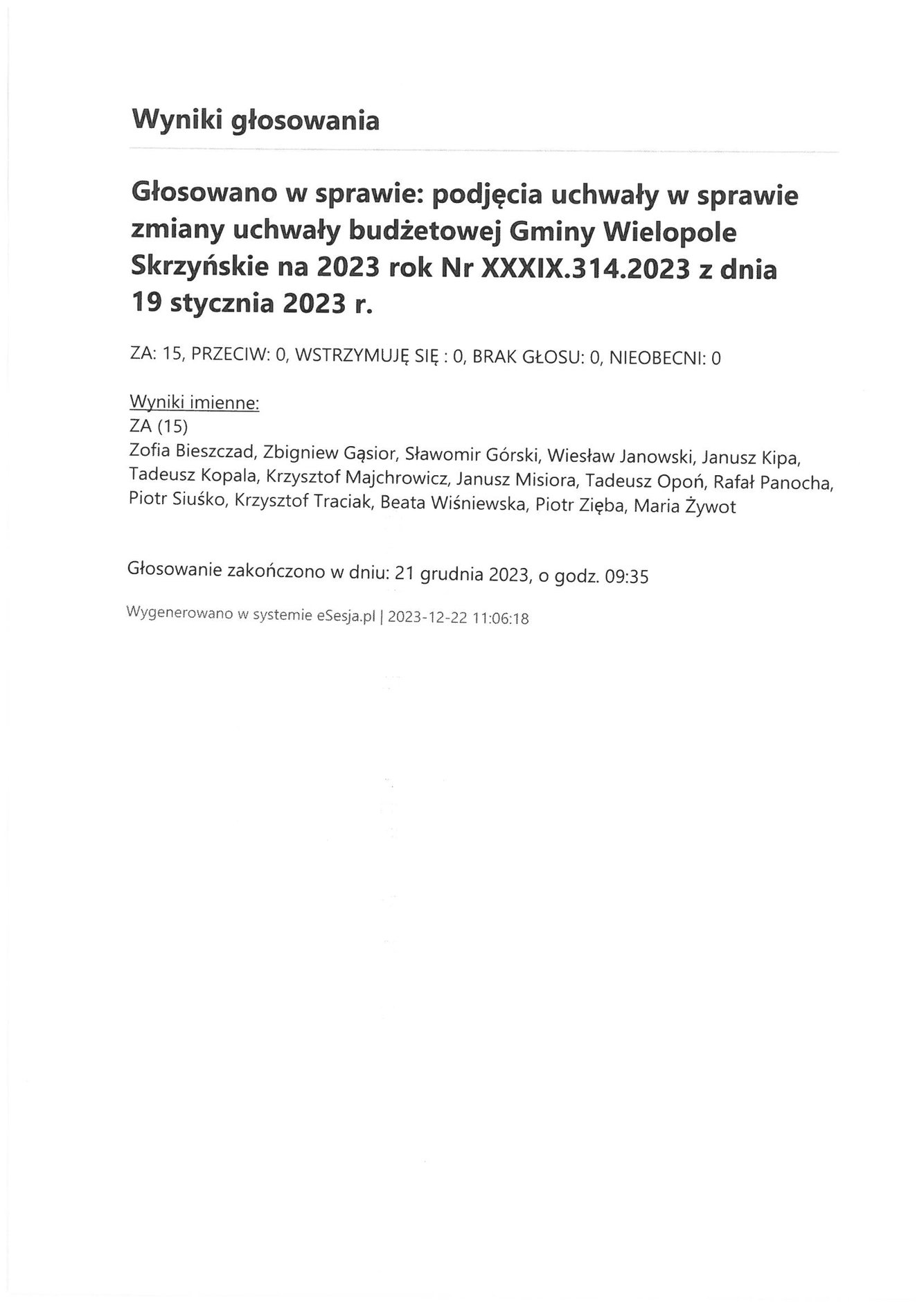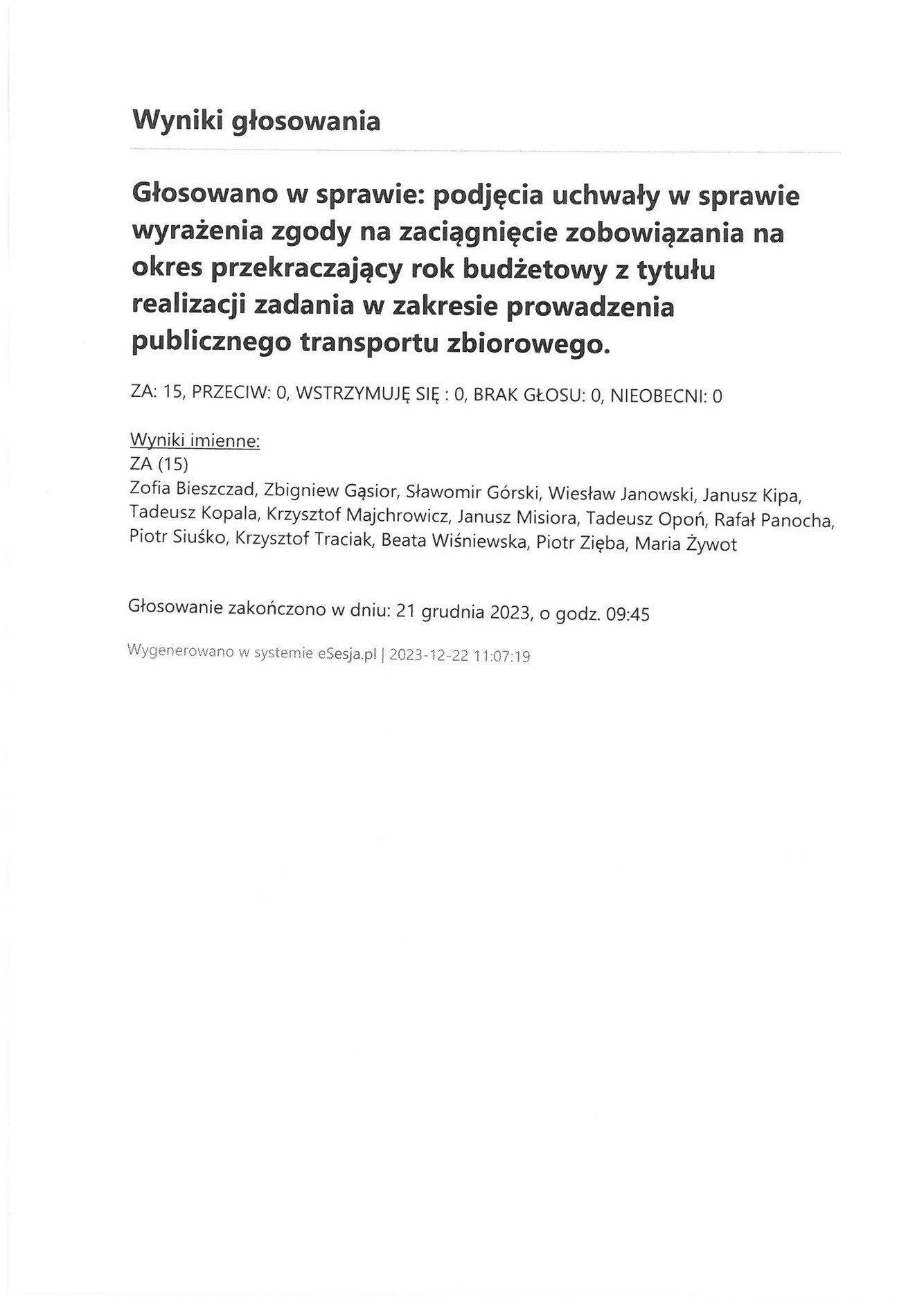 Piątek 22 grudnia 2023 Imienny wykaz głosowań radnych Strona Główna/Informator/InformacjeImienny wykaz głosowań radnychImienny wykaz głosowań radnych
