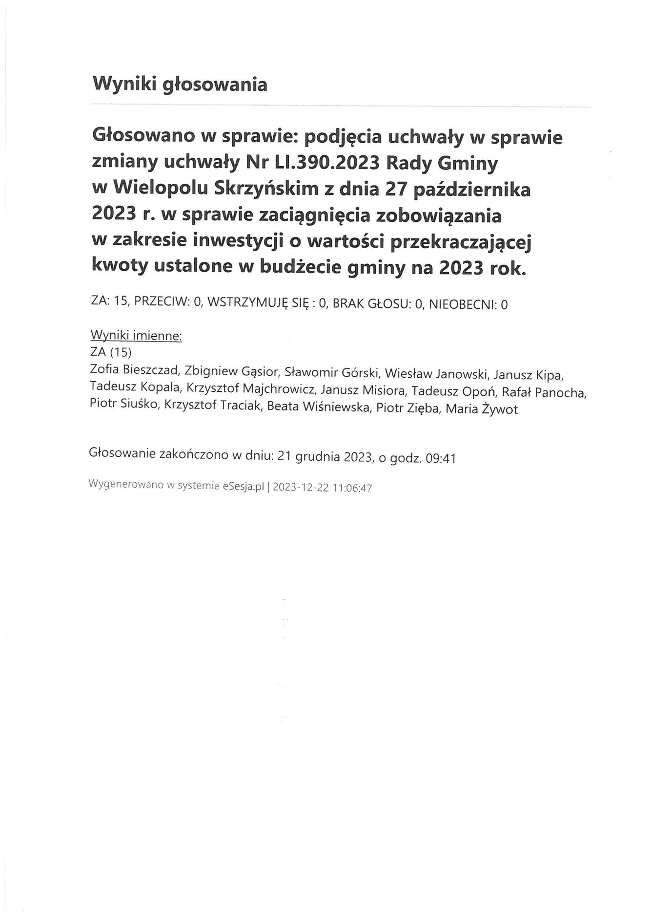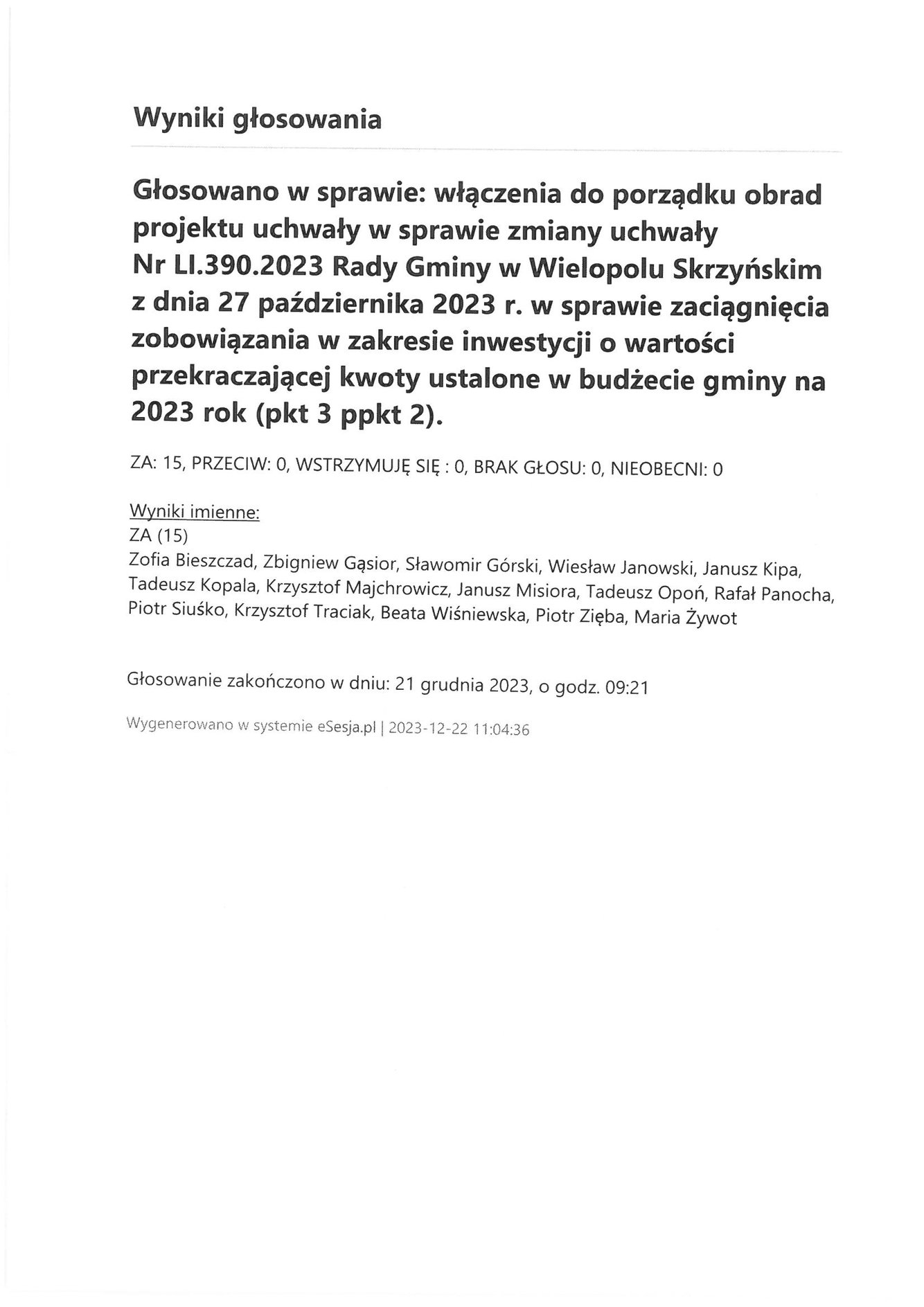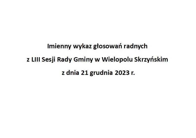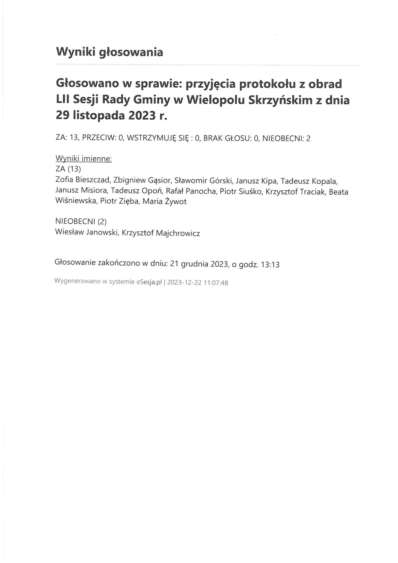 Piątek 22 grudnia 2023 Imienny wykaz głosowań radnych Strona Główna/Informator/InformacjeImienny wykaz głosowań radnychImienny wykaz głosowań radnych