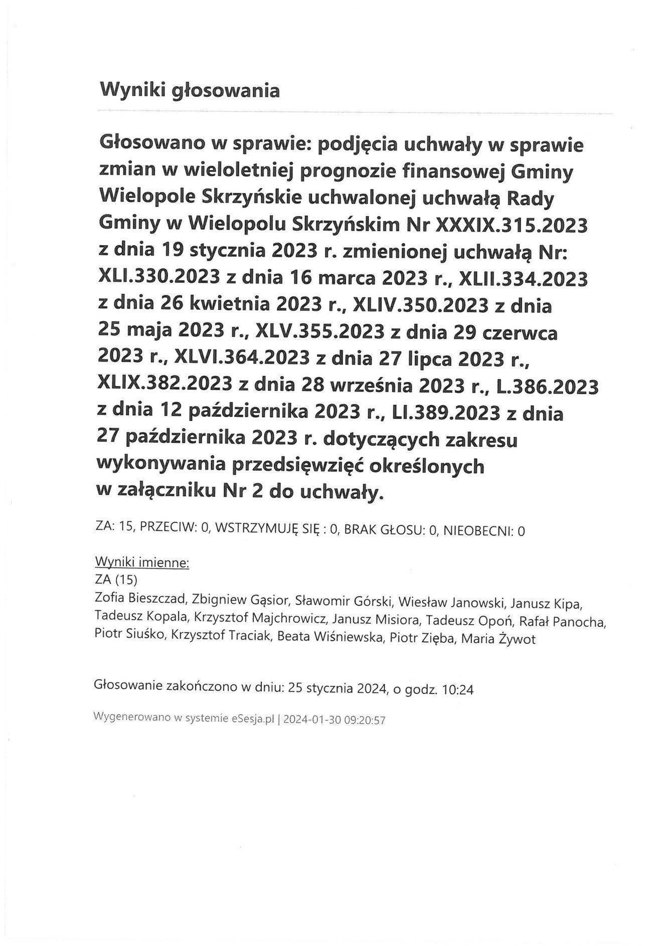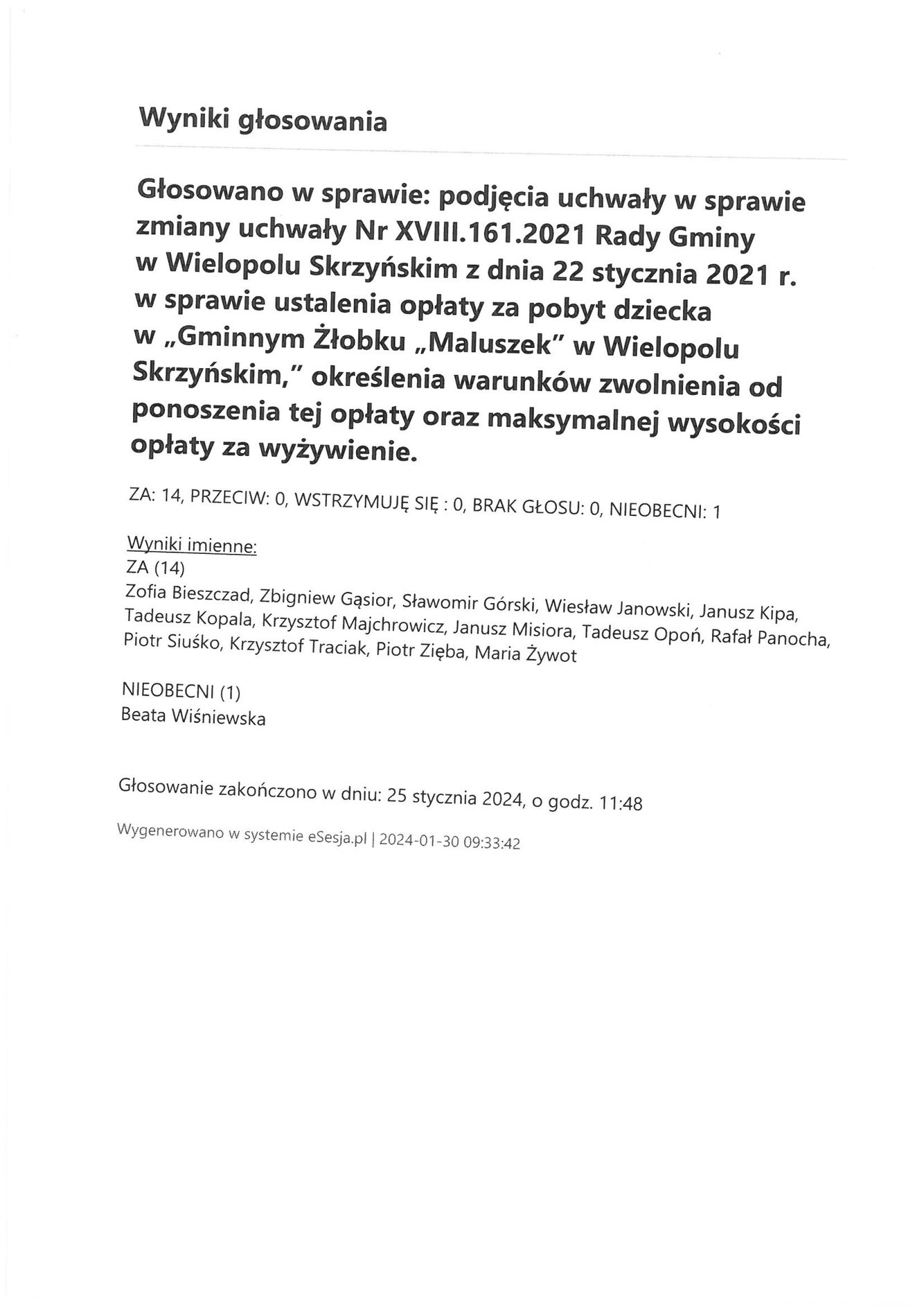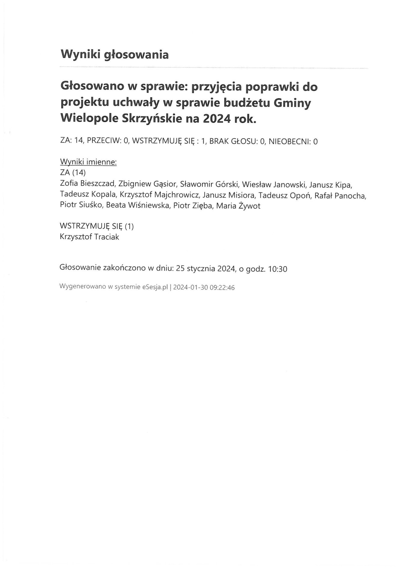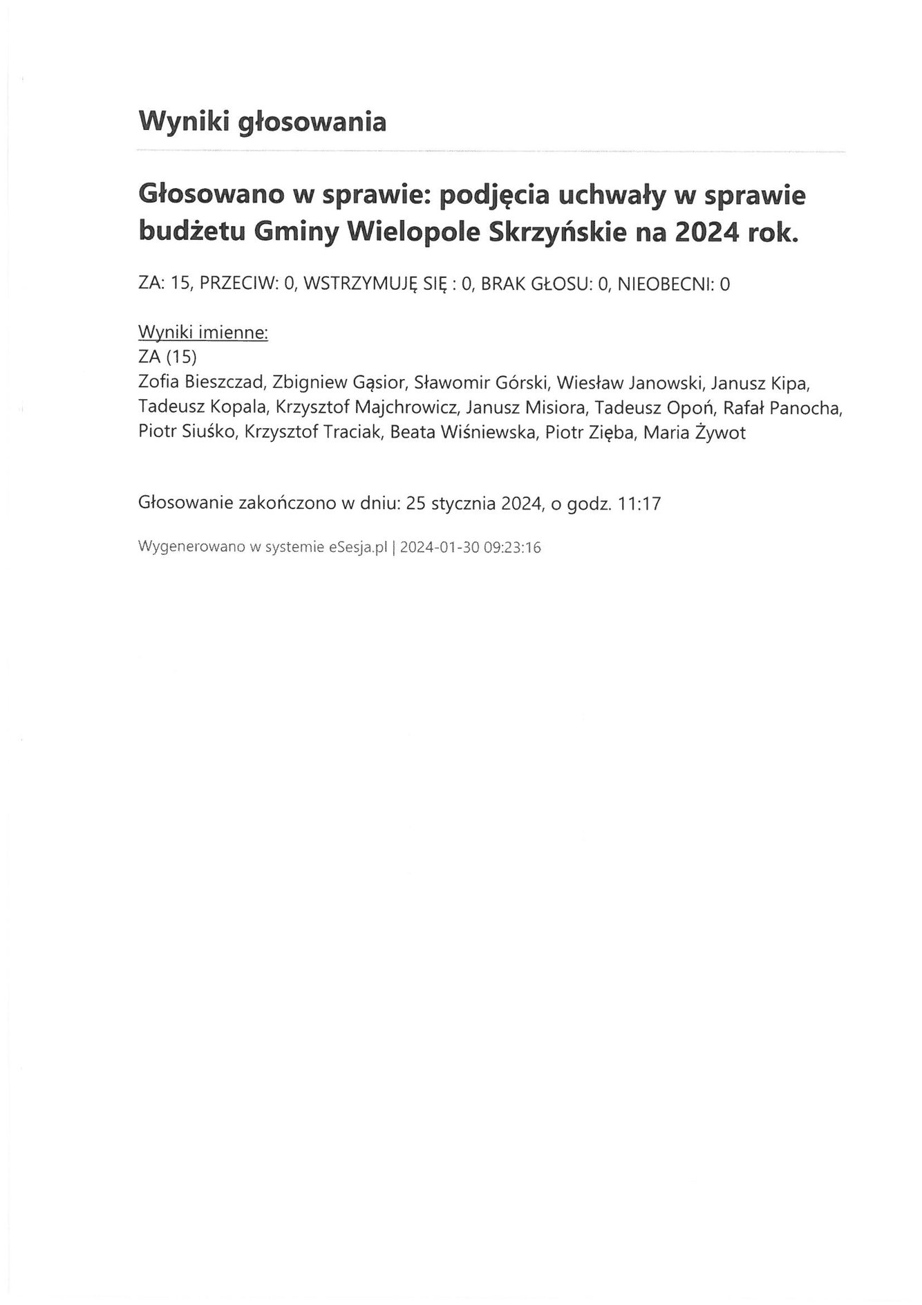 Wtorek 30 stycznia 2024 Imienny wykaz głosowań radnych Strona Główna/Informator/InformacjeImienny wykaz głosowań radnychImienny wykaz głosowań radnych