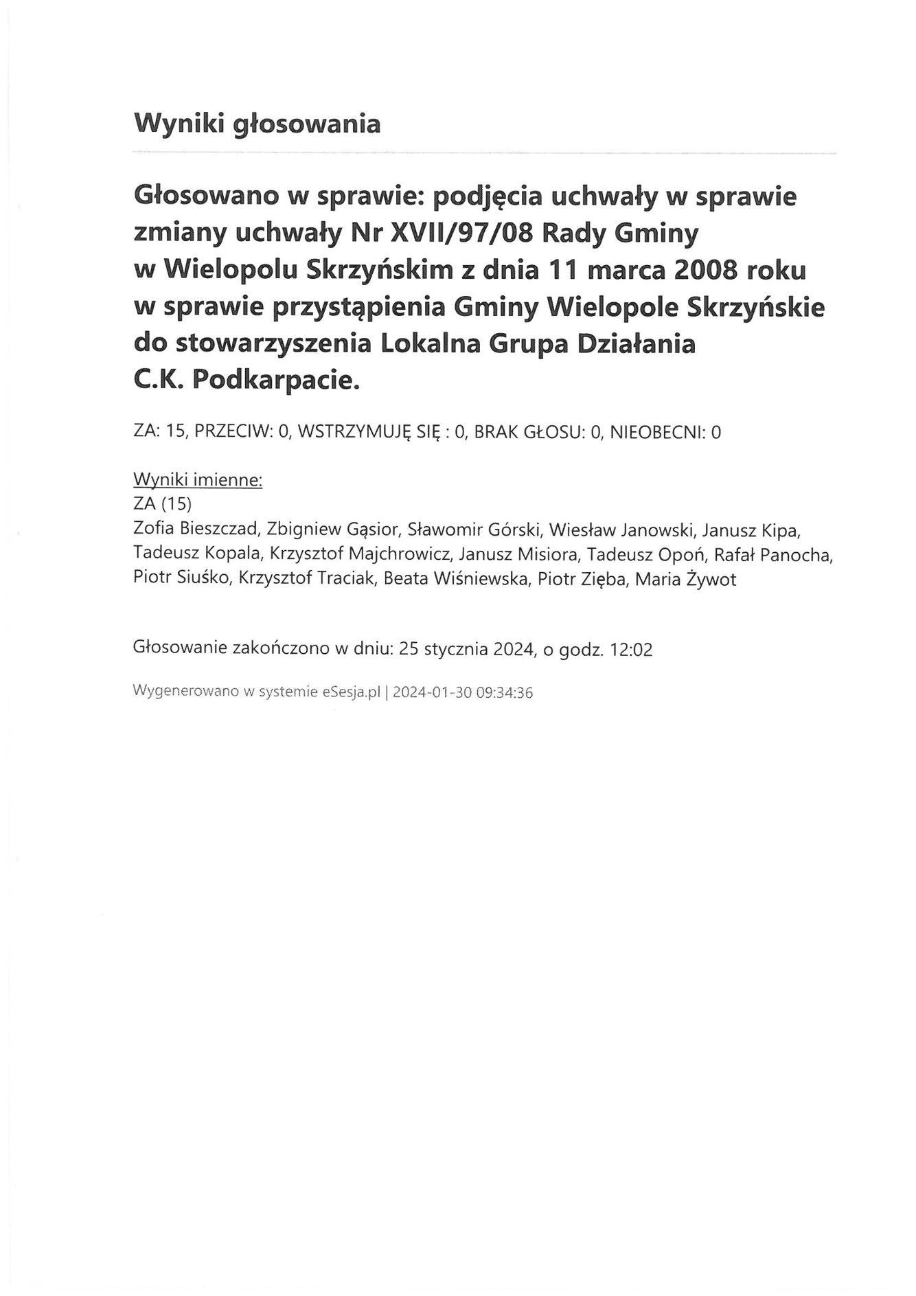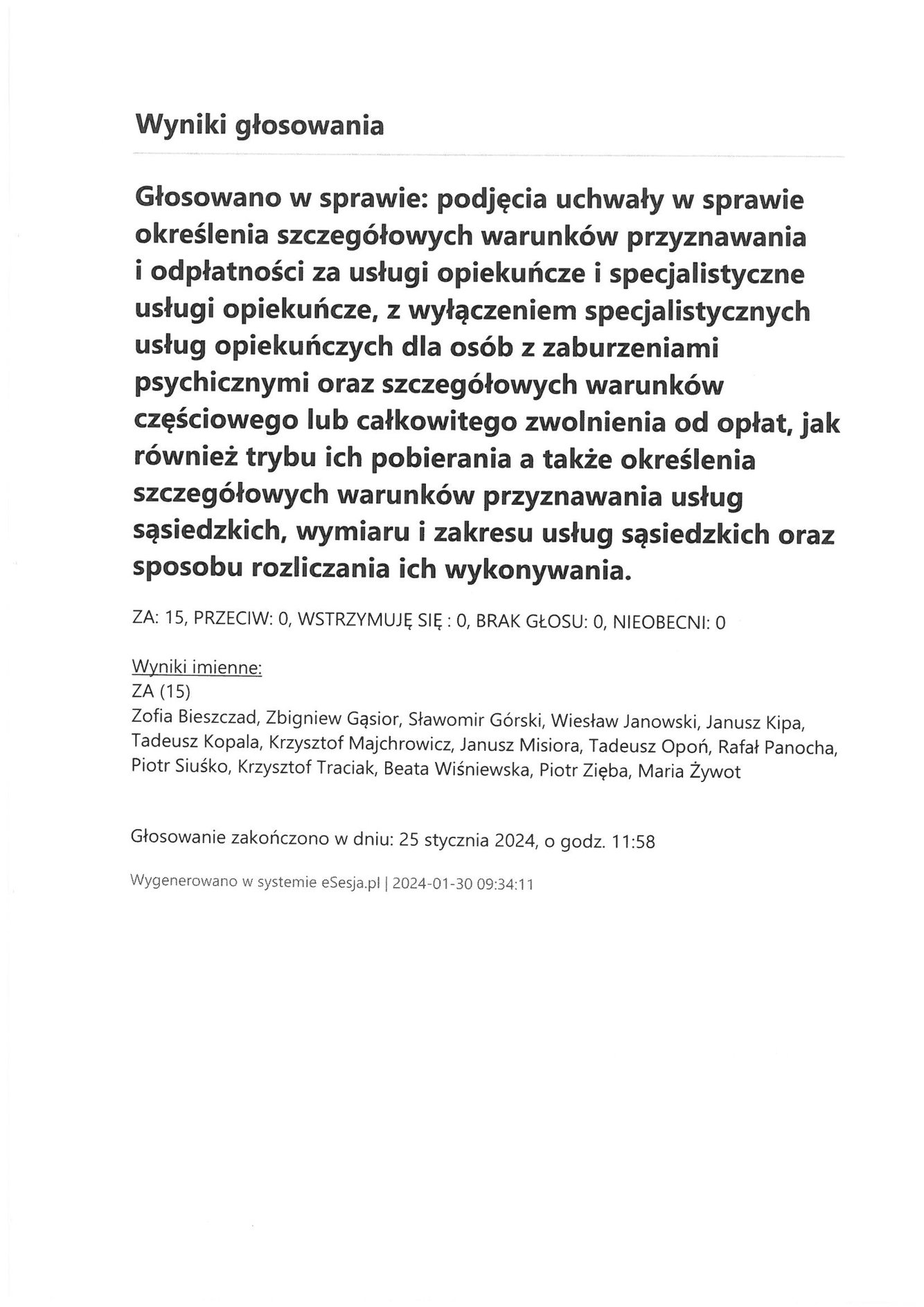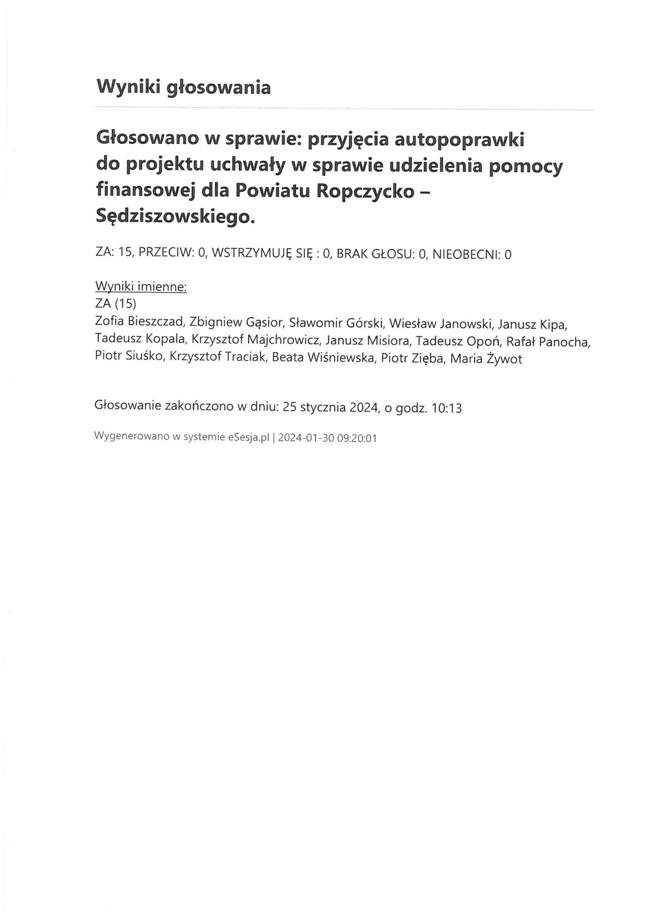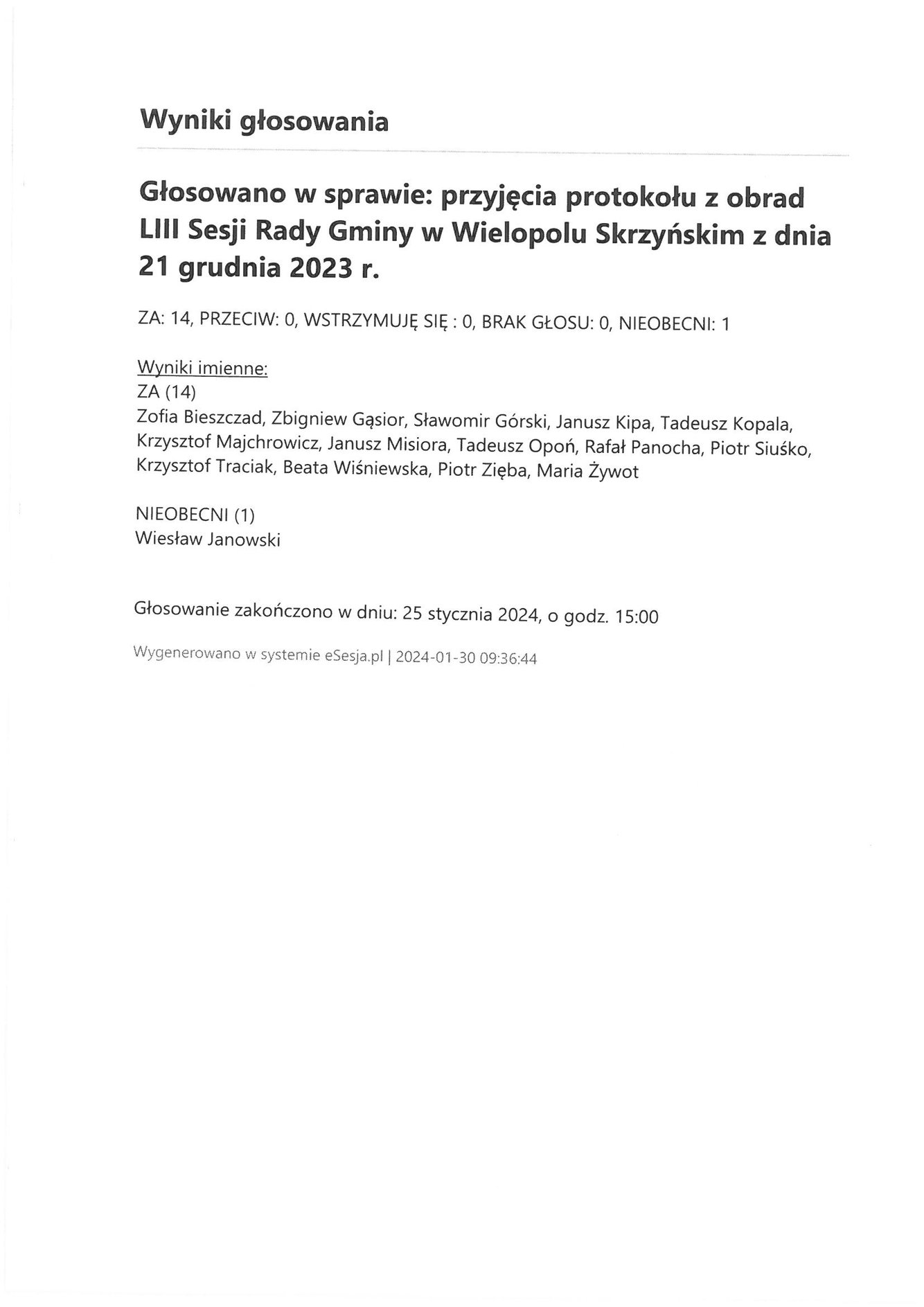 Wtorek 30 stycznia 2024 Imienny wykaz głosowań radnych Strona Główna/Informator/InformacjeImienny wykaz głosowań radnychImienny wykaz głosowań radnych