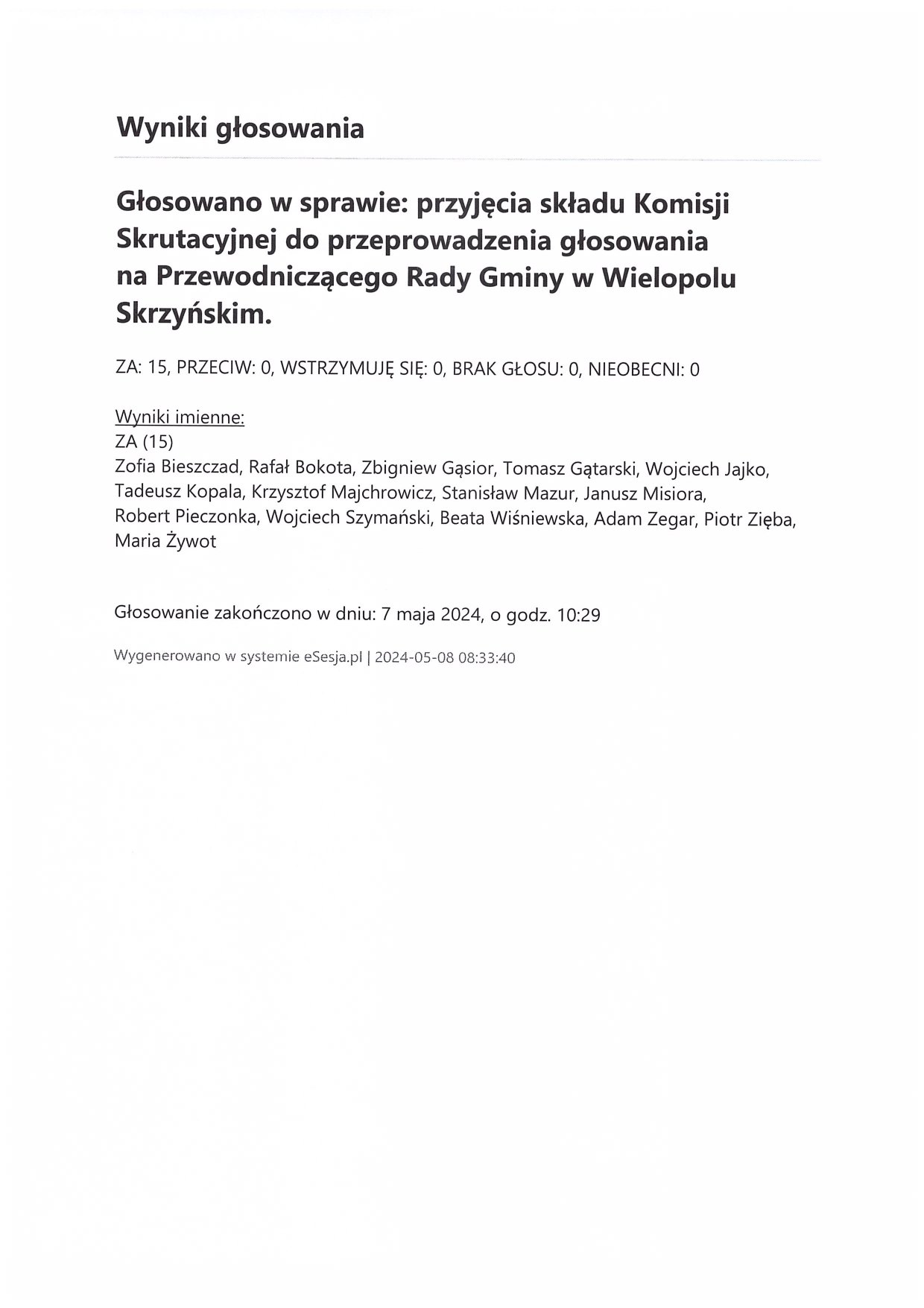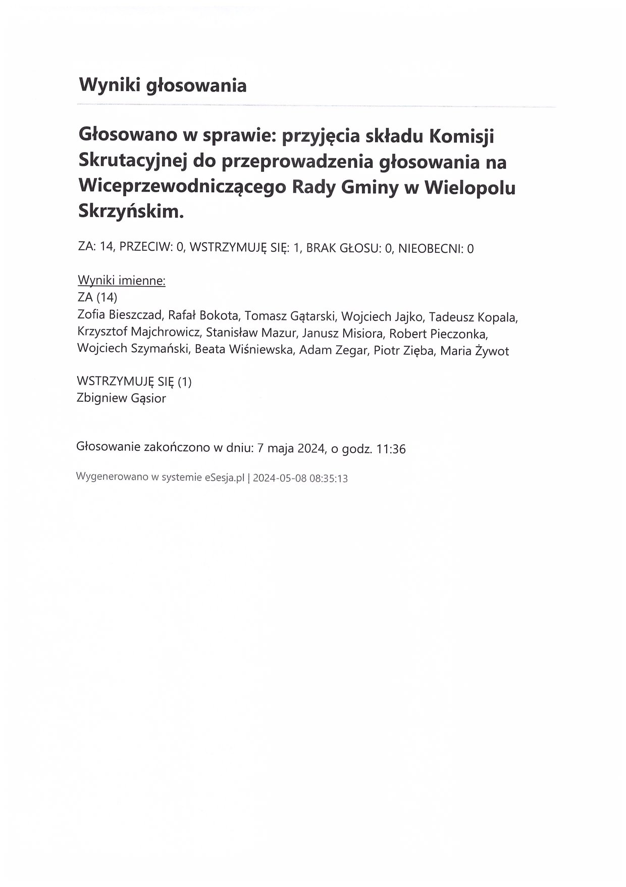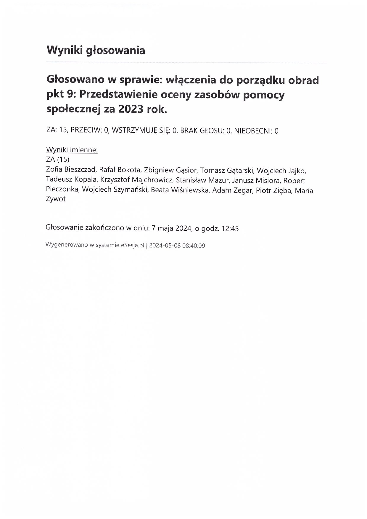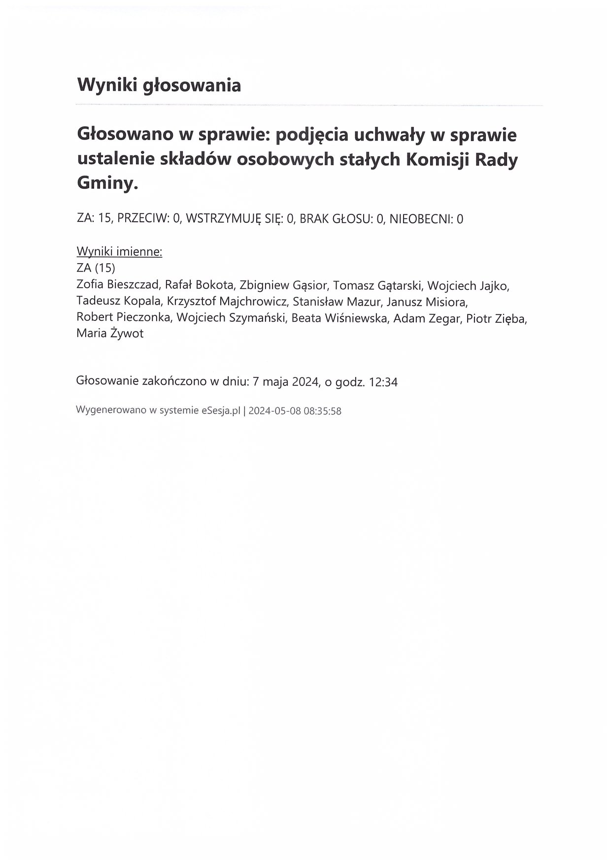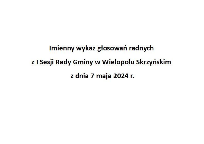 Środa 8 maja 2024 Imienny wykaz głosowań radnych Strona Główna/Informator/InformacjeImienny wykaz głosowań radnychImienny wykaz głosowań radnych