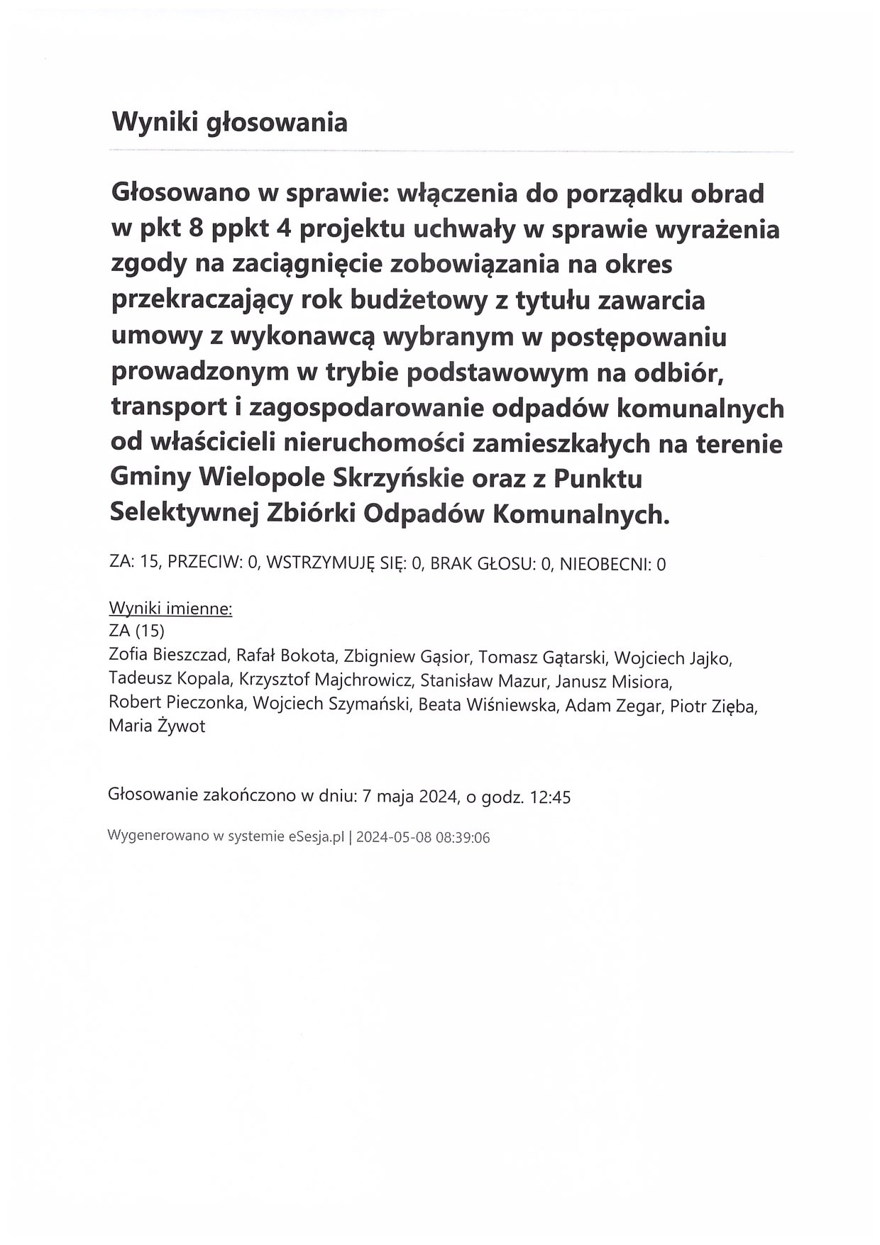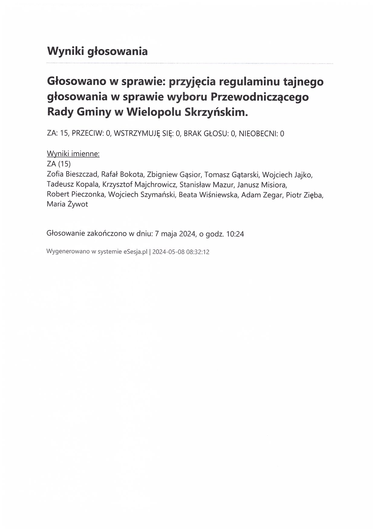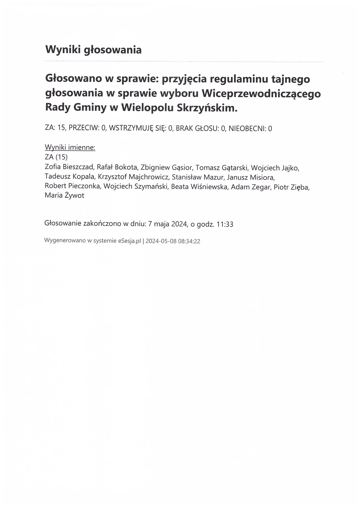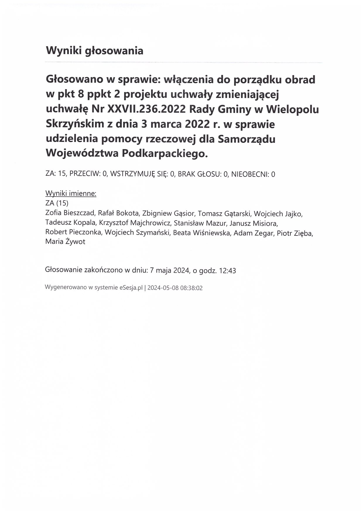 Środa 8 maja 2024 Imienny wykaz głosowań radnych Strona Główna/Informator/InformacjeImienny wykaz głosowań radnychImienny wykaz głosowań radnych