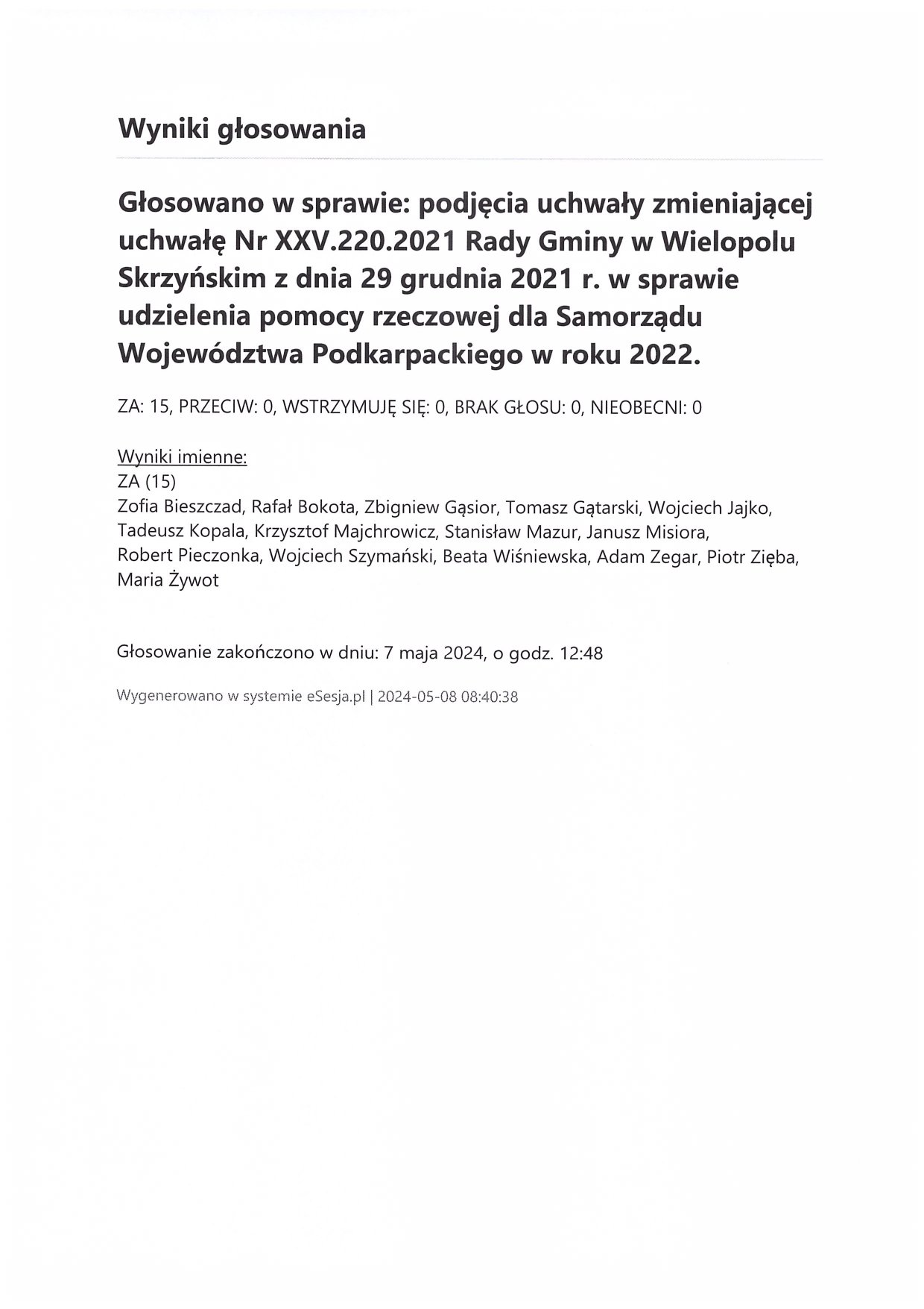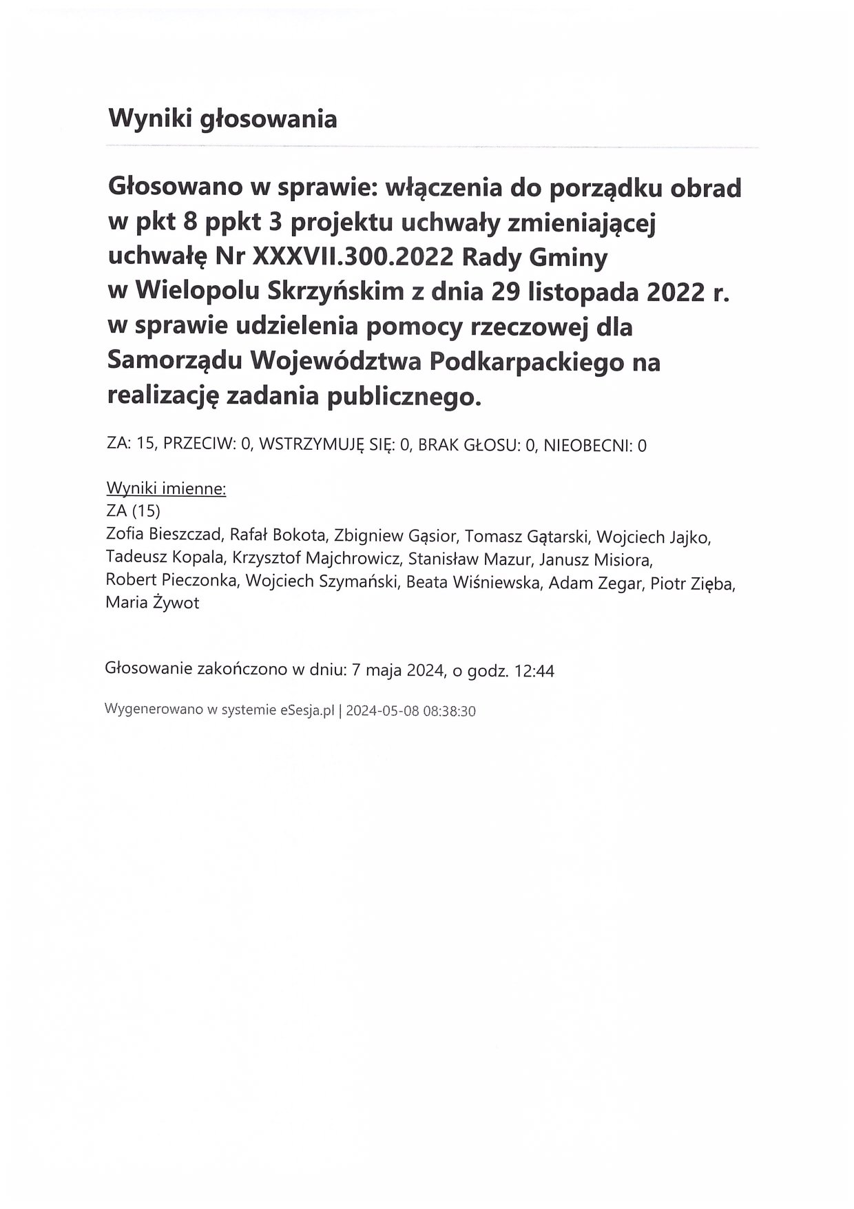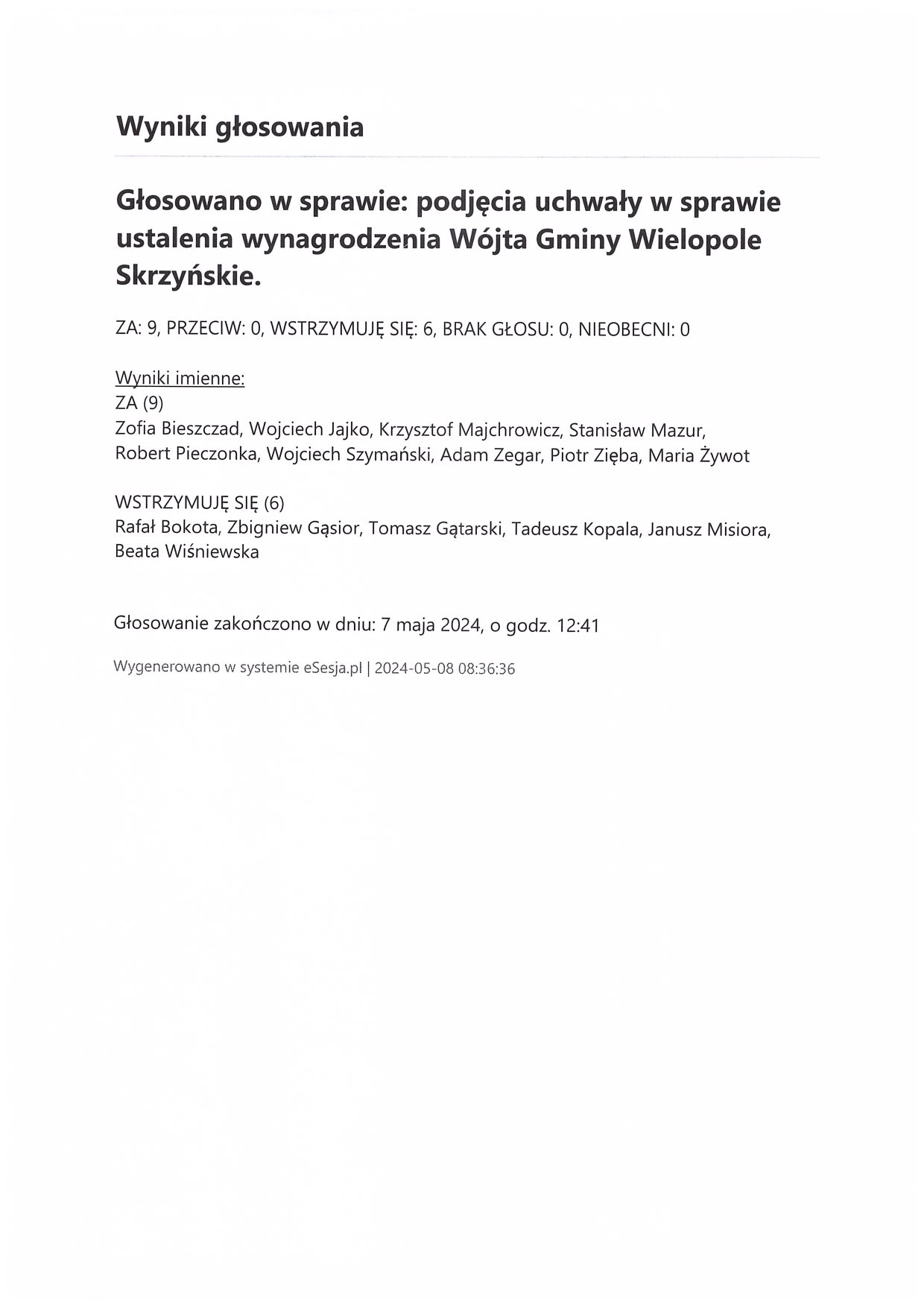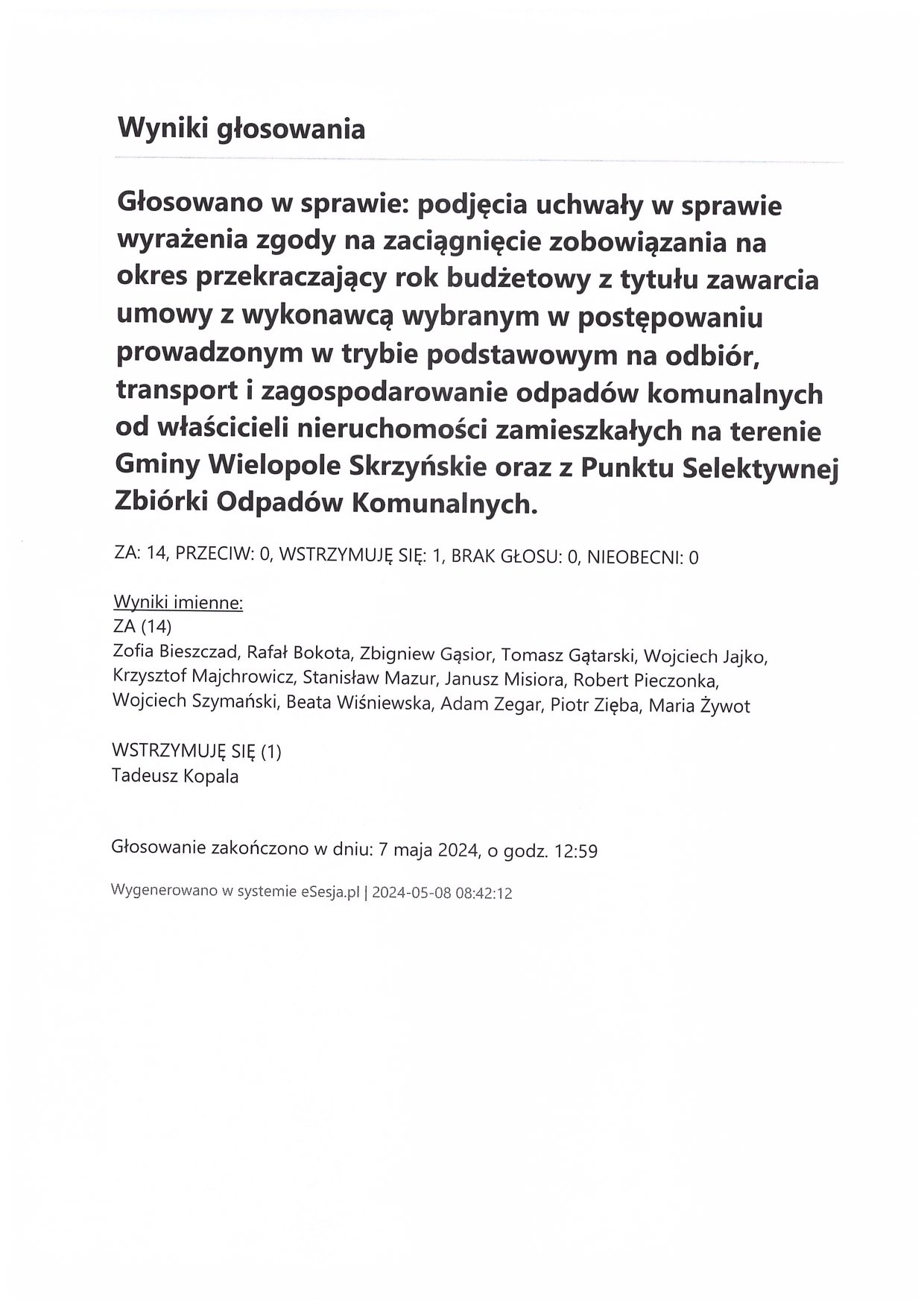 Środa 8 maja 2024 Imienny wykaz głosowań radnych Strona Główna/Informator/InformacjeImienny wykaz głosowań radnychImienny wykaz głosowań radnych
