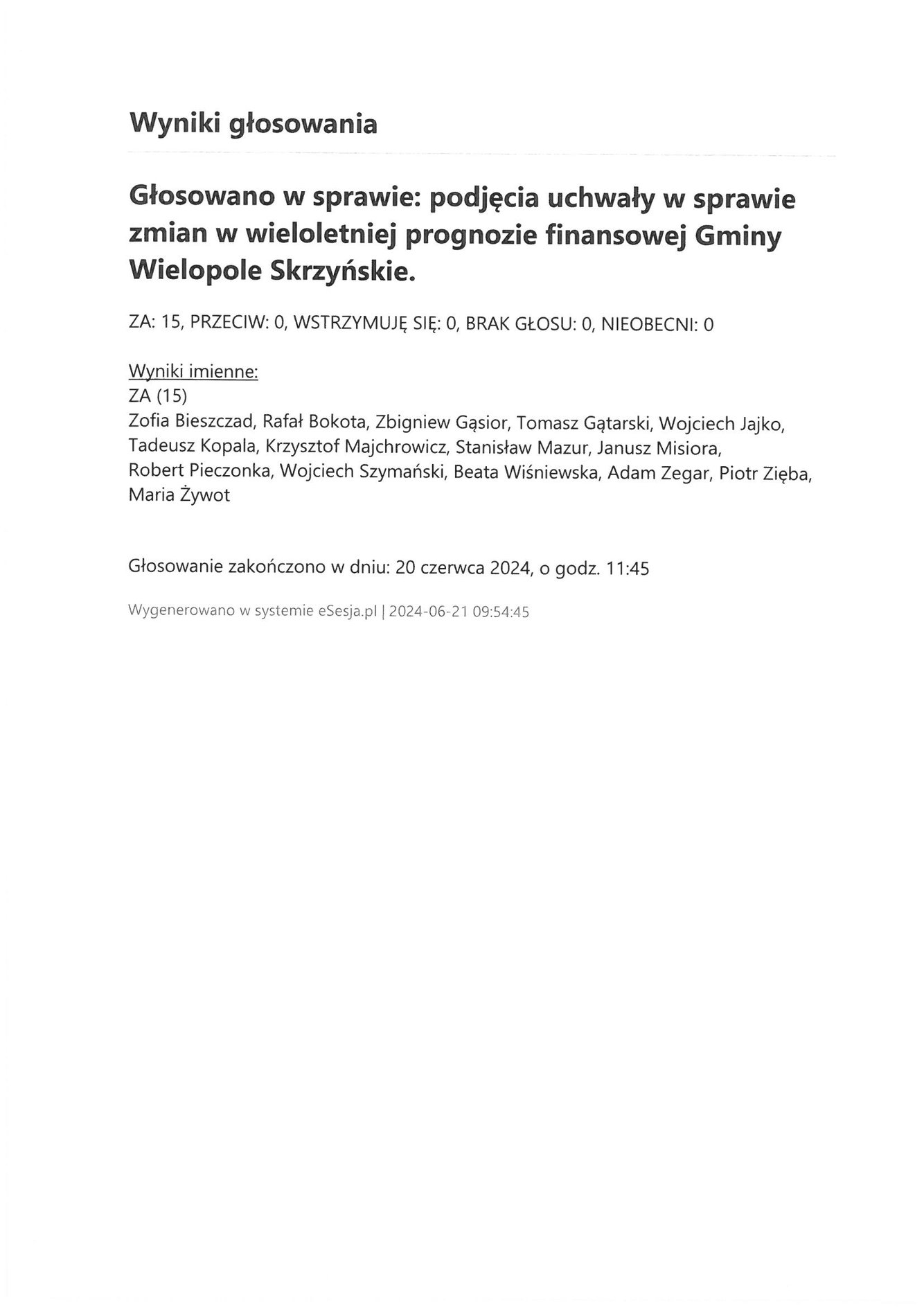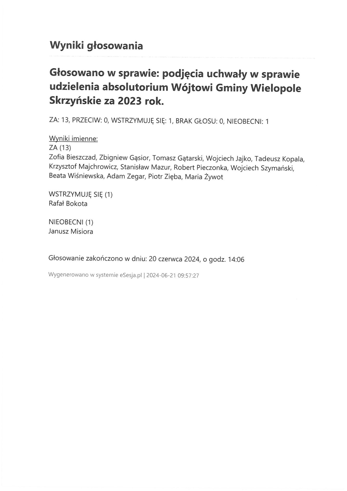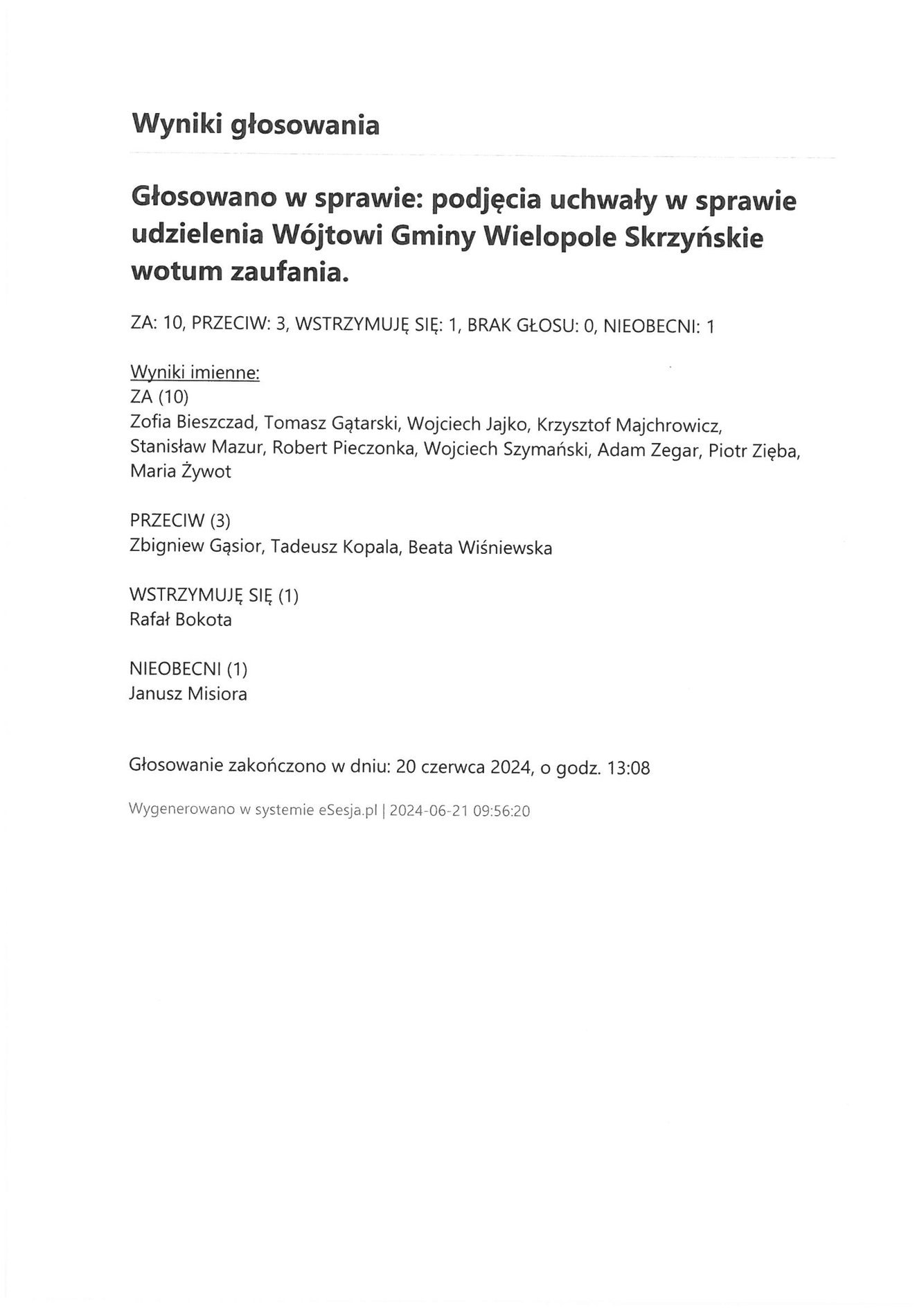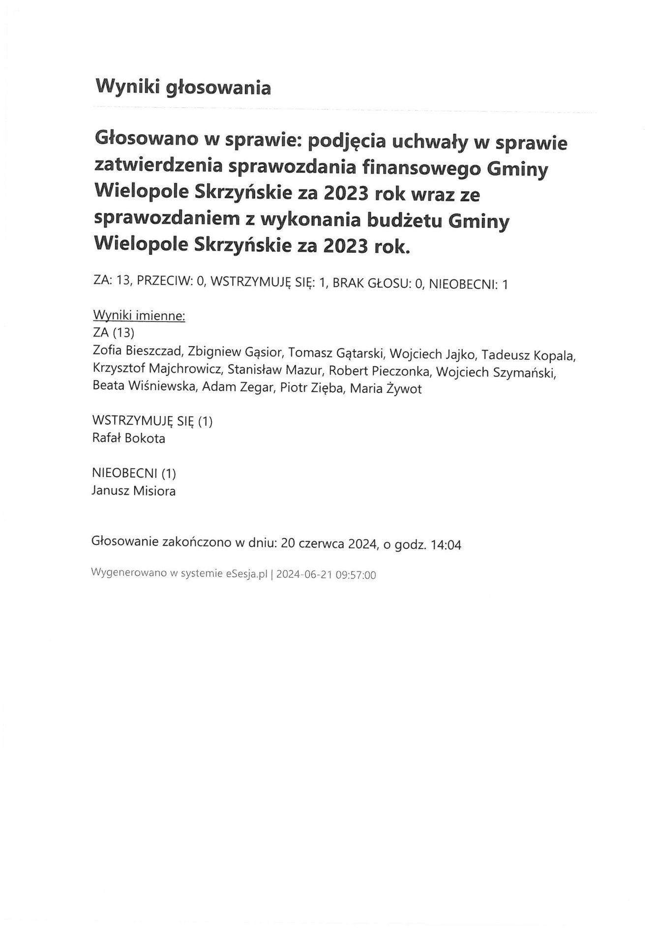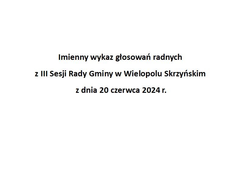 Piątek 21 czerwca 2024 Imienny wykaz głosowań radnych Strona Główna/Informator/InformacjeImienny wykaz głosowań radnychImienny wykaz głosowań radnych
