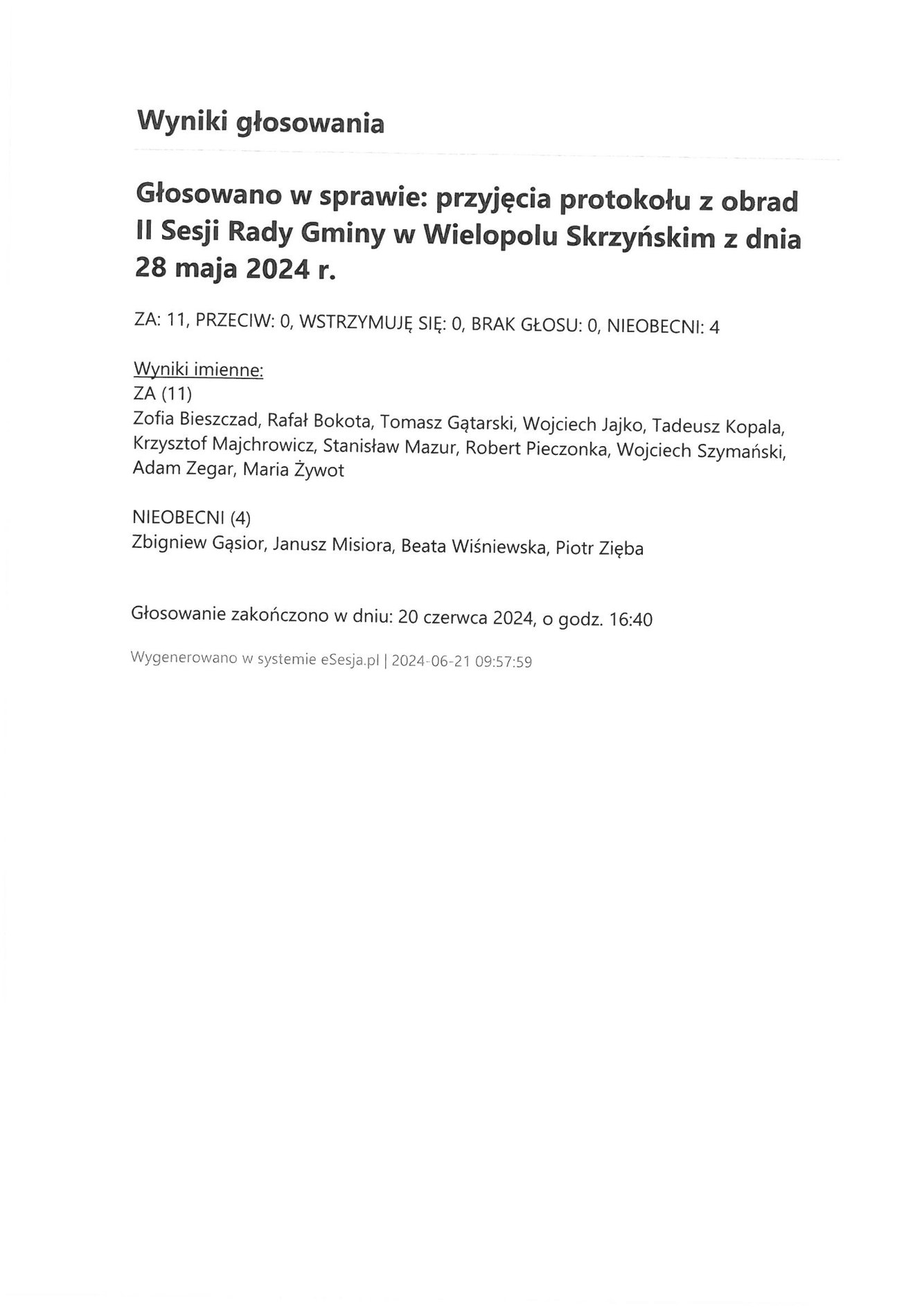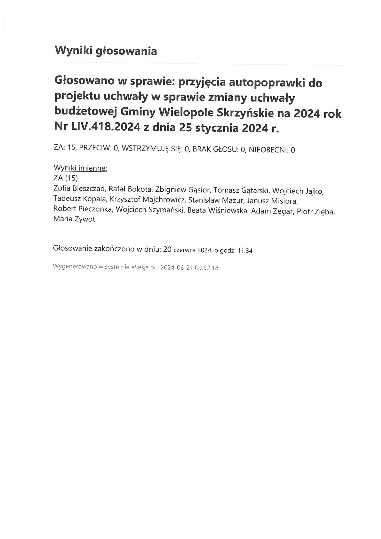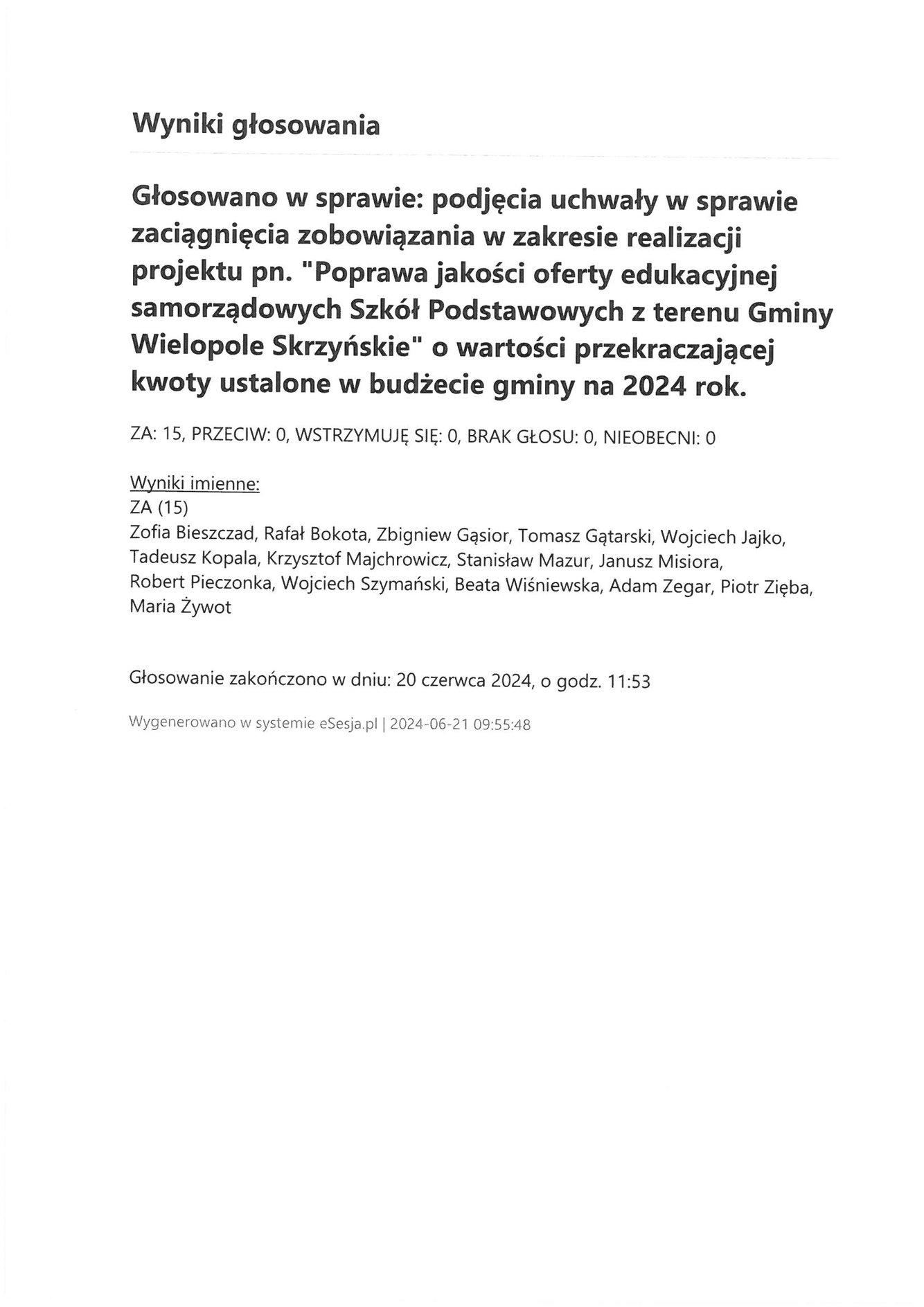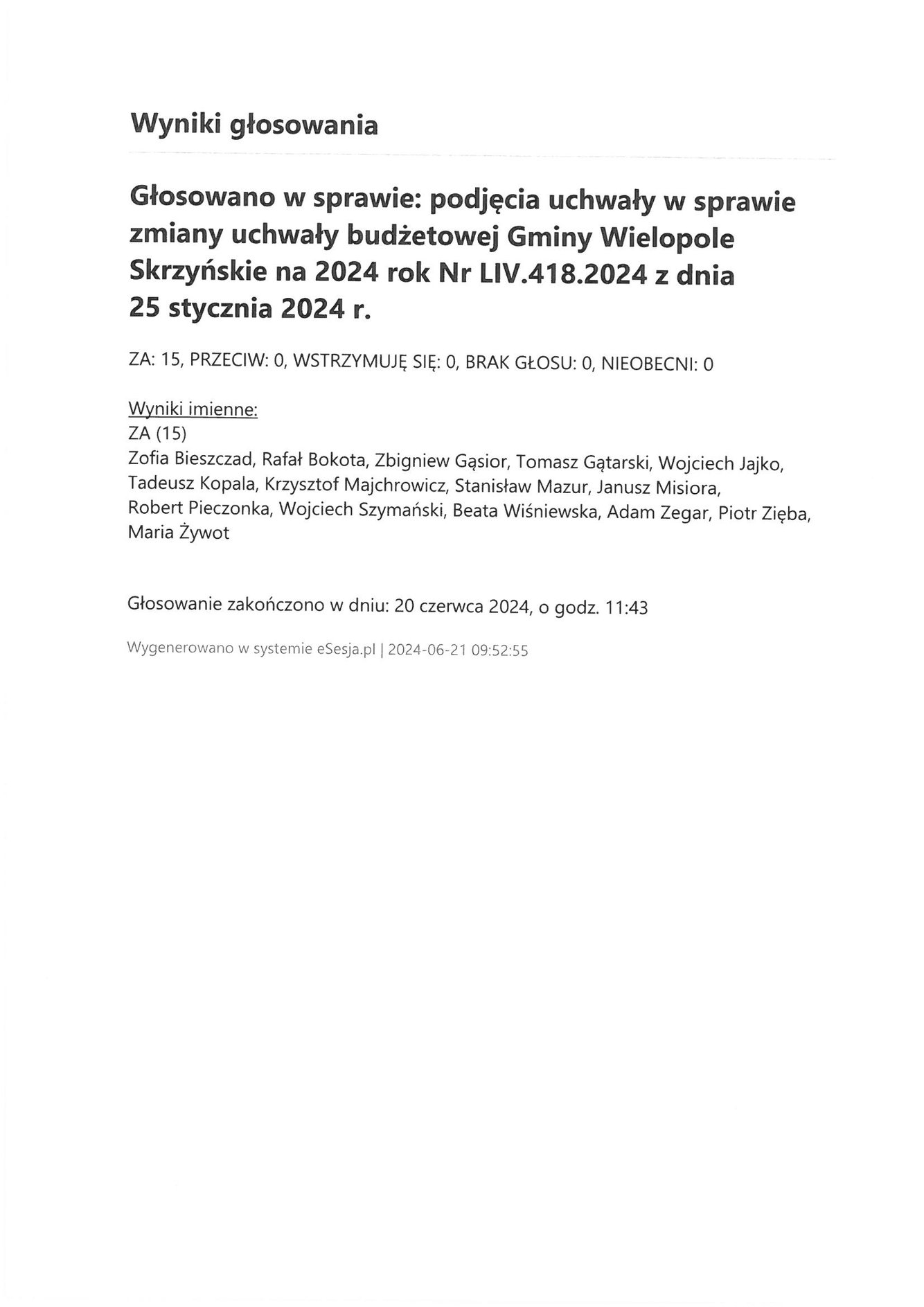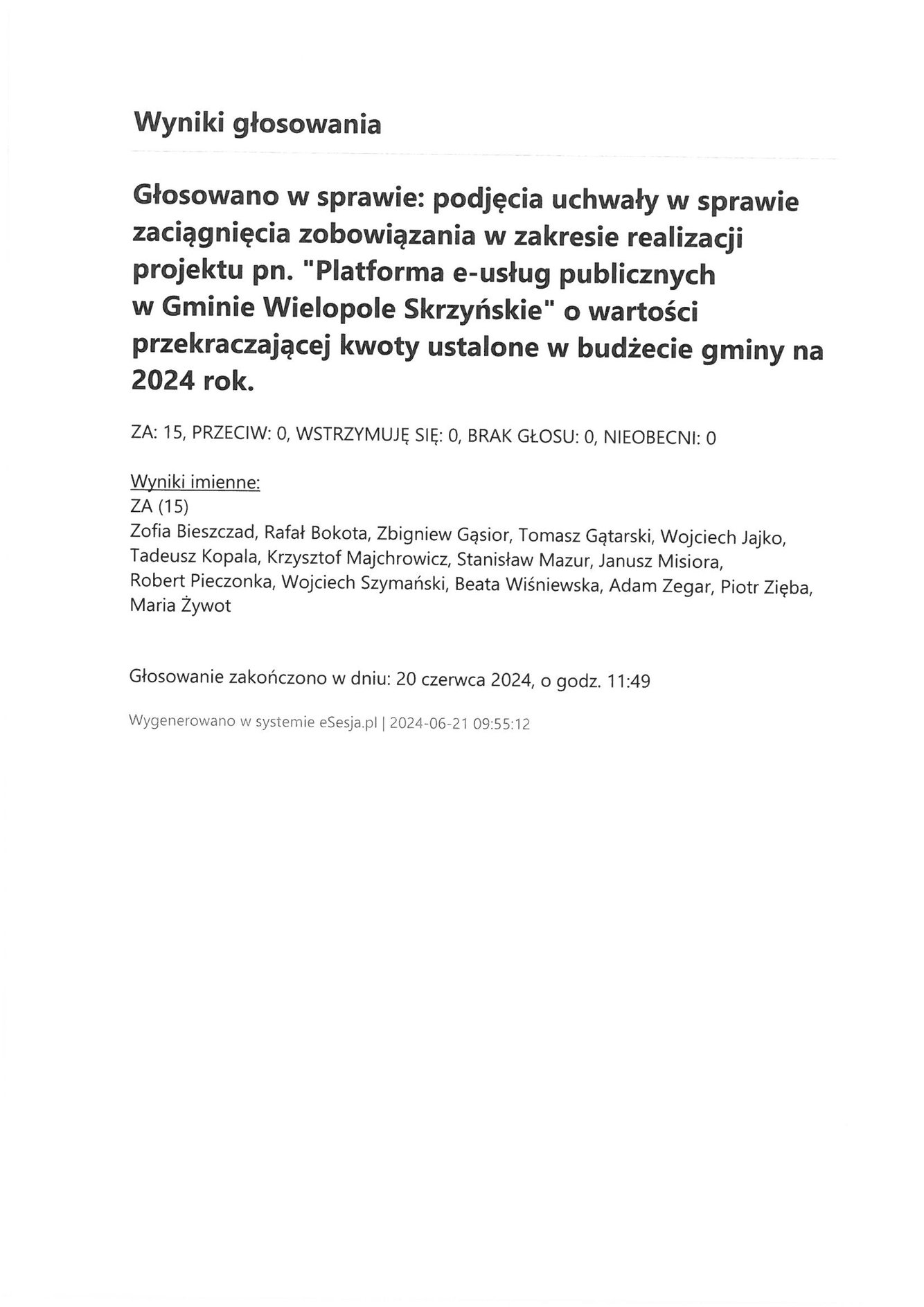 Piątek 21 czerwca 2024 Imienny wykaz głosowań radnych Strona Główna/Informator/InformacjeImienny wykaz głosowań radnychImienny wykaz głosowań radnych
