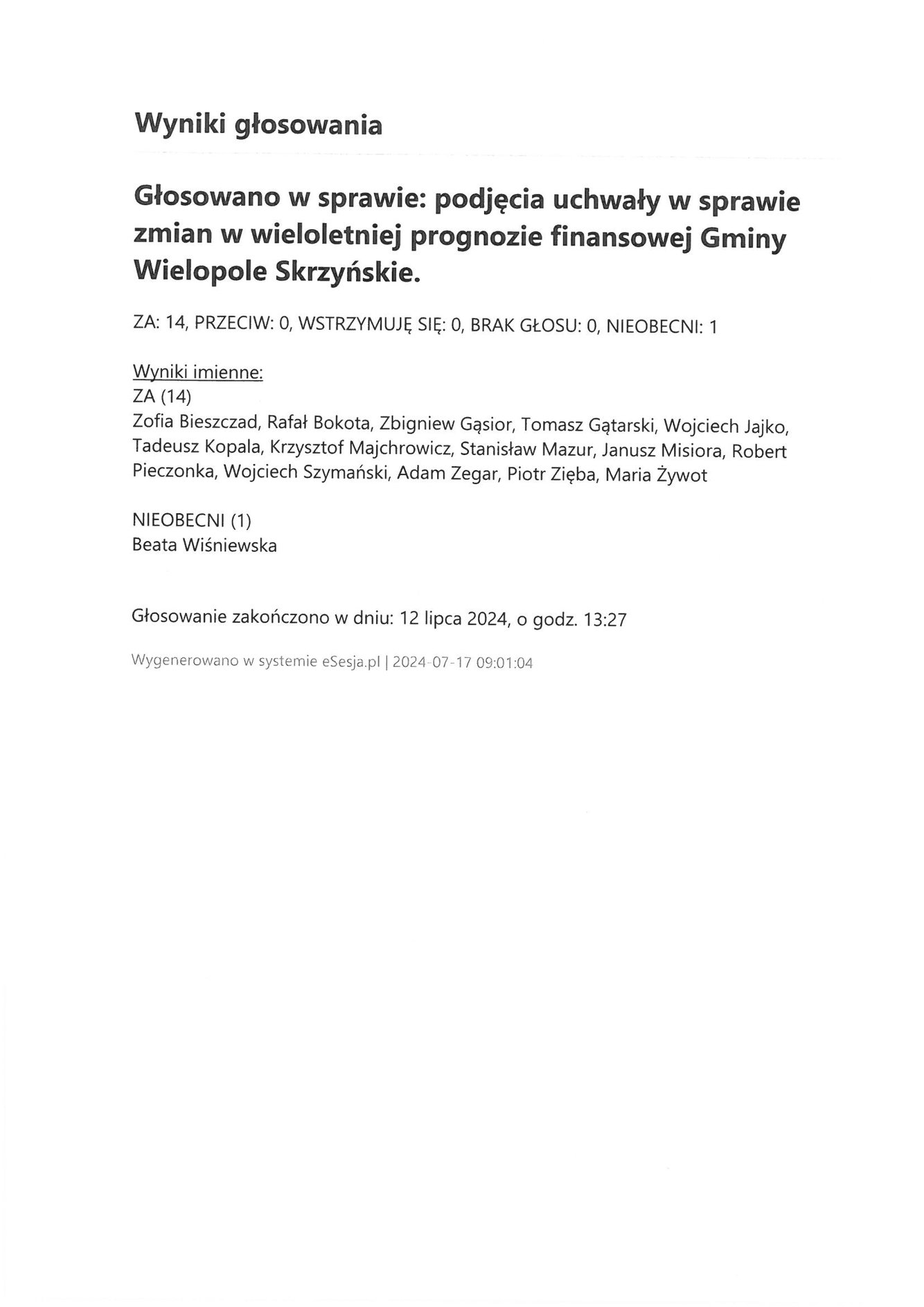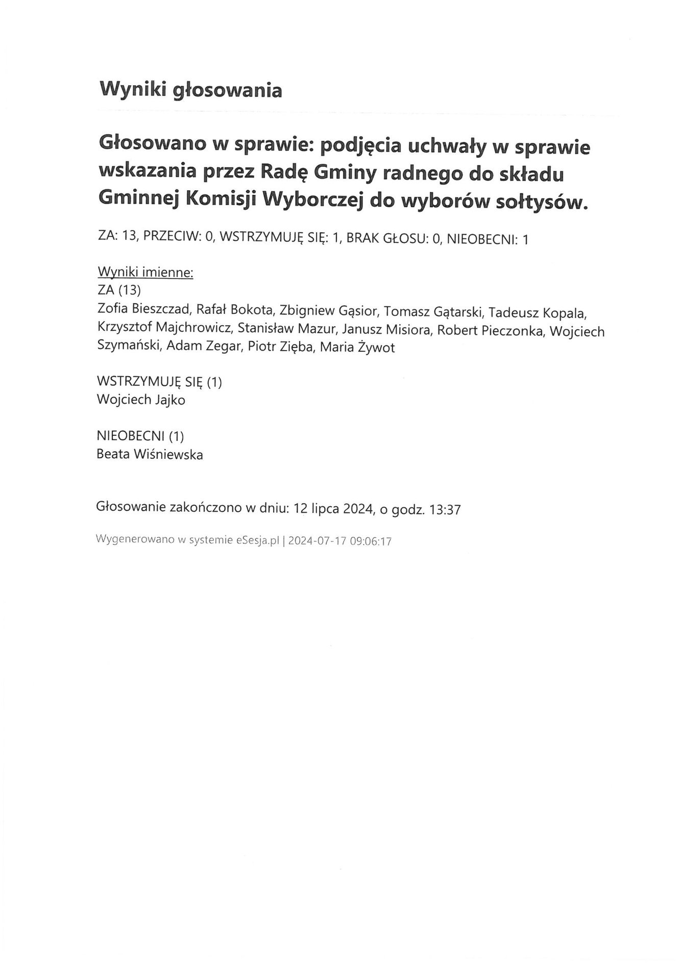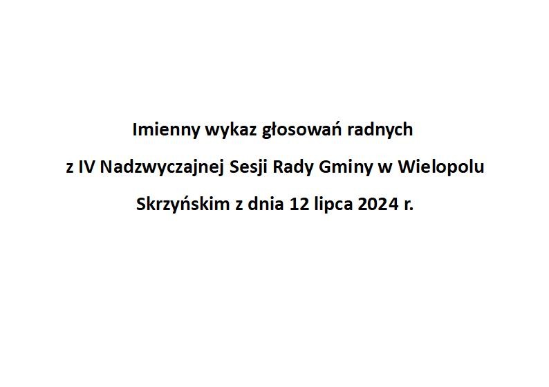 Środa 17 lipca 2024 Imienny wykaz głosowań radnych Strona Główna/Informator/InformacjeImienny wykaz głosowań radnychImienny wykaz głosowań radnych