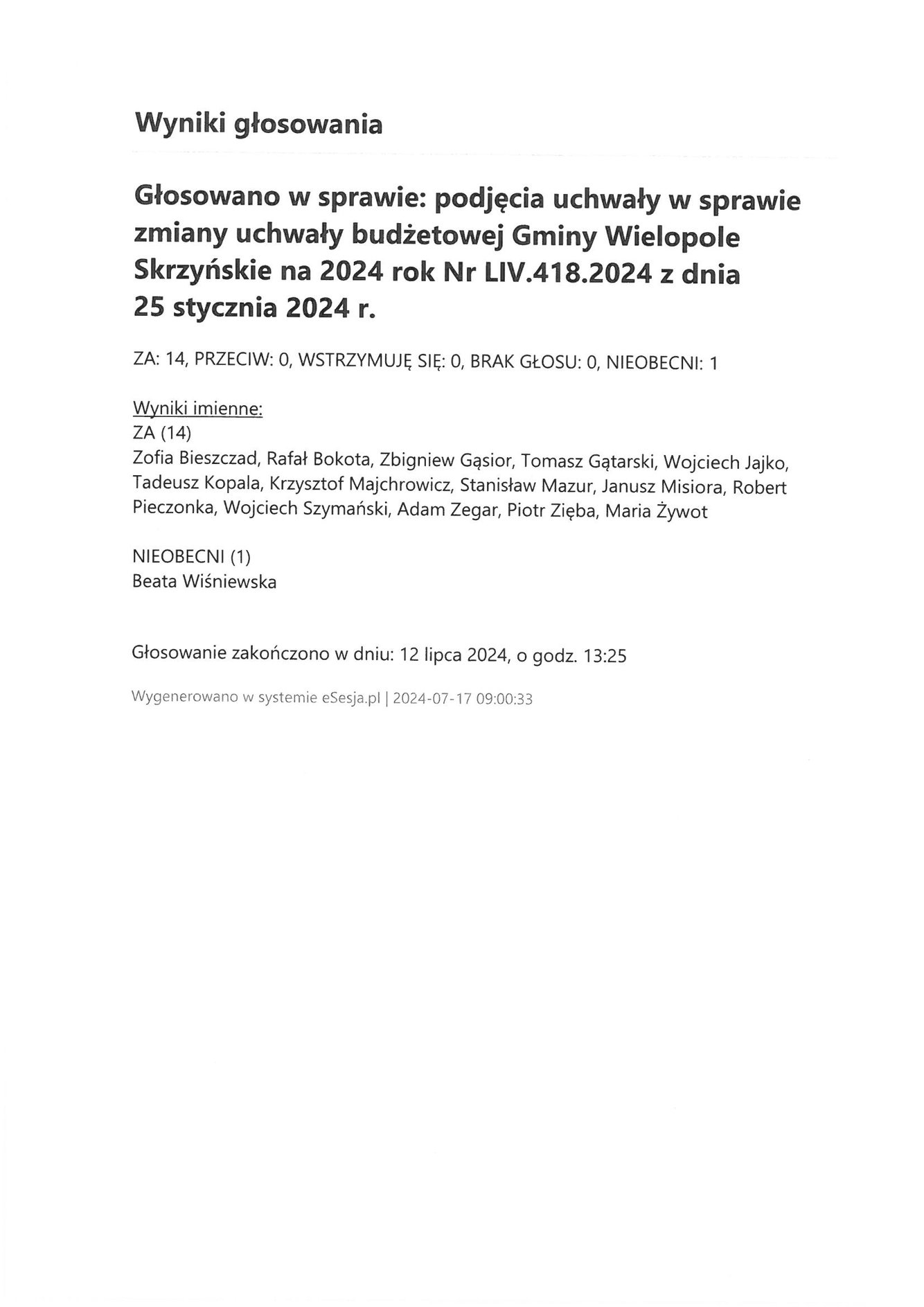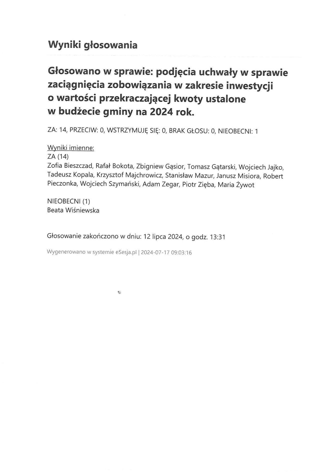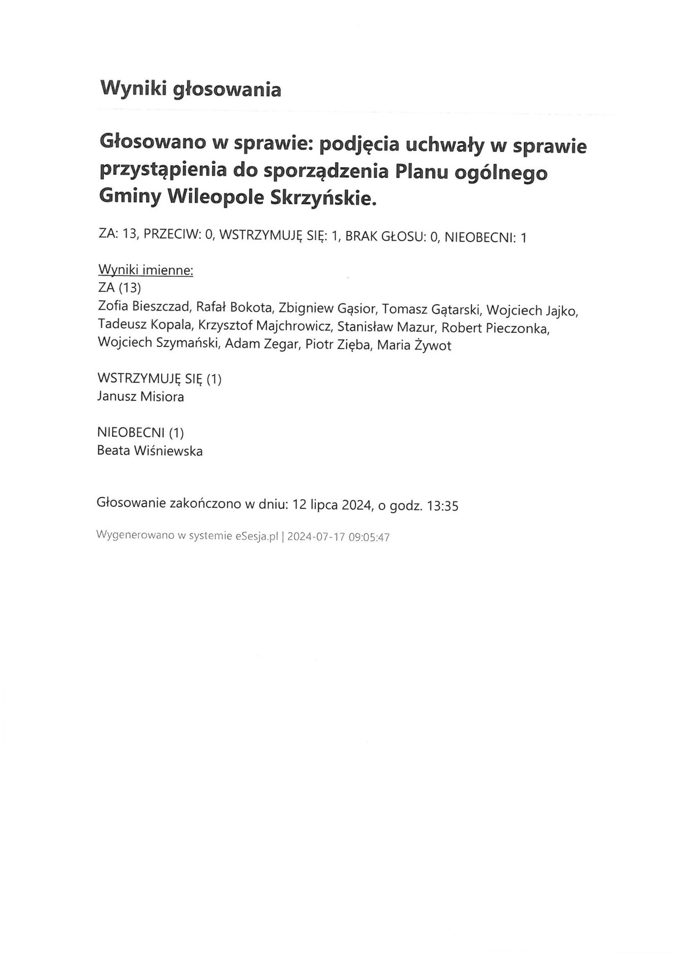 Środa 17 lipca 2024 Imienny wykaz głosowań radnych Strona Główna/Informator/InformacjeImienny wykaz głosowań radnychImienny wykaz głosowań radnych