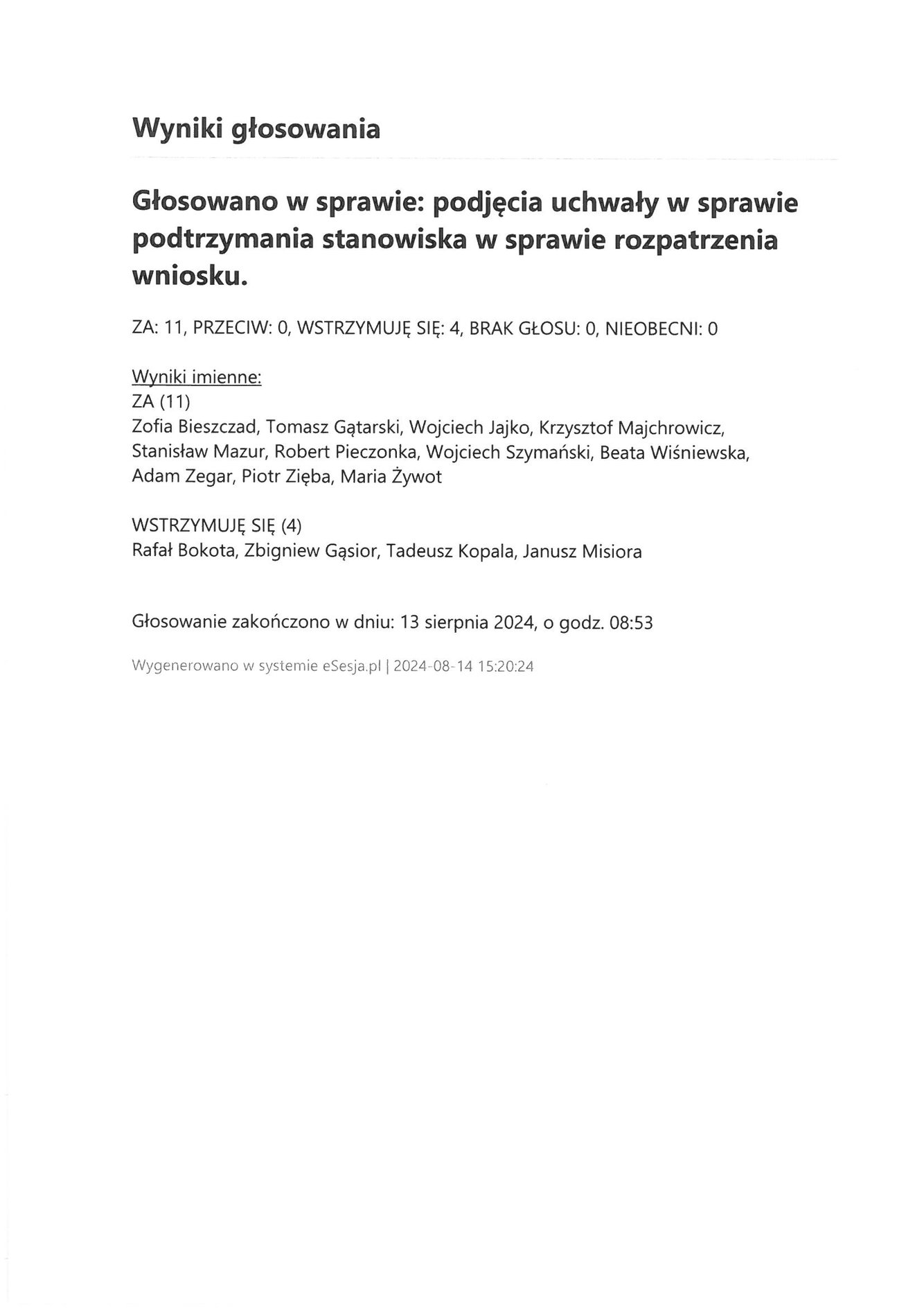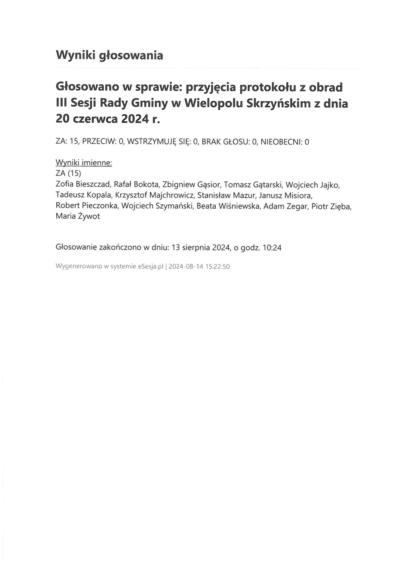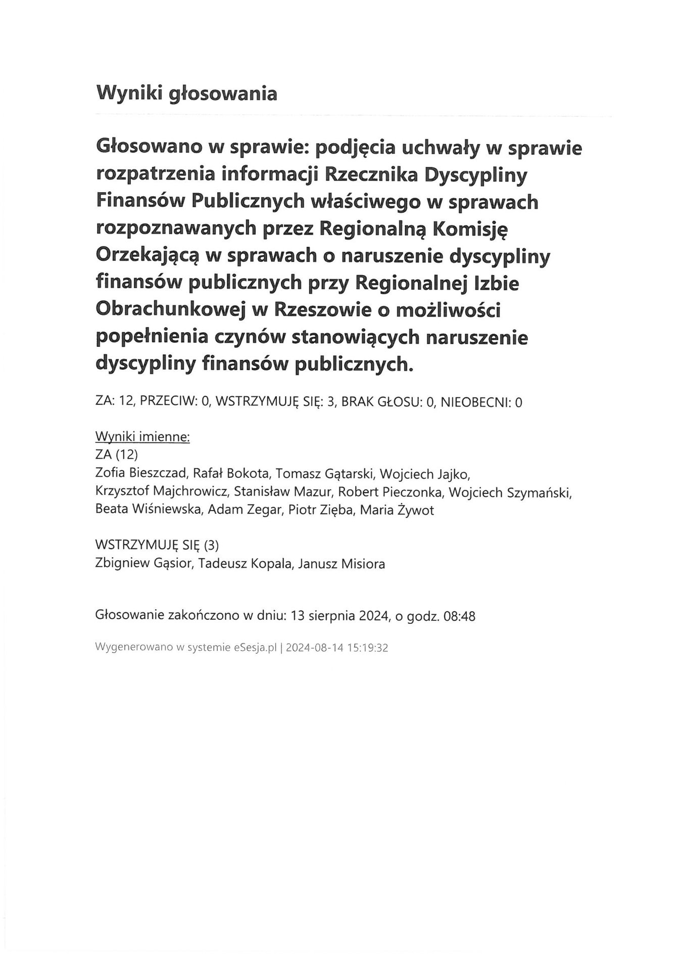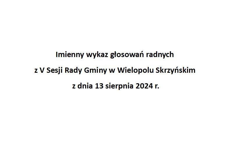 Poniedziałek 19 sierpnia 2024 Imienny wykaz głosowań radnych Strona Główna/Informator/InformacjeImienny wykaz głosowań radnychImienny wykaz głosowań radnych