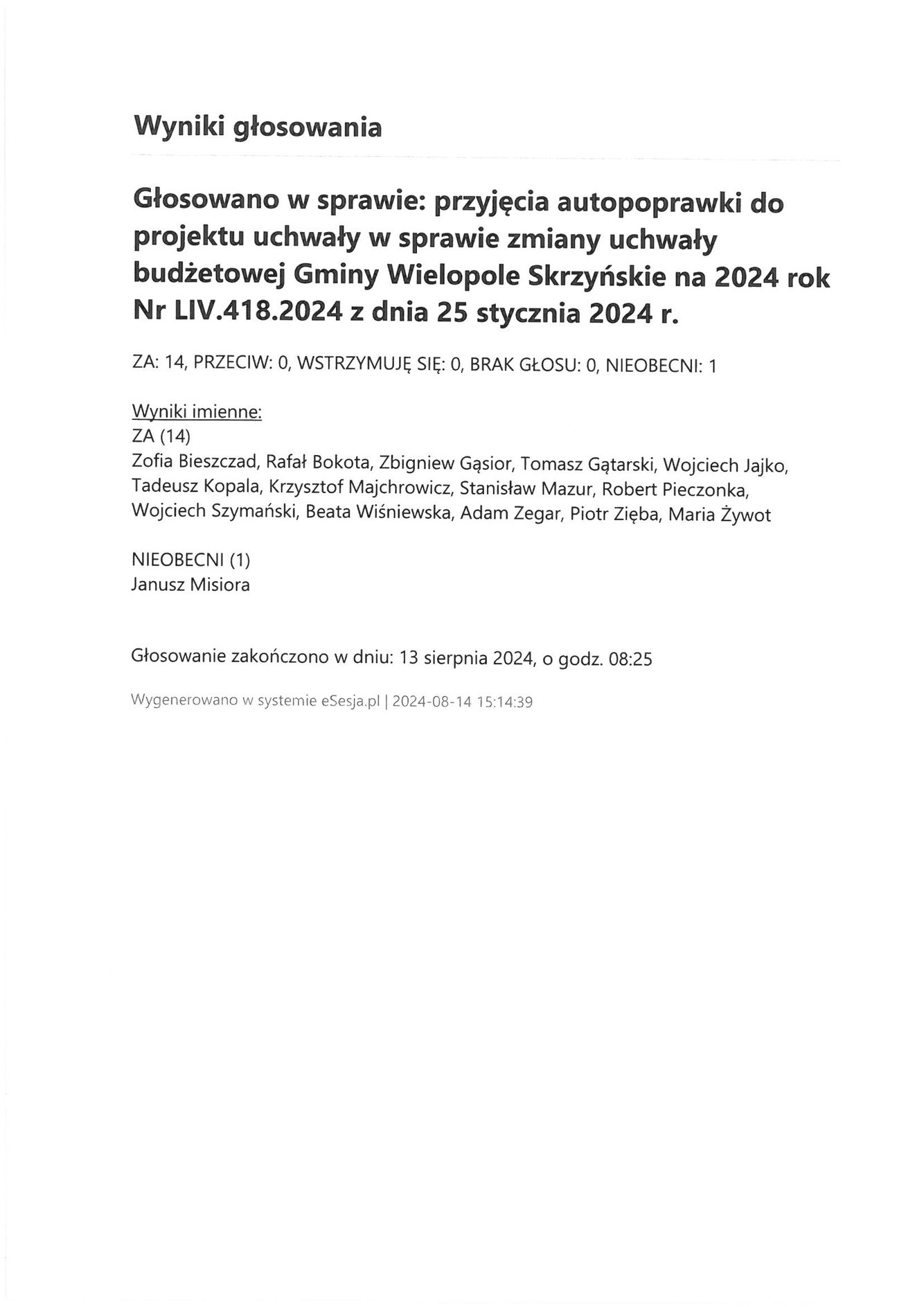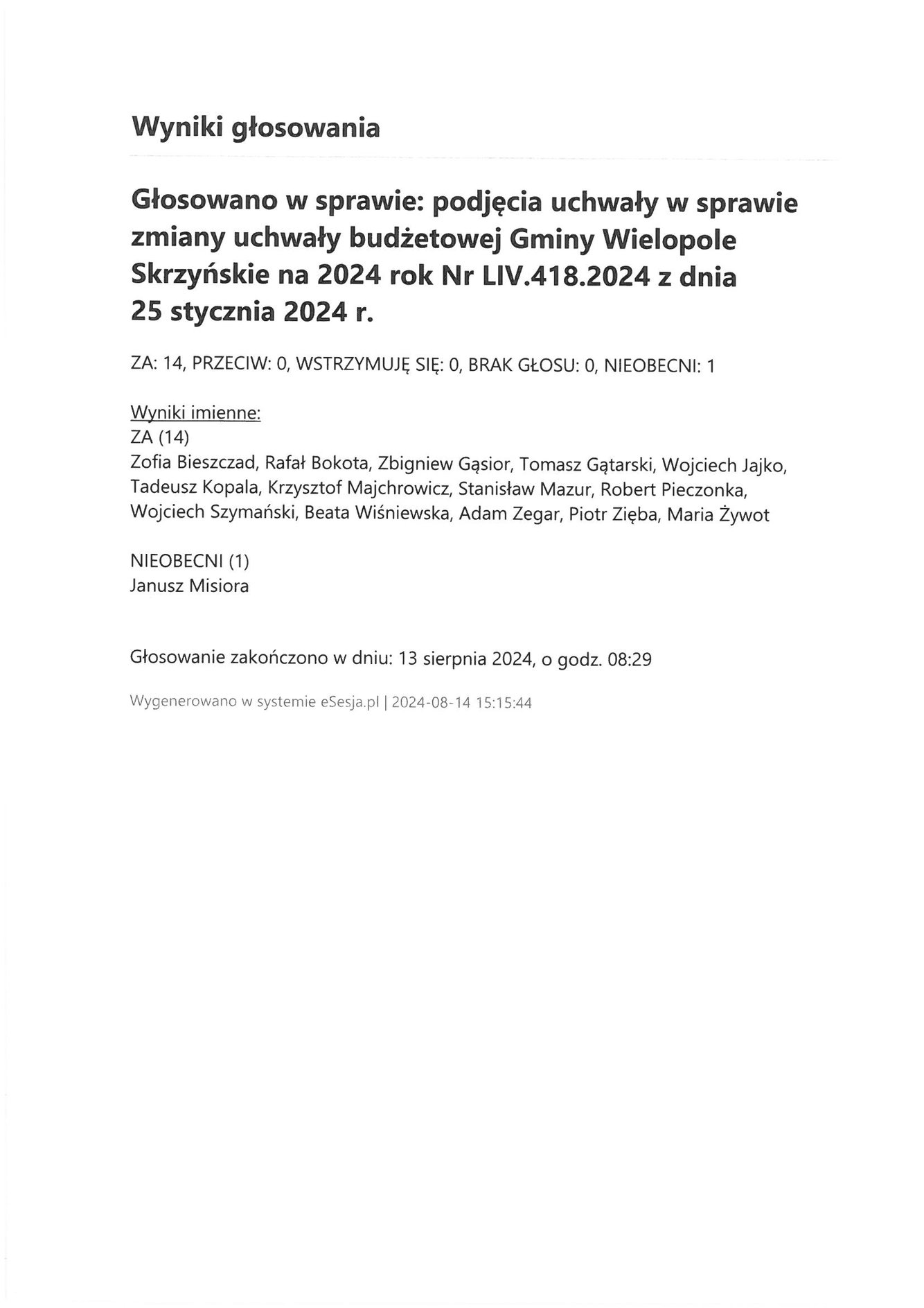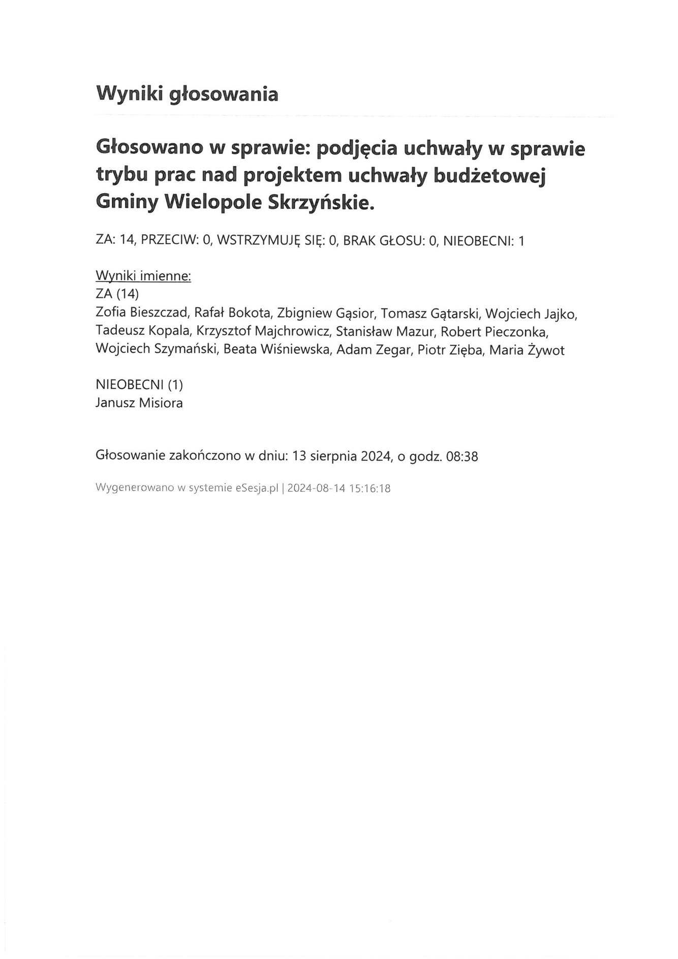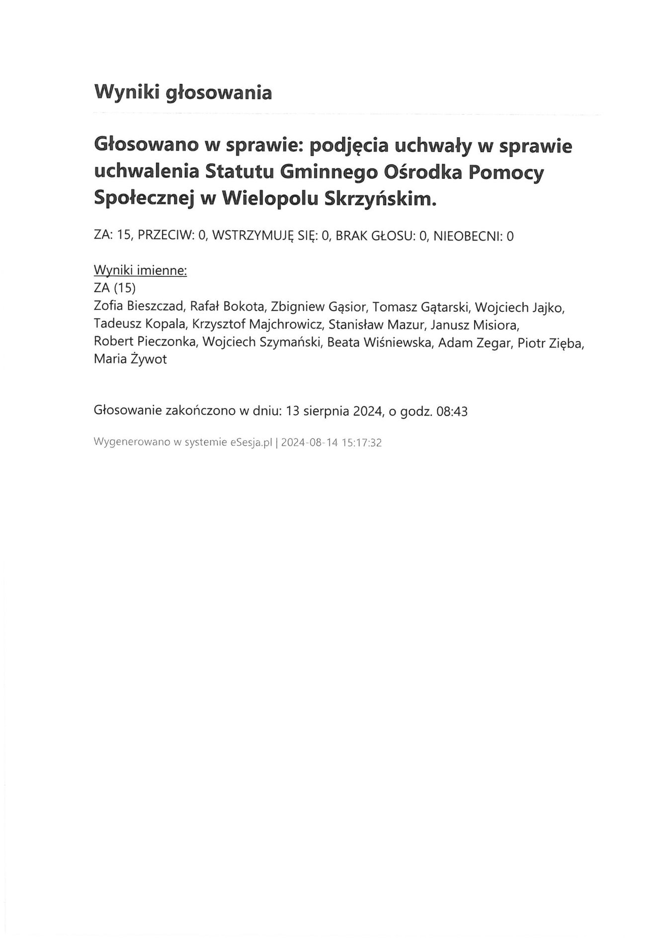 Poniedziałek 19 sierpnia 2024 Imienny wykaz głosowań radnych Strona Główna/Informator/InformacjeImienny wykaz głosowań radnychImienny wykaz głosowań radnych