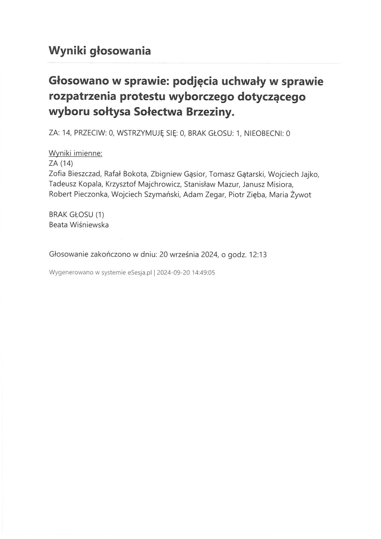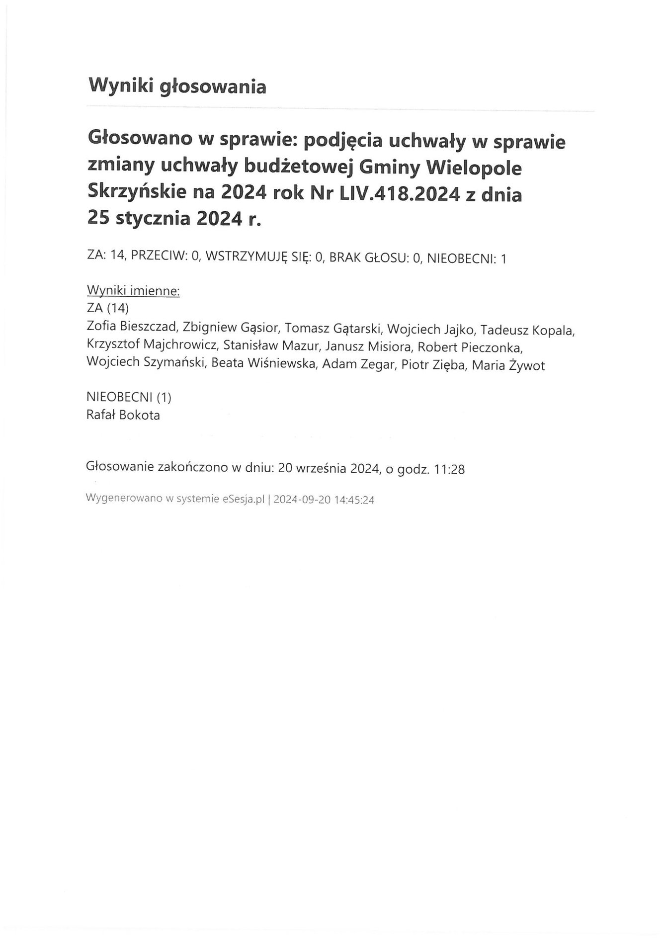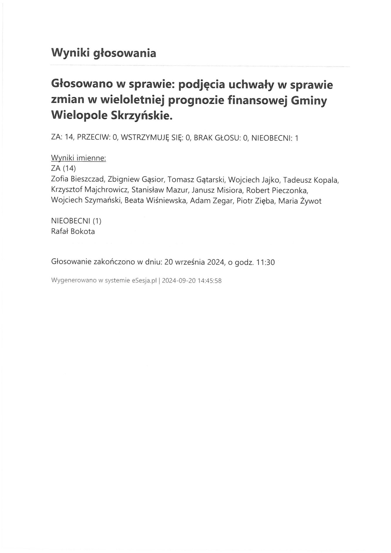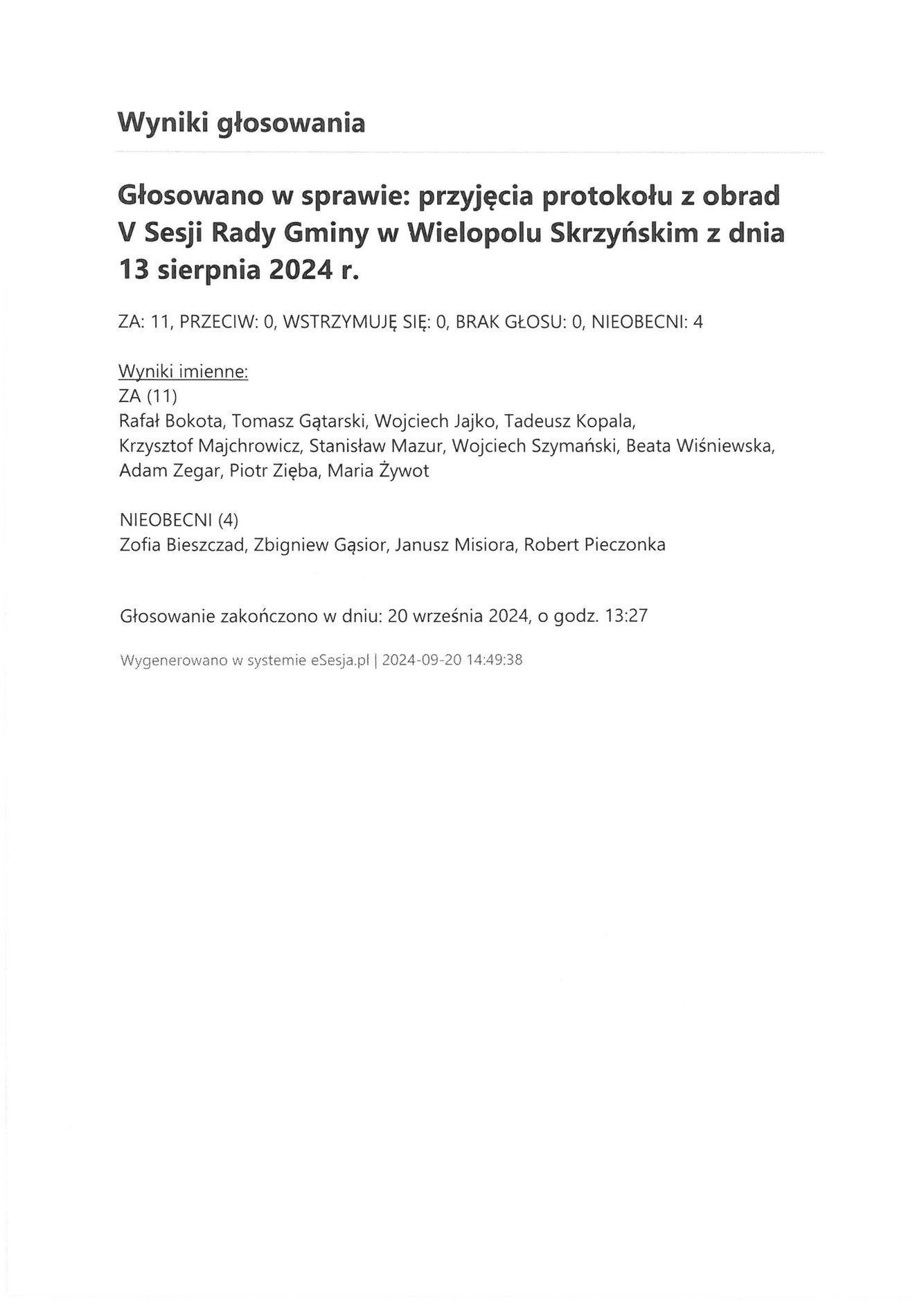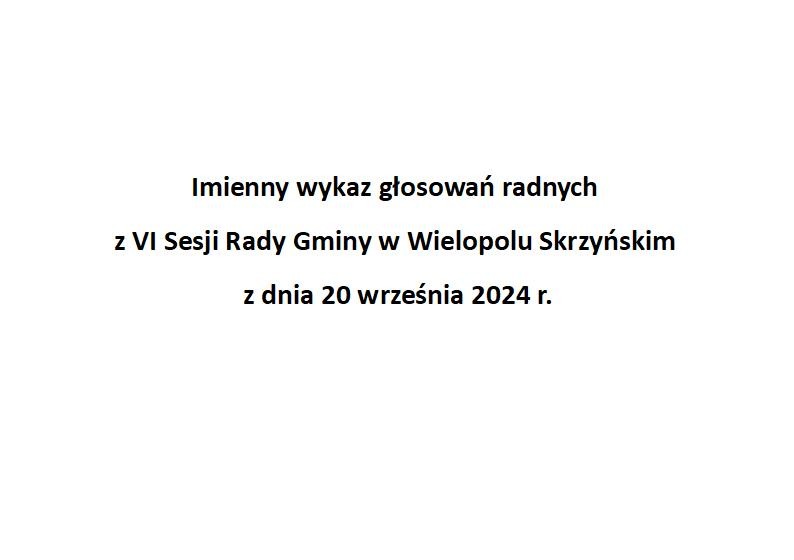 Piątek 20 września 2024 Imienny wykaz głosowań radnych Strona Główna/Informator/InformacjeImienny wykaz głosowań radnychImienny wykaz głosowań radnych