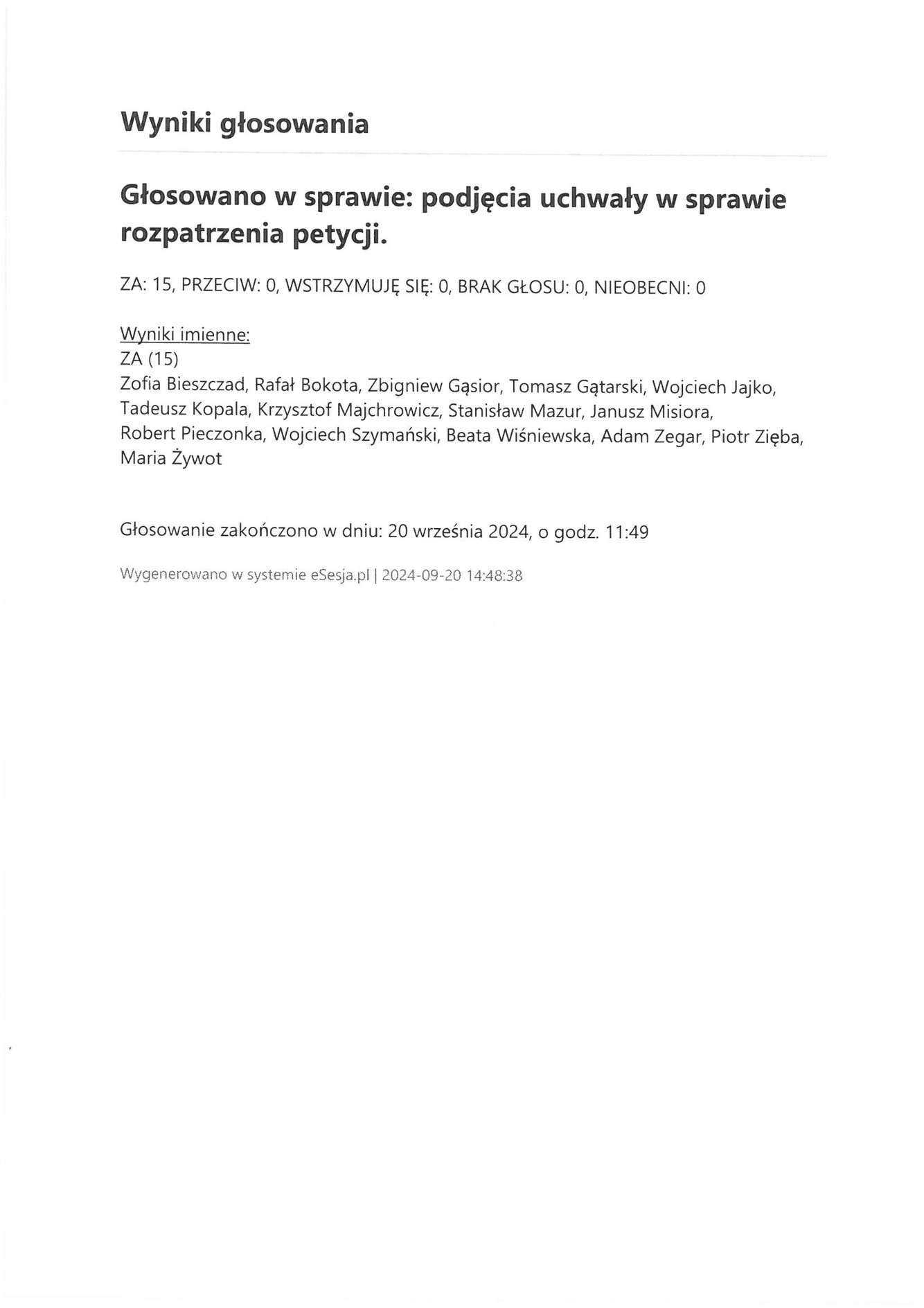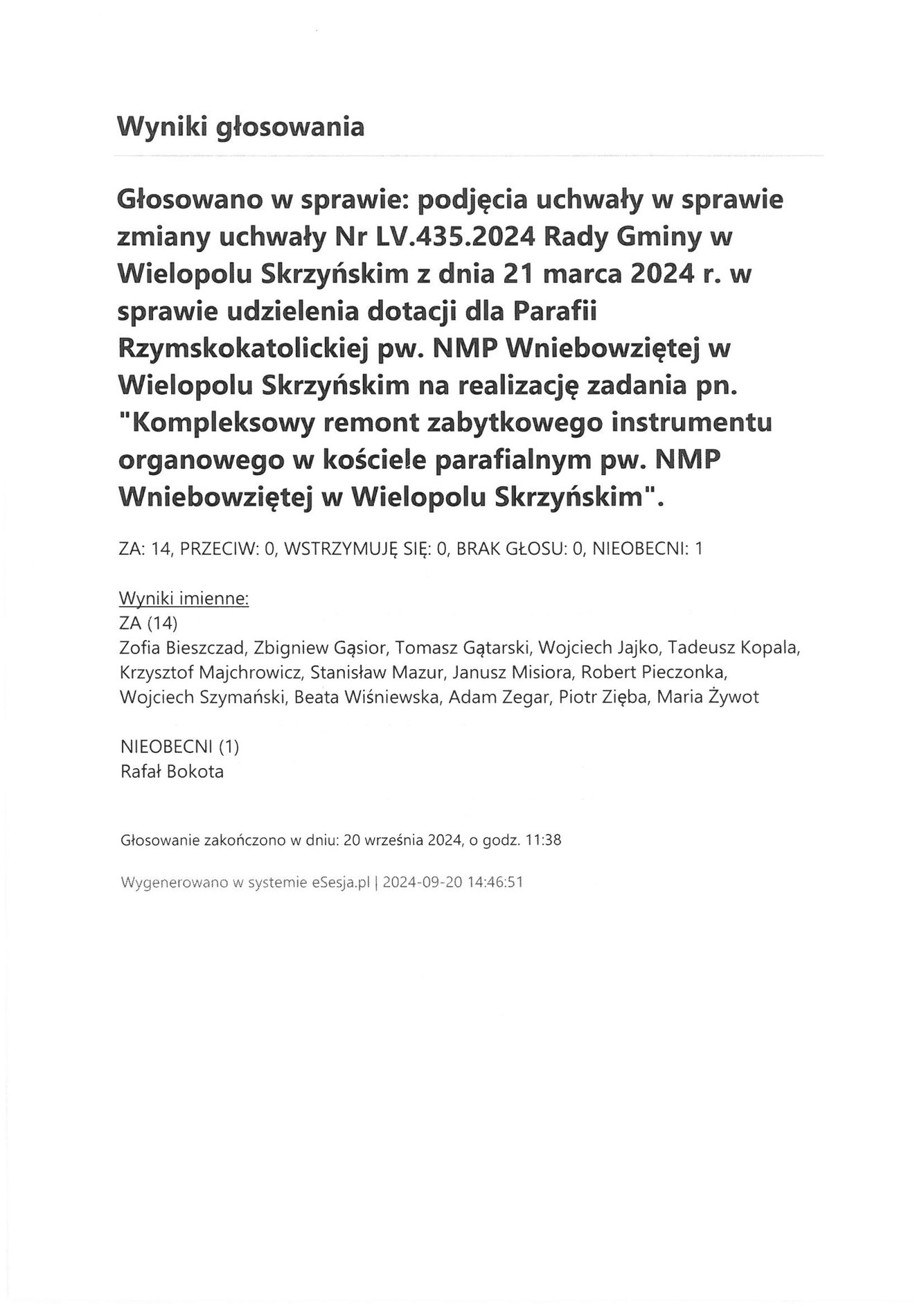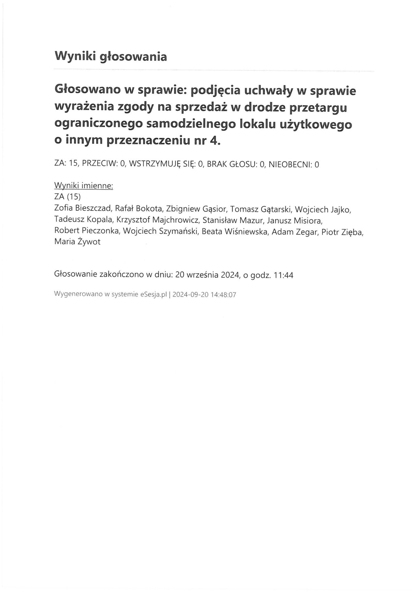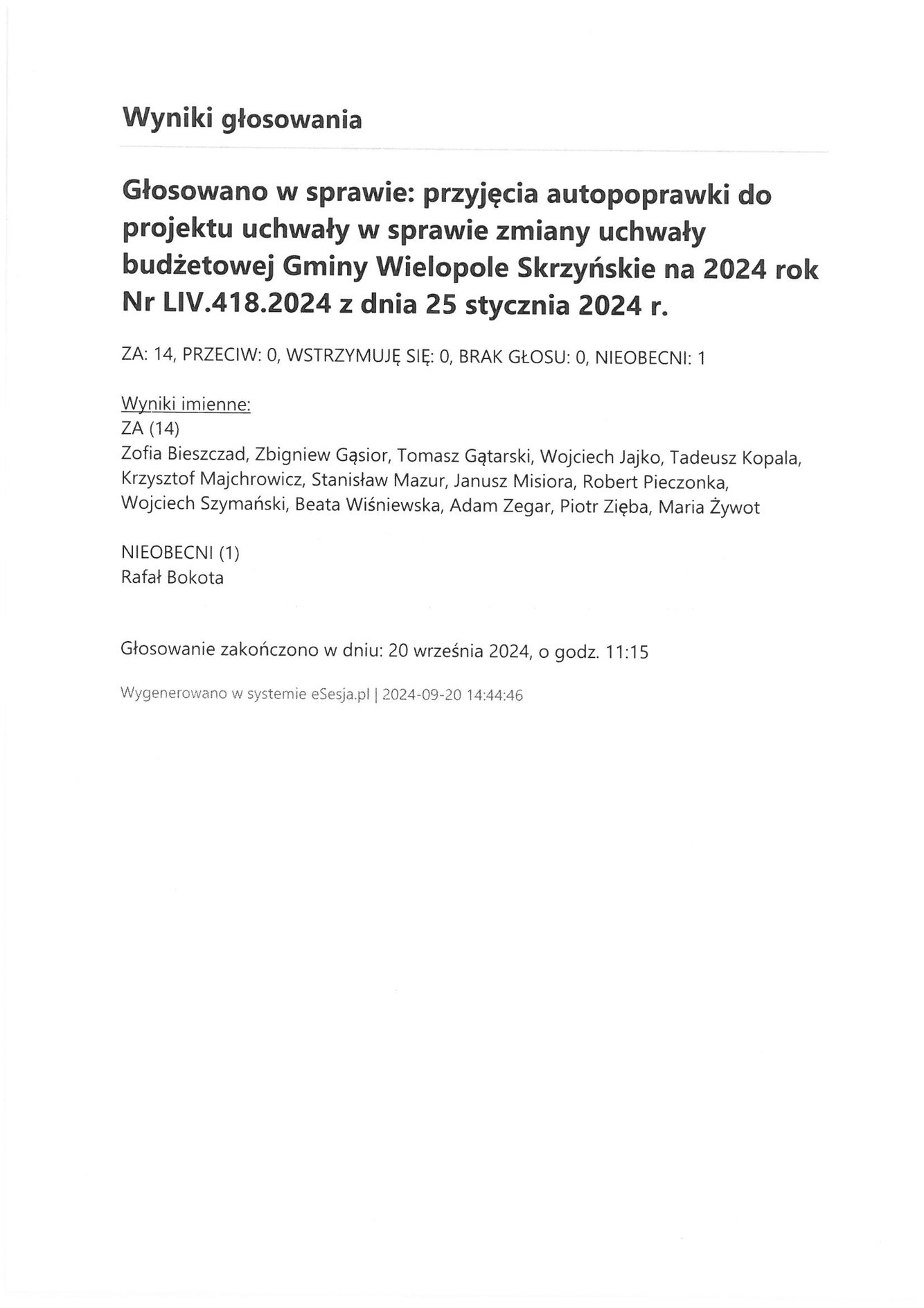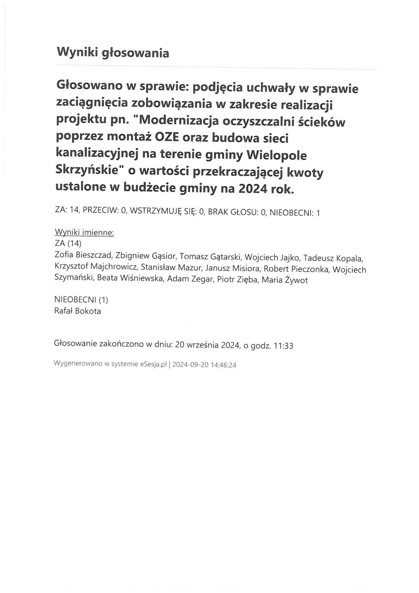 Piątek 20 września 2024 Imienny wykaz głosowań radnych Strona Główna/Informator/InformacjeImienny wykaz głosowań radnychImienny wykaz głosowań radnych