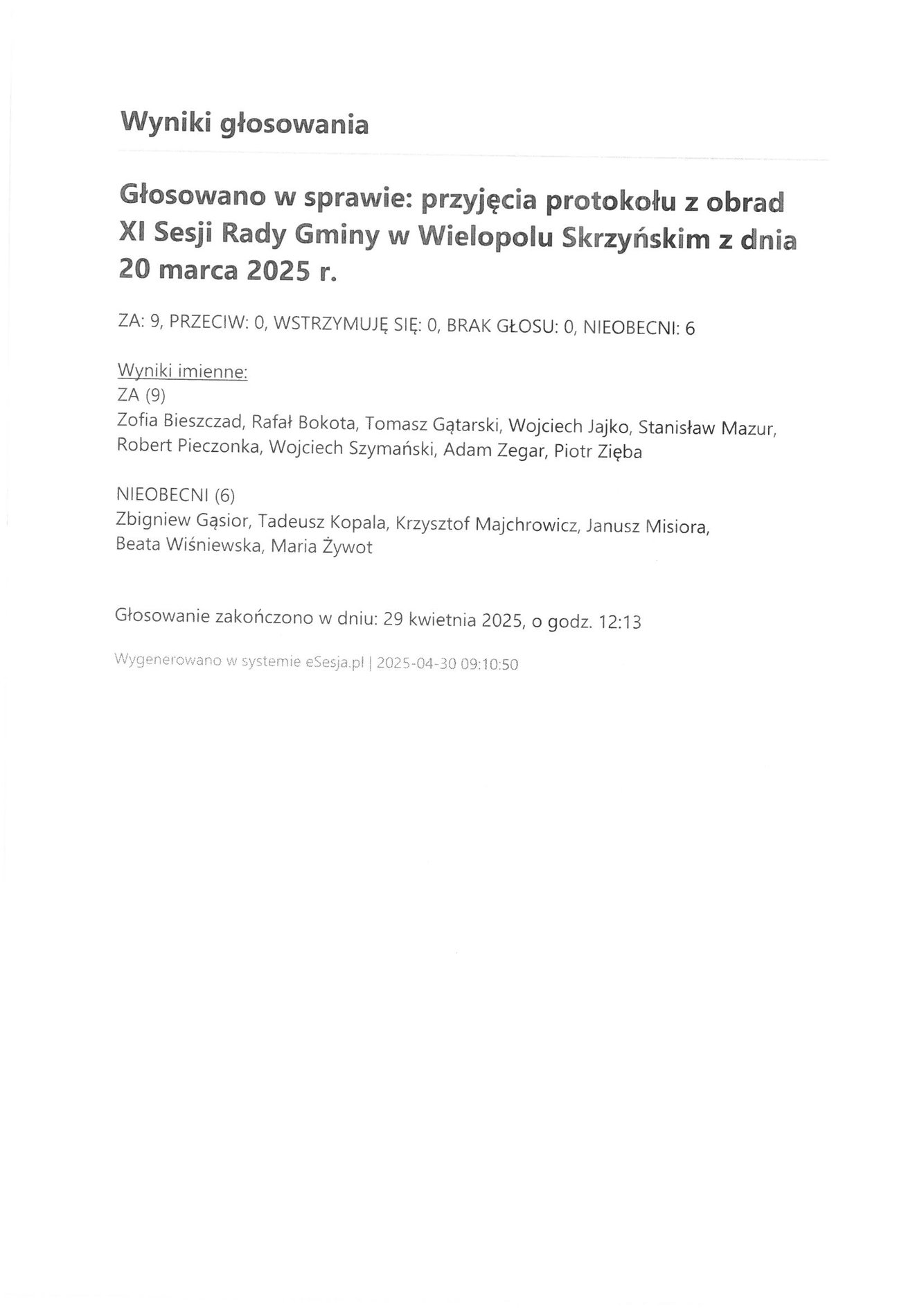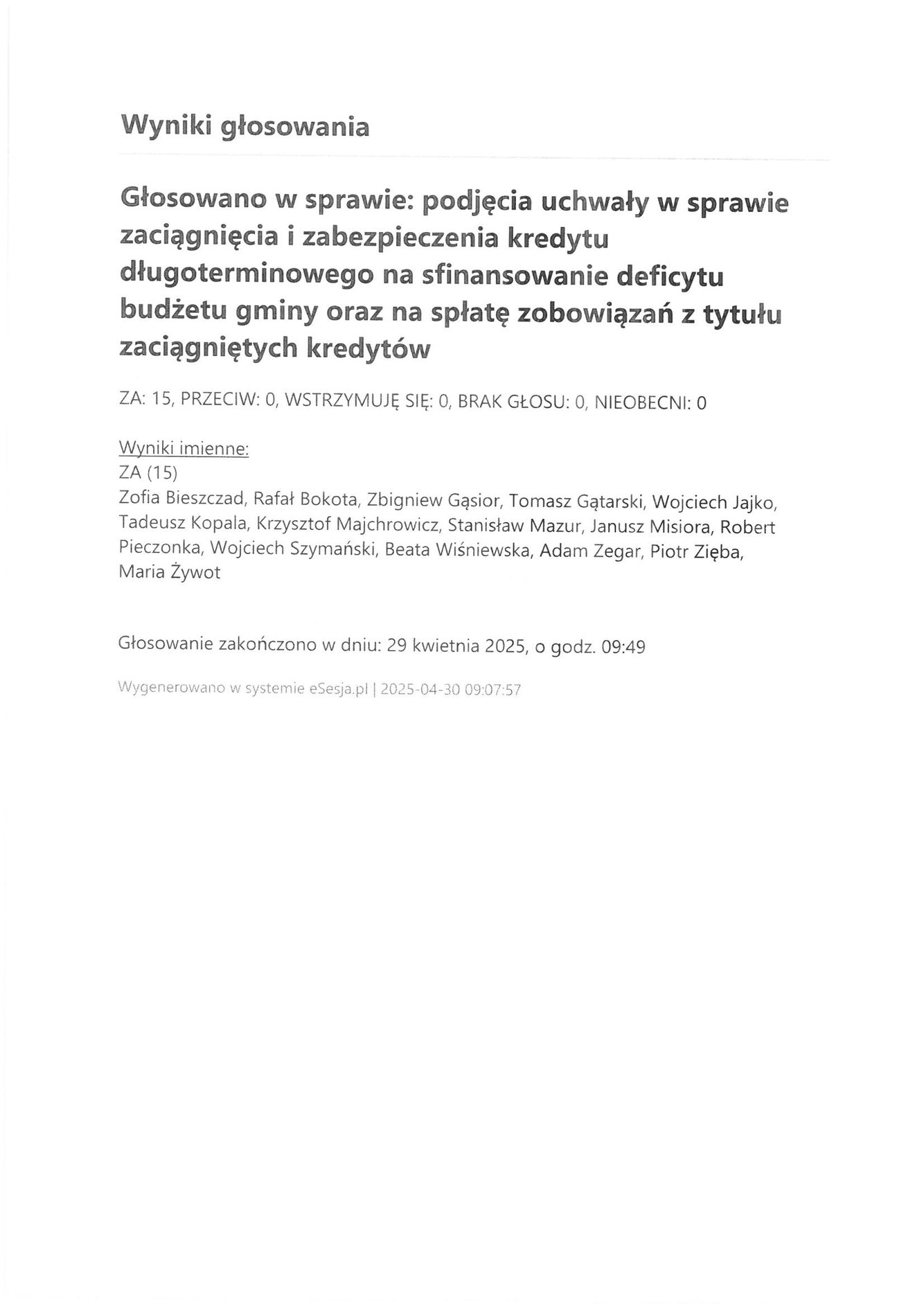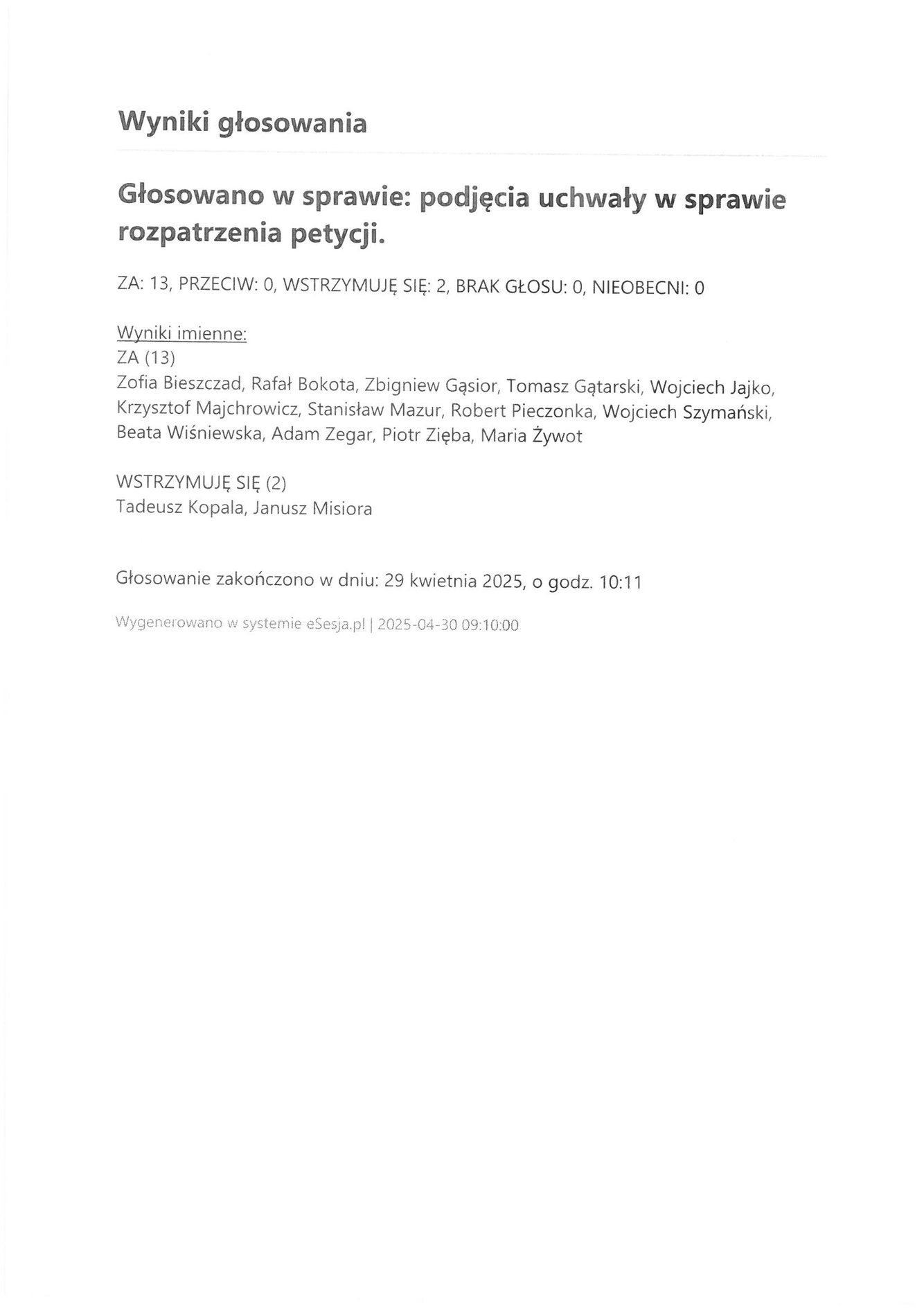 Poniedziałek 5 maja 2025 Imienny wykaz głosowań radnych Strona Główna/Informator/InformacjeImienny wykaz głosowań radnychImienny wykaz głosowań radnych