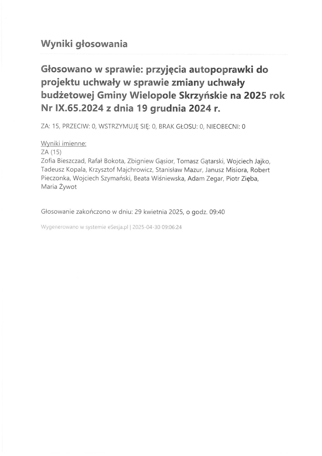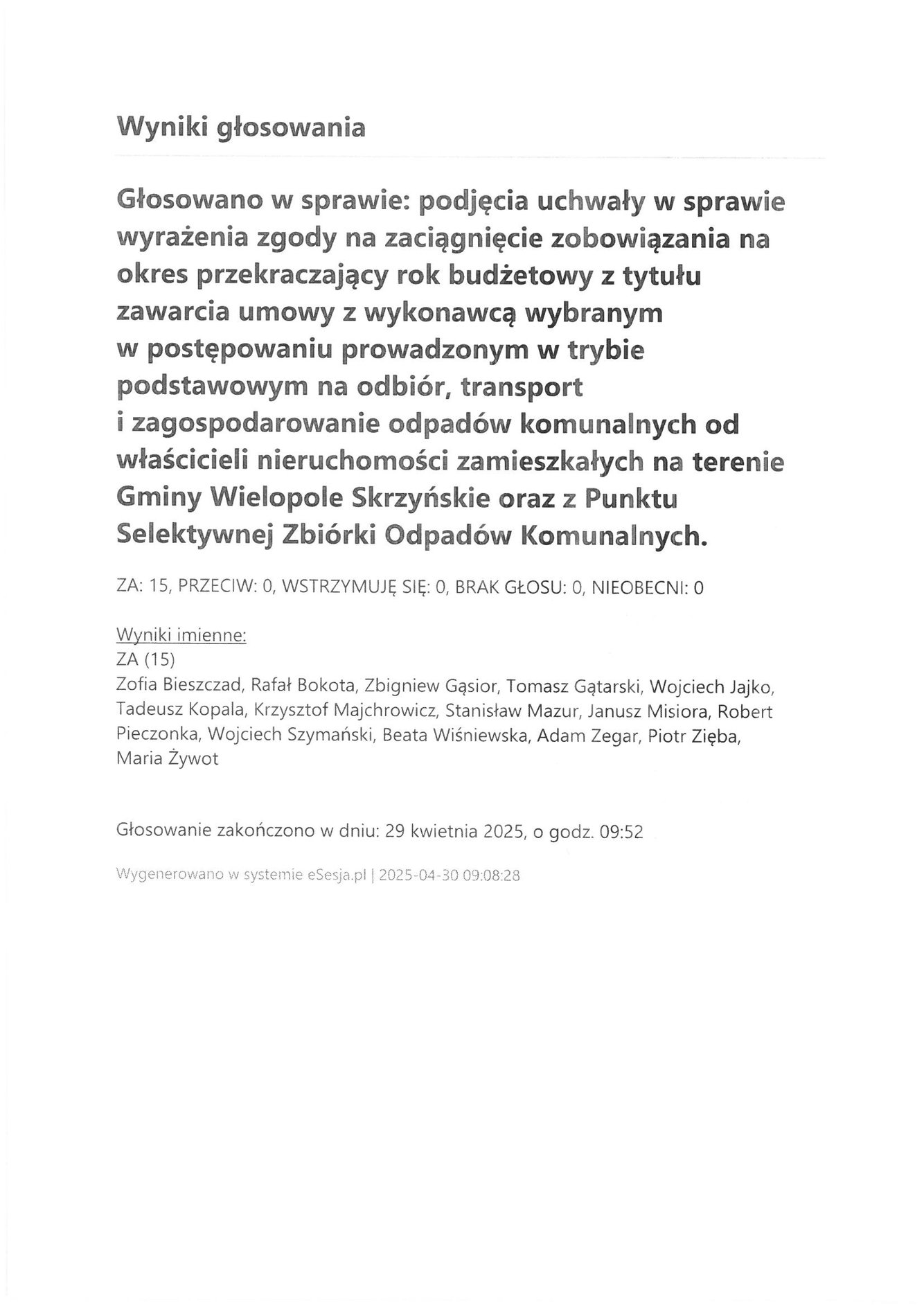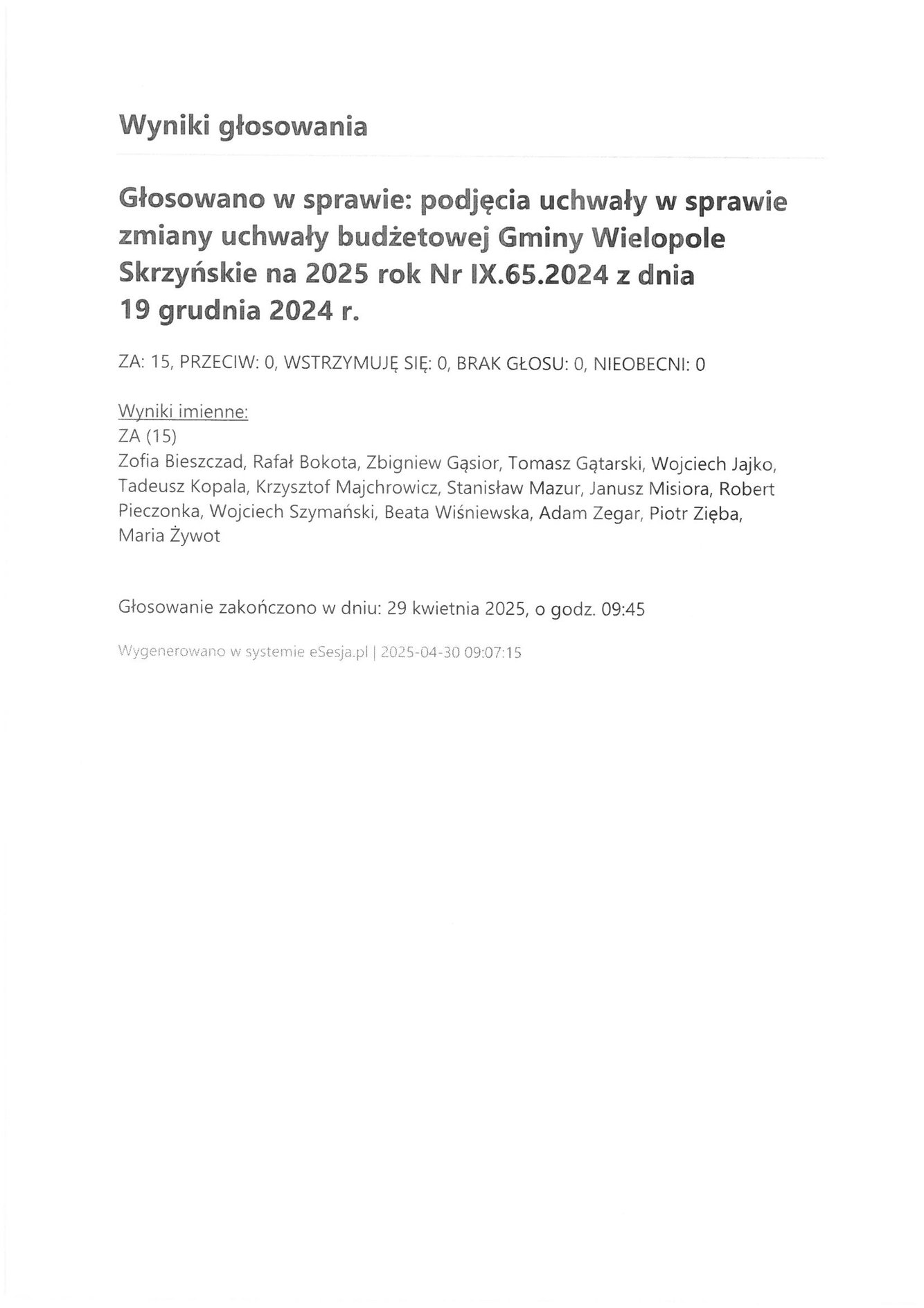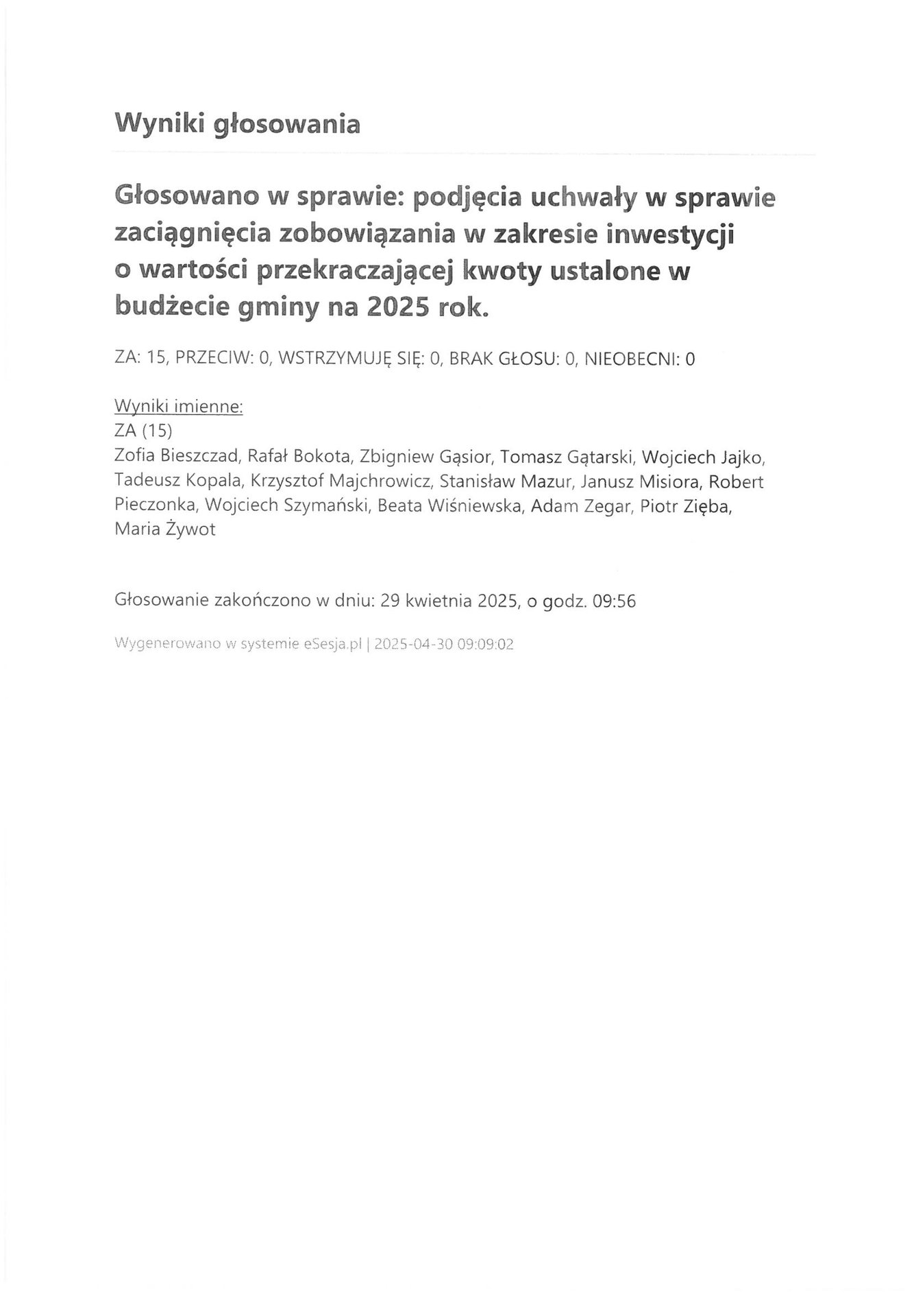 Poniedziałek 5 maja 2025 Imienny wykaz głosowań radnych Strona Główna/Informator/InformacjeImienny wykaz głosowań radnychImienny wykaz głosowań radnych