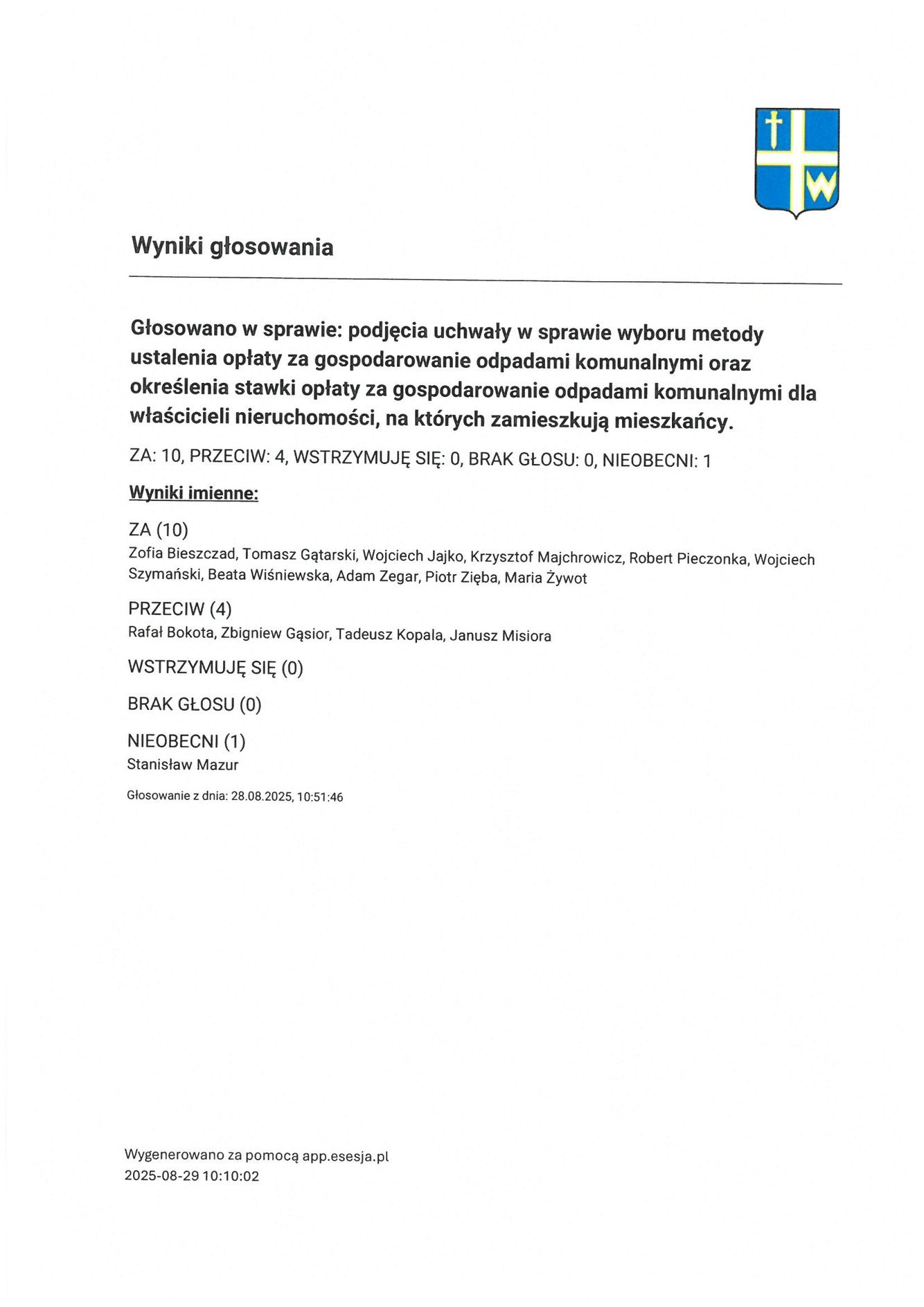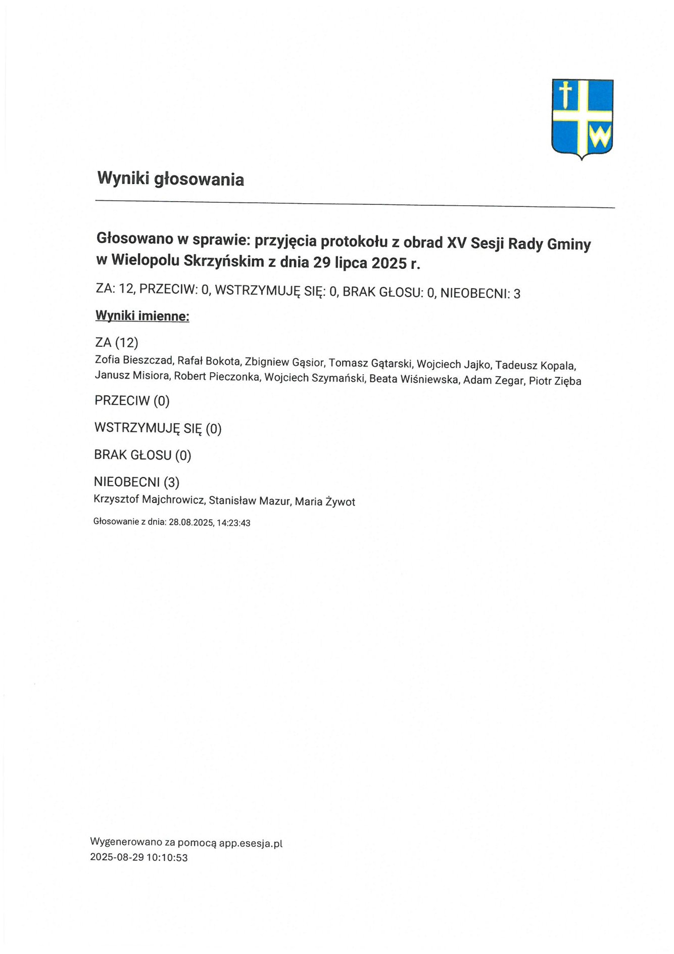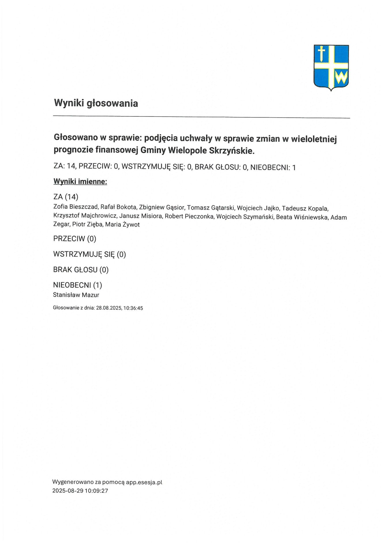 Piątek 29 sierpnia 2025 Imienny wykaz głosowań radnych Strona Główna/Informator/InformacjeImienny wykaz głosowań radnychImienny wykaz głosowań radnych