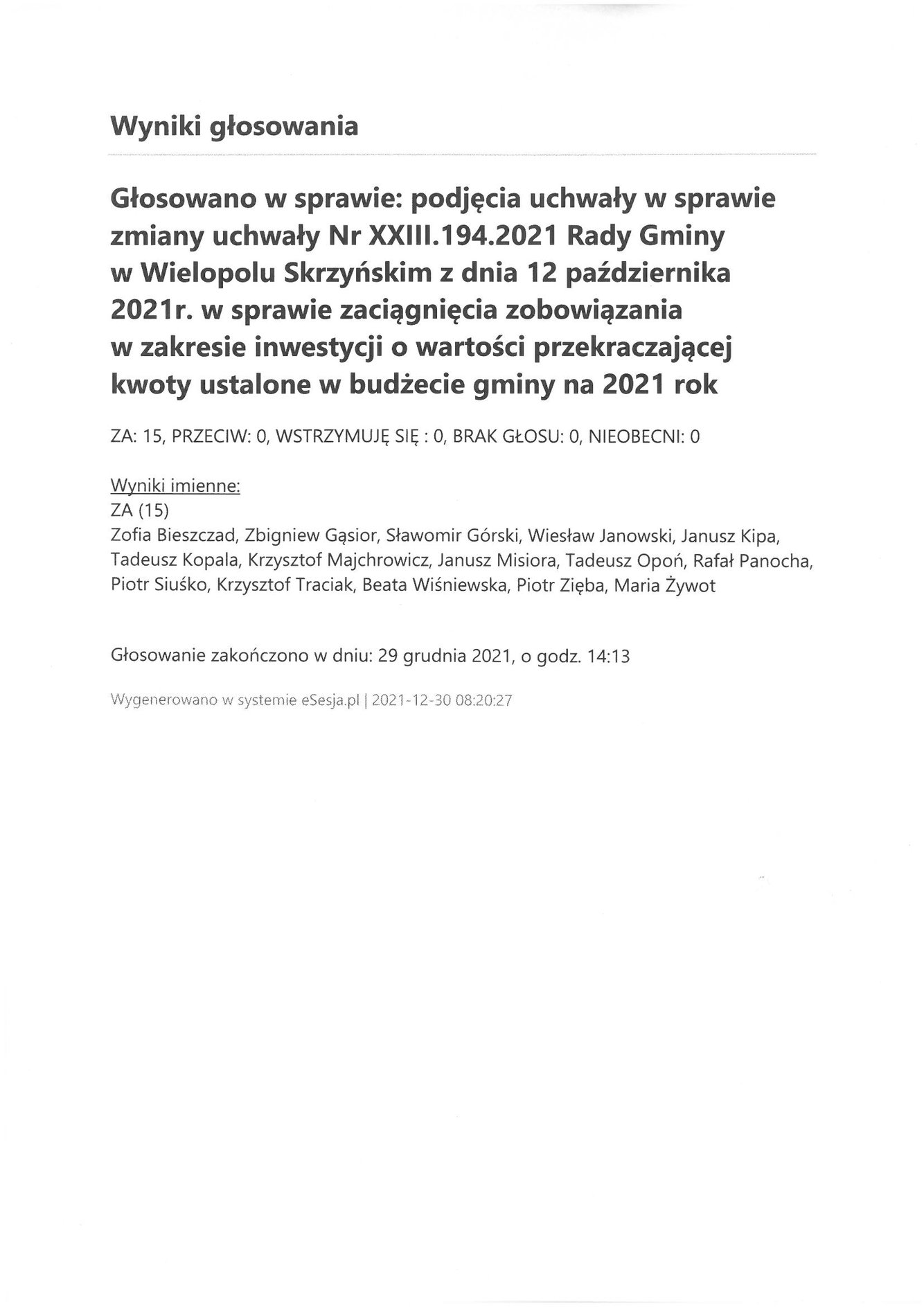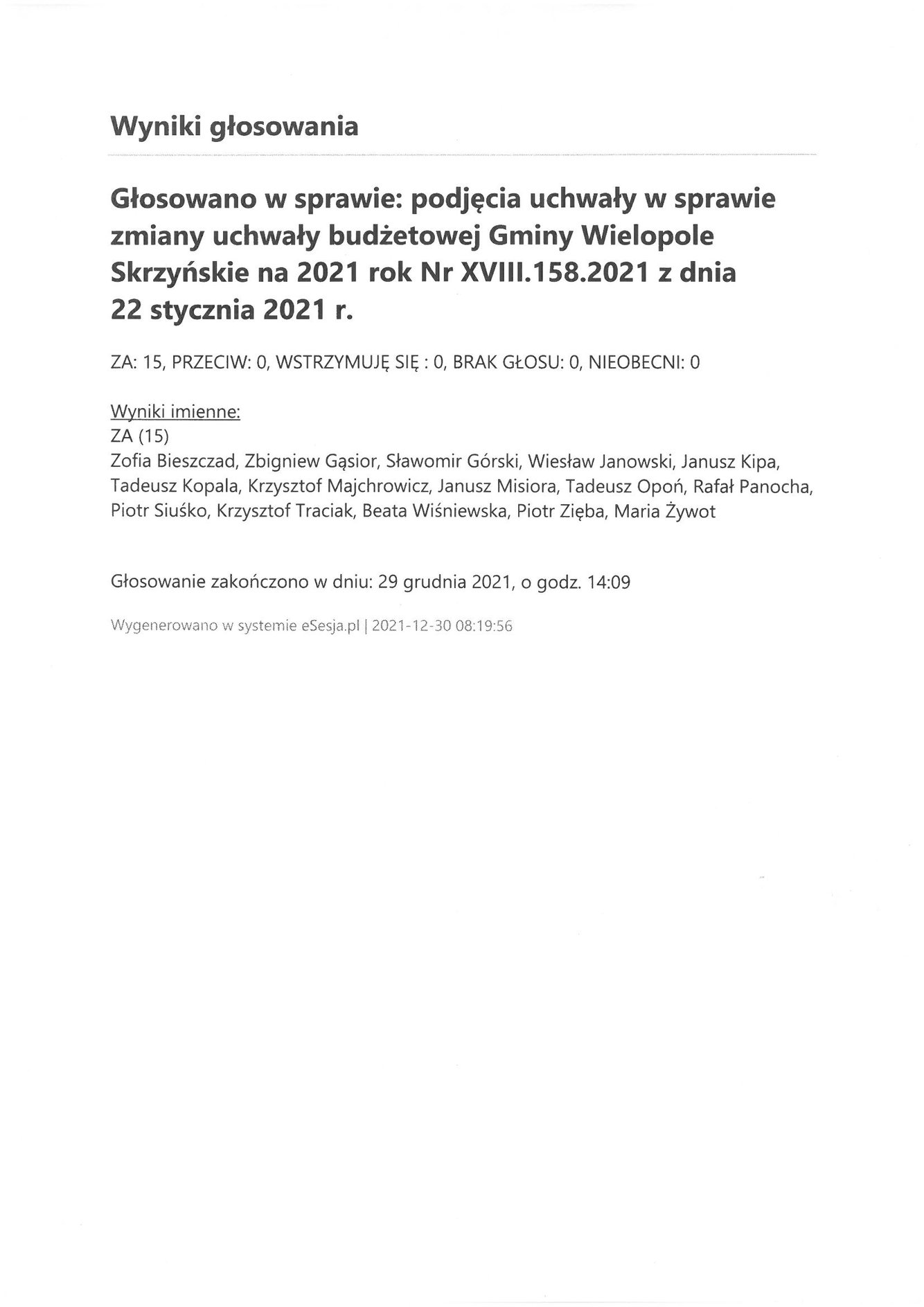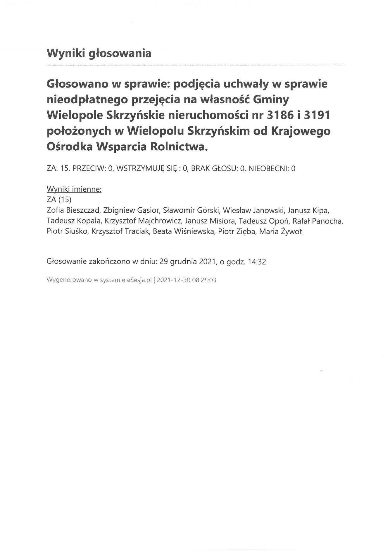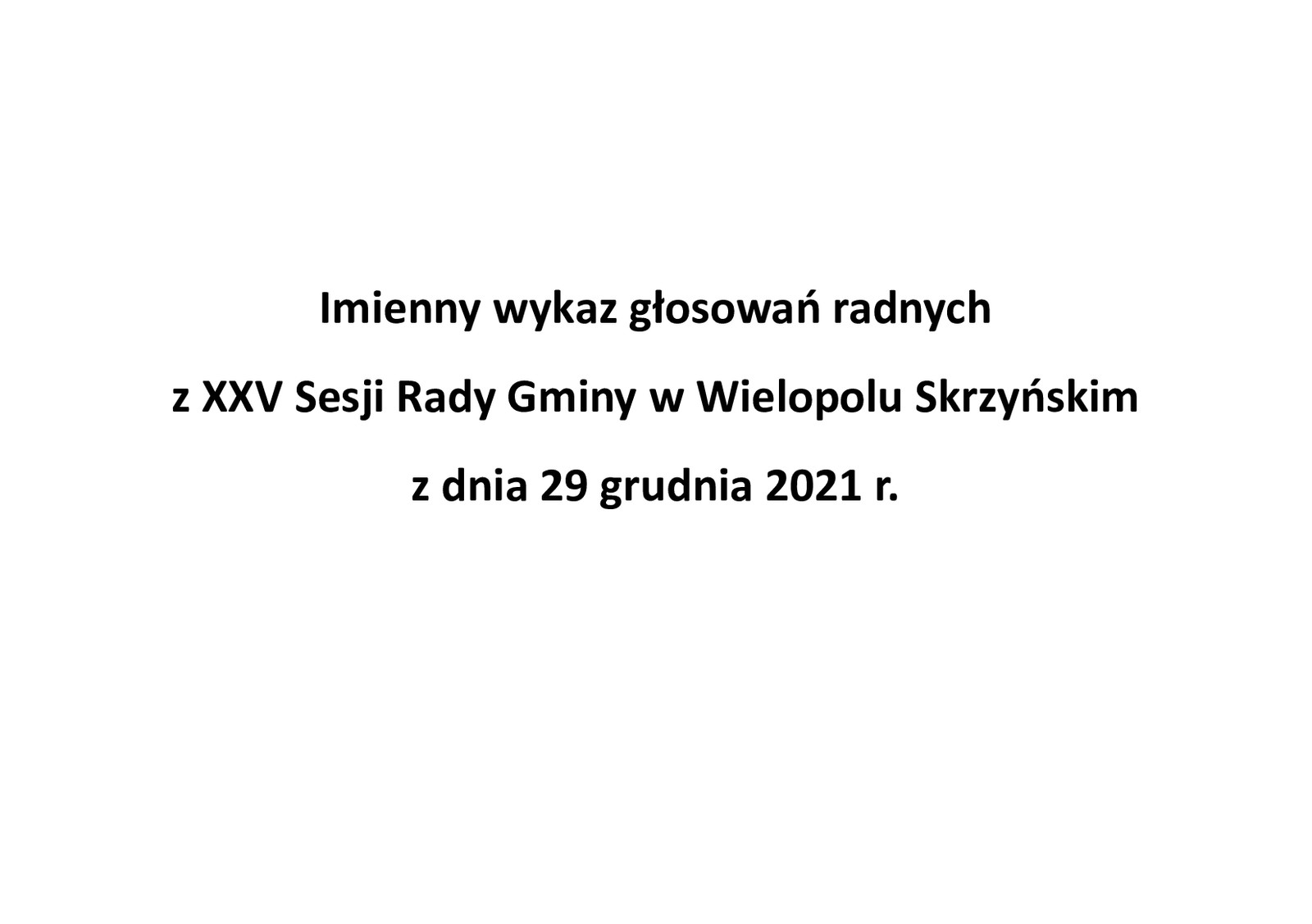 Czwartek 30 grudnia 2021 Imienny wykaz głosowań radnych Strona Główna/Informator/InformacjeImienny wykaz głosowań radnychImienny wykaz głosowań radnych