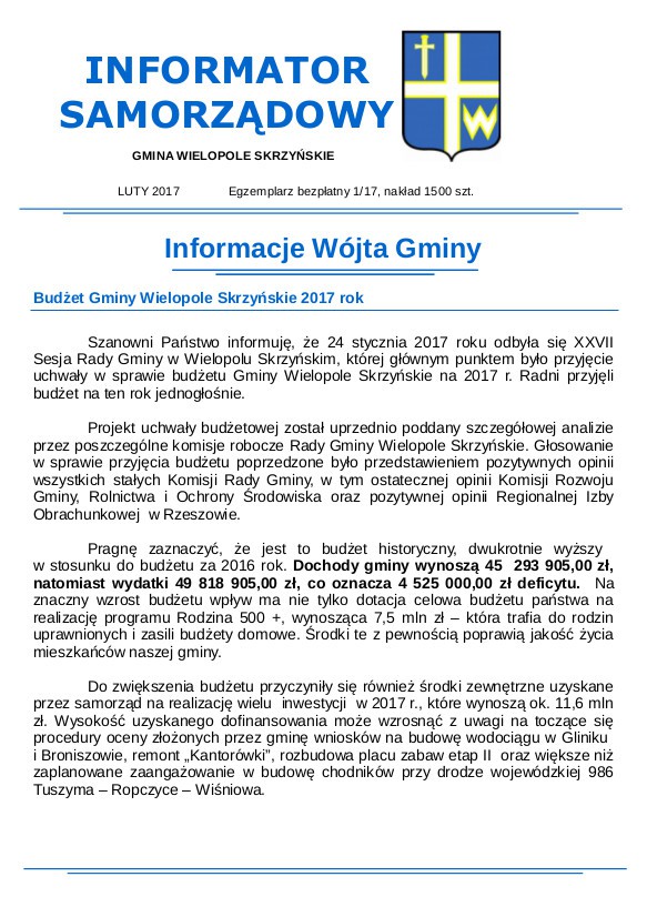 Piątek 24 lutego 2017 Informator Samorządowy - luty 2017 Strona Główna/Nasza Gmina/PublikacjeDokumenty do pobraniaDokumenty do pobrania#Nazwa DokumentuINFORMATOR SAMORZĄDOWY - LUTY 2017 POBIERZ