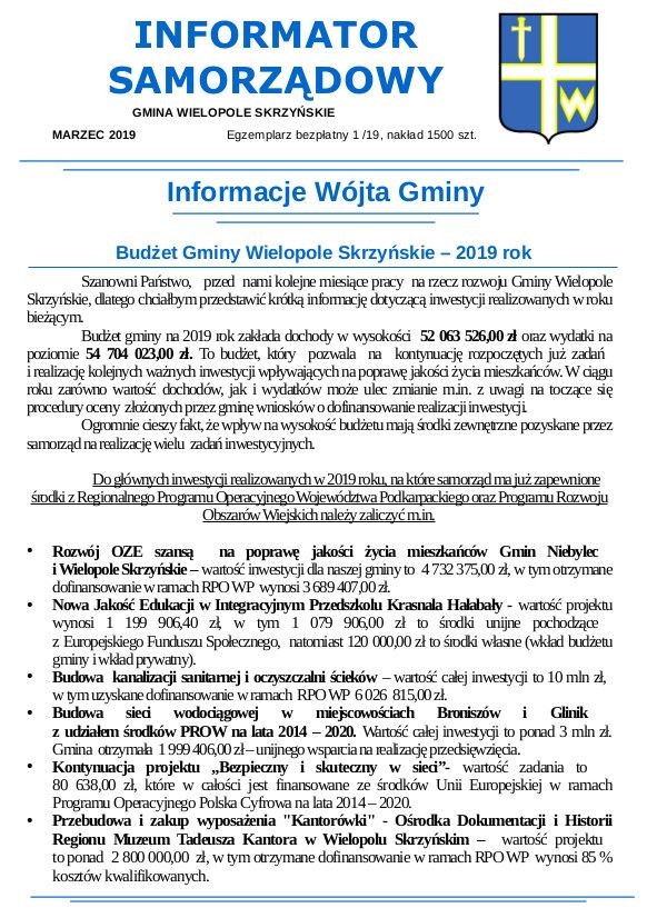 Środa 27 marca 2019 Informator Samorządowy - marzec 2019 Strona Główna/Nasza Gmina/PublikacjeDokumenty do pobraniaDokumenty do pobrania#Nazwa DokumentuINFORMATOR SAMORZĄDOWY - MARZEC 2019 POBIERZ