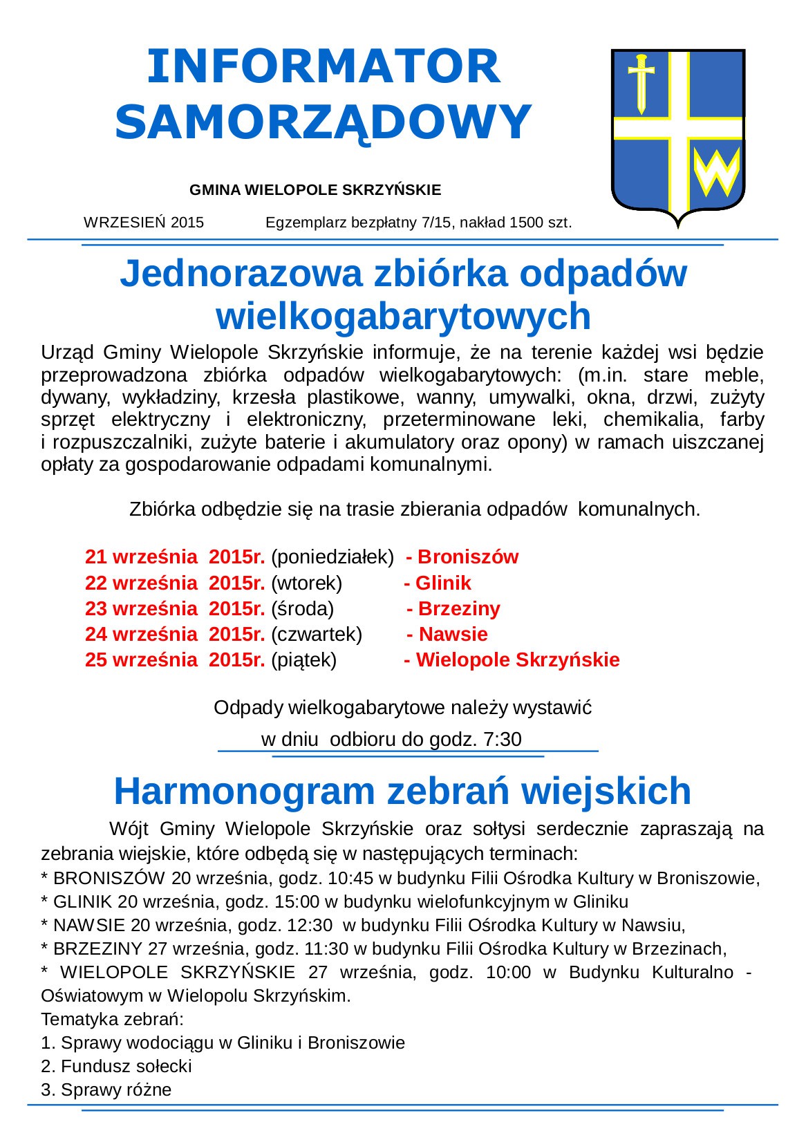 Wtorek 1 września 2015 Informator Samorządowy - wrzesień 2015 Strona Główna/Nasza Gmina/PublikacjeDokumenty do pobraniaDokumenty do pobrania#Nazwa DokumentuINFORMATOR SAMORZĄDOWY - WRZESIEŃ 2015 POBIERZ