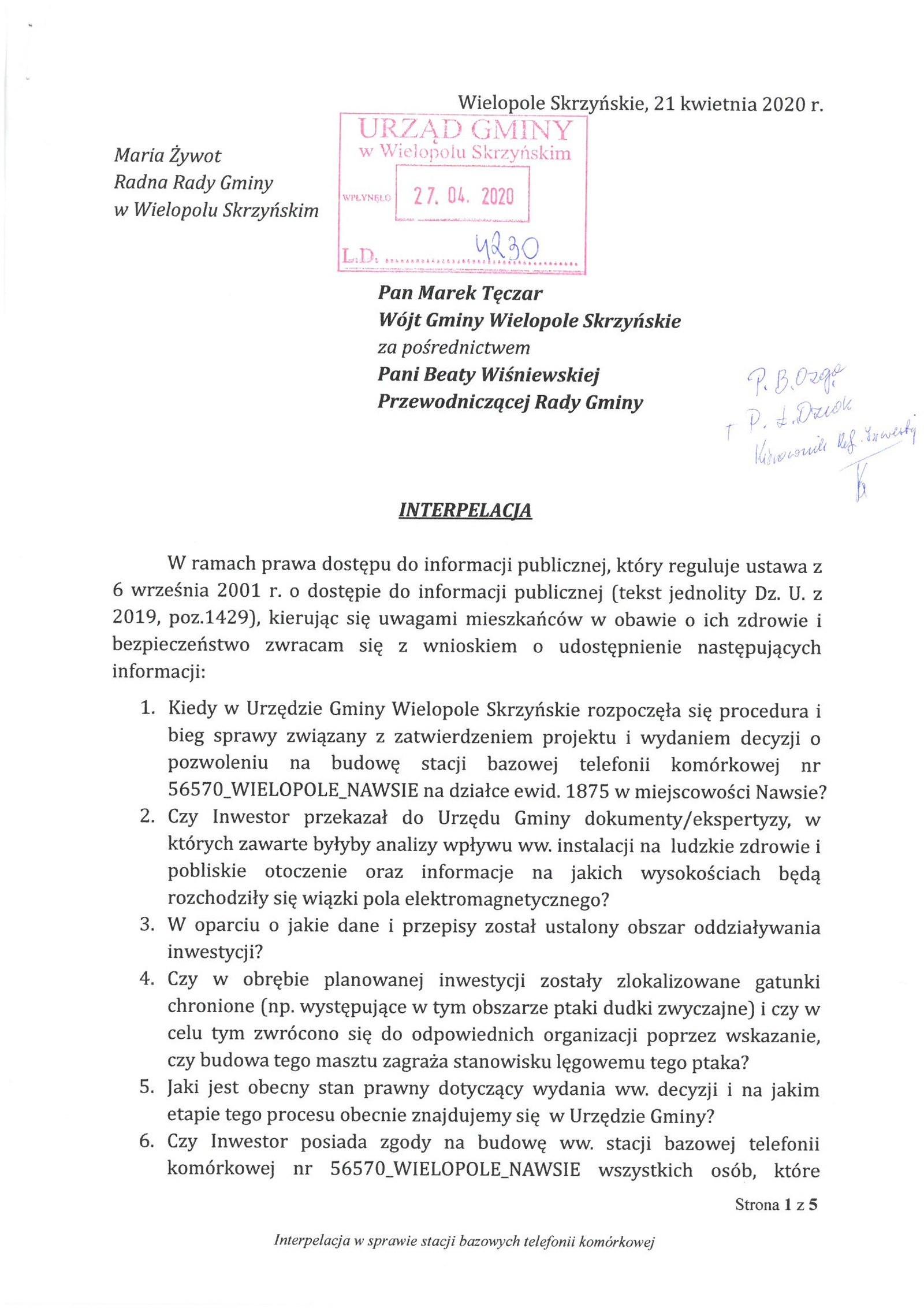 Wtorek 28 kwietnia 2020 Interpelacja radnej Strona Główna/Informator/InformacjeDokumenty do pobraniaDokumenty do pobrania#Nazwa DokumentuTREŚĆ INTERPELACJI POBIERZODPOWIEDŹ NA INTERPELACJĘ POBIERZ