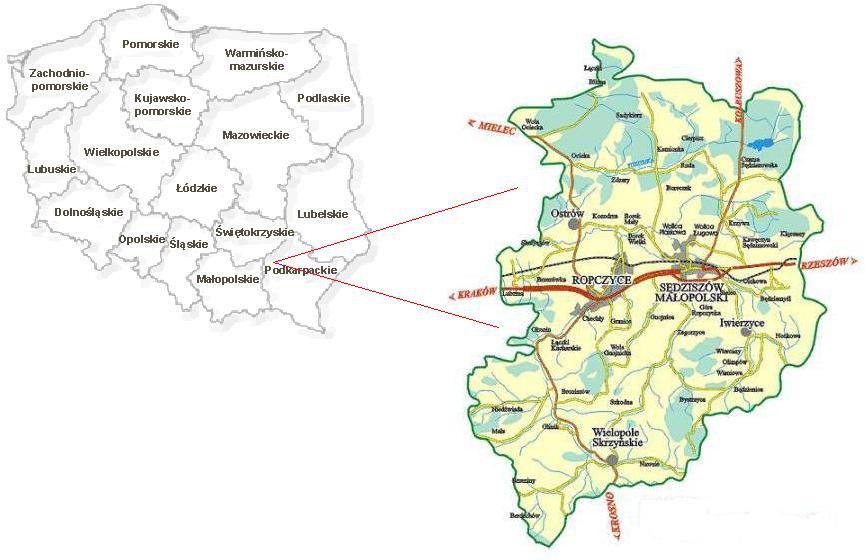 - - od północy Dębica, Ropczyce, Sędziszów Małopolski i Iwierzyce.