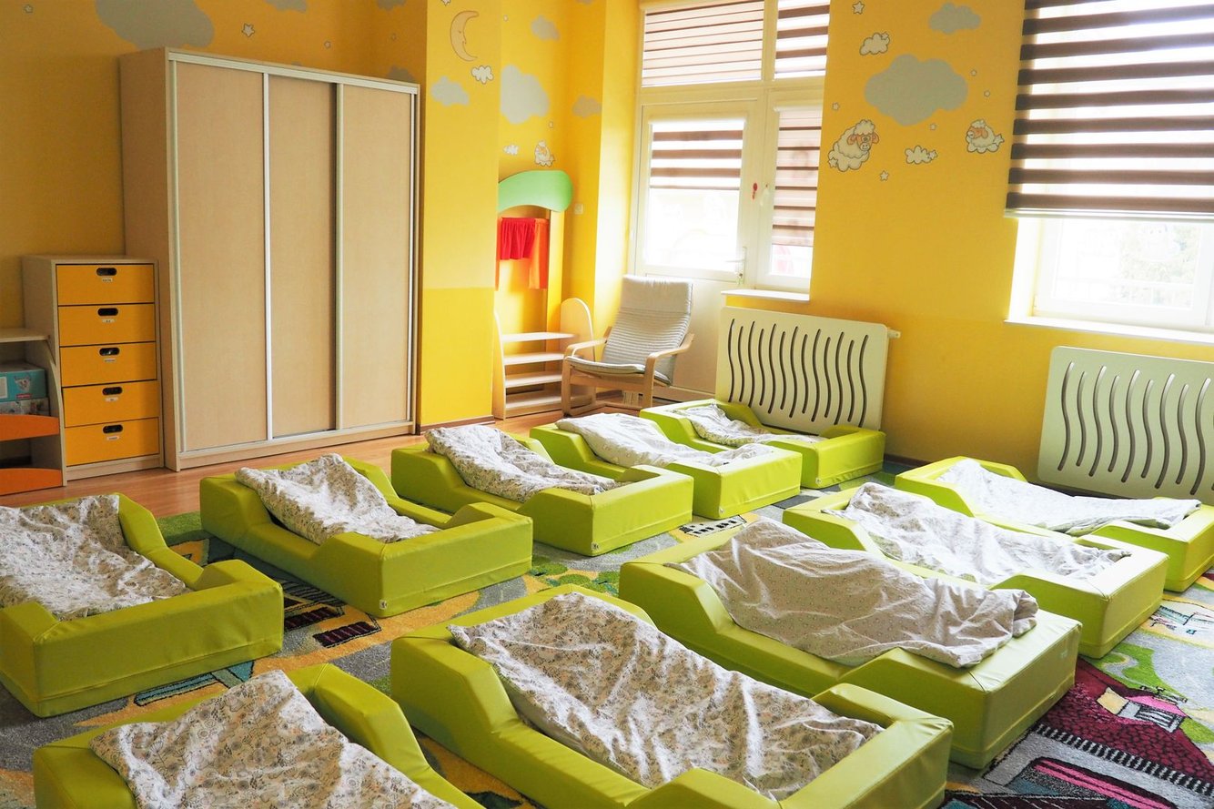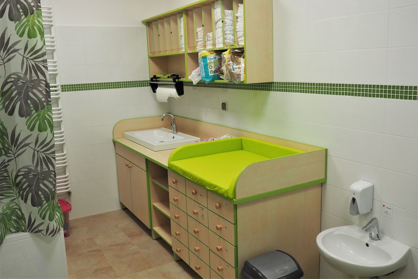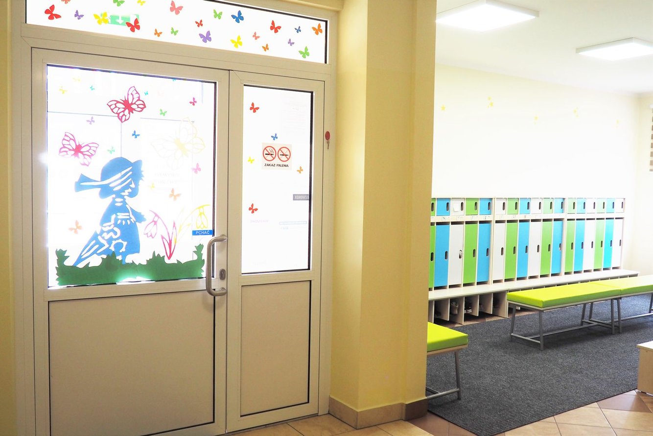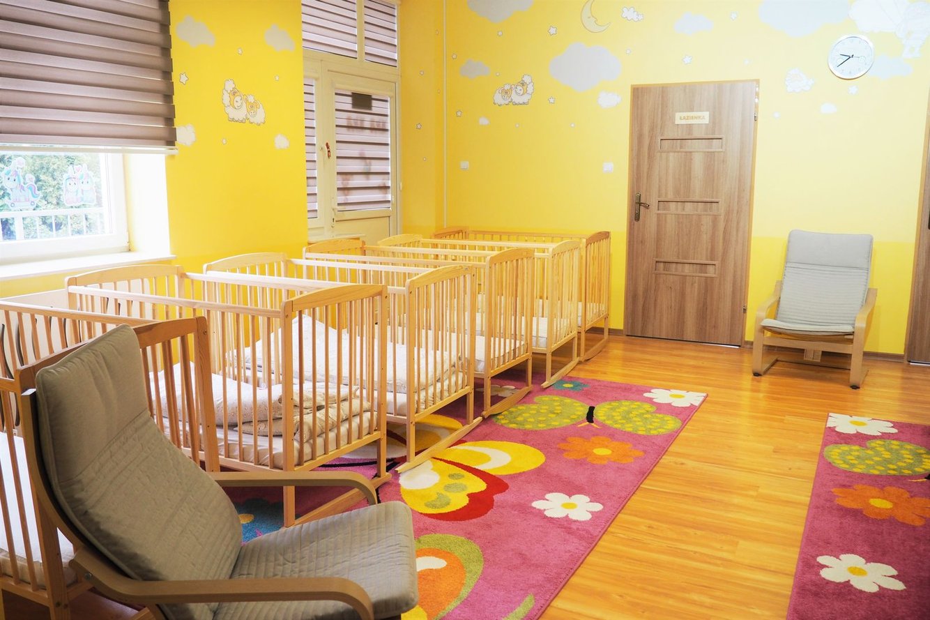 Żłobek dysponuje trzema przestronnymi salami zabaw, przy każdej urządzono oddzielne sypialnie i sanitariaty z przewijakami. Sale są wyposażone w meble, tablice manipulacyjne, zabawki, książeczki i sprzęt multimedialny dostosowany do potrzeb dzieci, wspomagający ich rozwój. Żłobek dysponuje aplikacją „Magiczny Dywan”, z której korzystają maluchy rozwijając szczególnie swoje umiejętności ruchowe. W ramach wsparcia dla dzieci żłobek zapewnia pościel z atestem, naczynia do spożywania posiłków przygotowywanych przez własną kuchnię obsługującą przedszkole i żłobek. Pomieszczenia i wyposażenie są regularnie czyszczone i dezynfekowane, placówka wyposażona jest w profesjonalną lampę UV oraz ozonator. Dzieci mogą także korzystać z nowo urządzonego, przyżłobkowego placu zabaw i ogrodu. W celu zagwarantowania bezpieczeństwa dzieci, obiekt jest monitorowany i wyposażony w wideomofon.