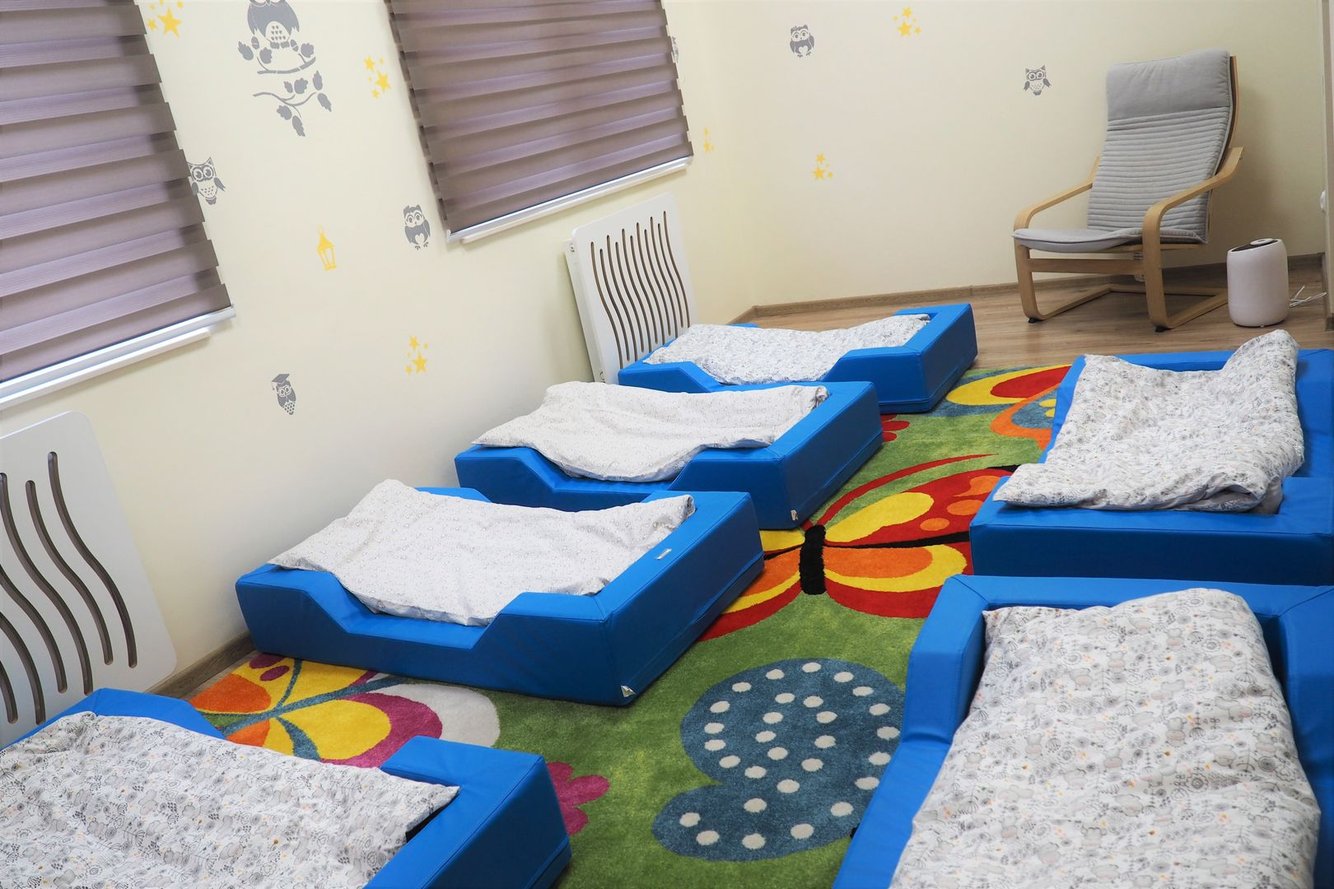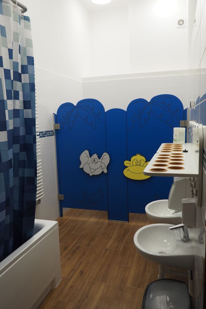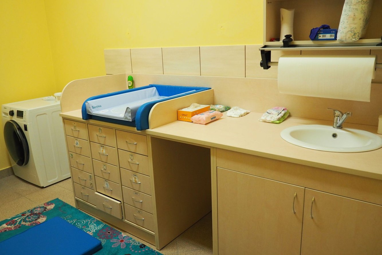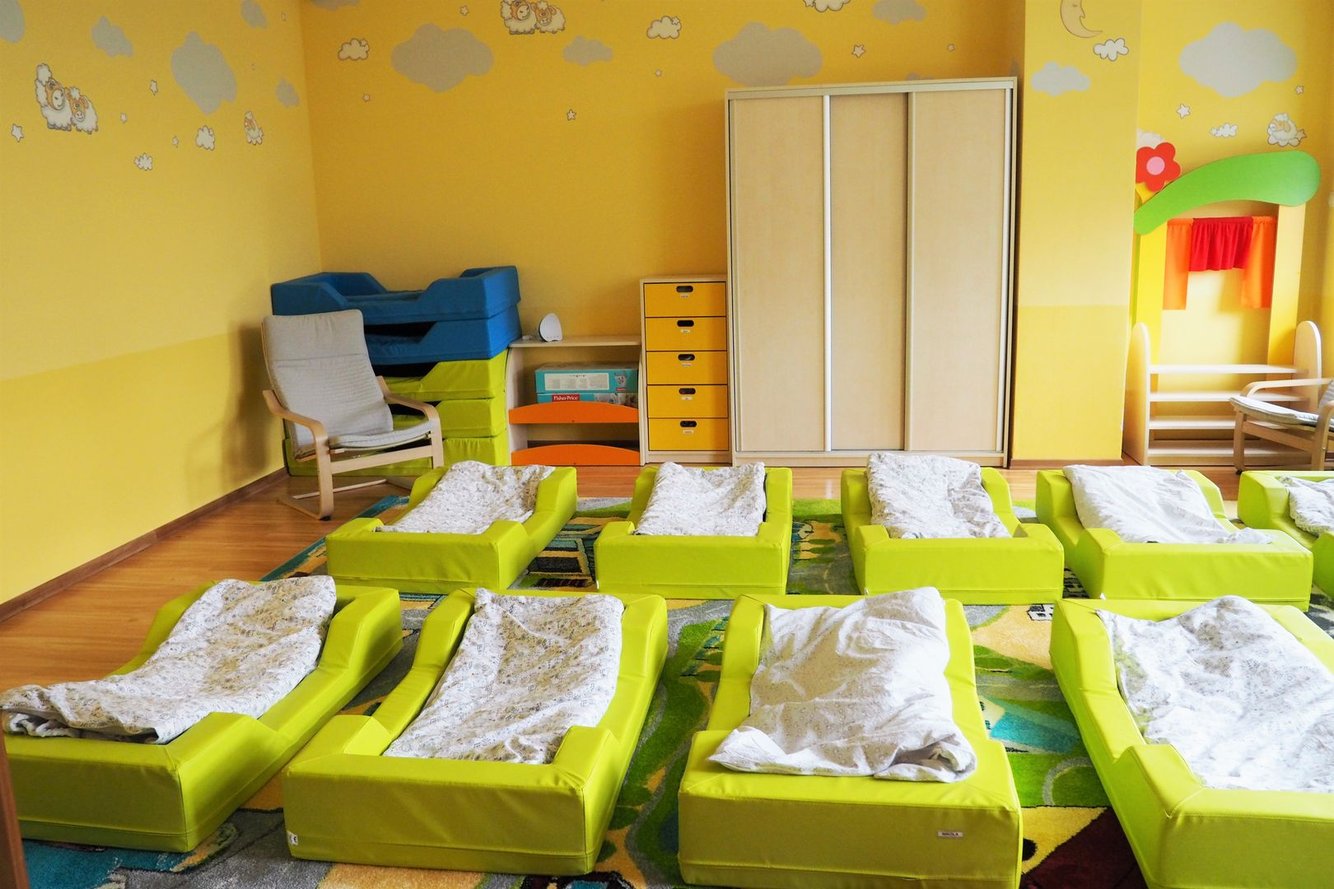 Żłobek dysponuje trzema przestronnymi salami zabaw, przy każdej urządzono oddzielne sypialnie i sanitariaty z przewijakami. Sale są wyposażone w meble, tablice manipulacyjne, zabawki, książeczki i sprzęt multimedialny dostosowany do potrzeb dzieci, wspomagający ich rozwój. Żłobek dysponuje aplikacją „Magiczny Dywan”, z której korzystają maluchy rozwijając szczególnie swoje umiejętności ruchowe. W ramach wsparcia dla dzieci żłobek zapewnia pościel z atestem, naczynia do spożywania posiłków przygotowywanych przez własną kuchnię obsługującą przedszkole i żłobek. Pomieszczenia i wyposażenie są regularnie czyszczone i dezynfekowane, placówka wyposażona jest w profesjonalną lampę UV oraz ozonator. Dzieci mogą także korzystać z nowo urządzonego, przyżłobkowego placu zabaw i ogrodu. W celu zagwarantowania bezpieczeństwa dzieci, obiekt jest monitorowany i wyposażony w wideomofon.