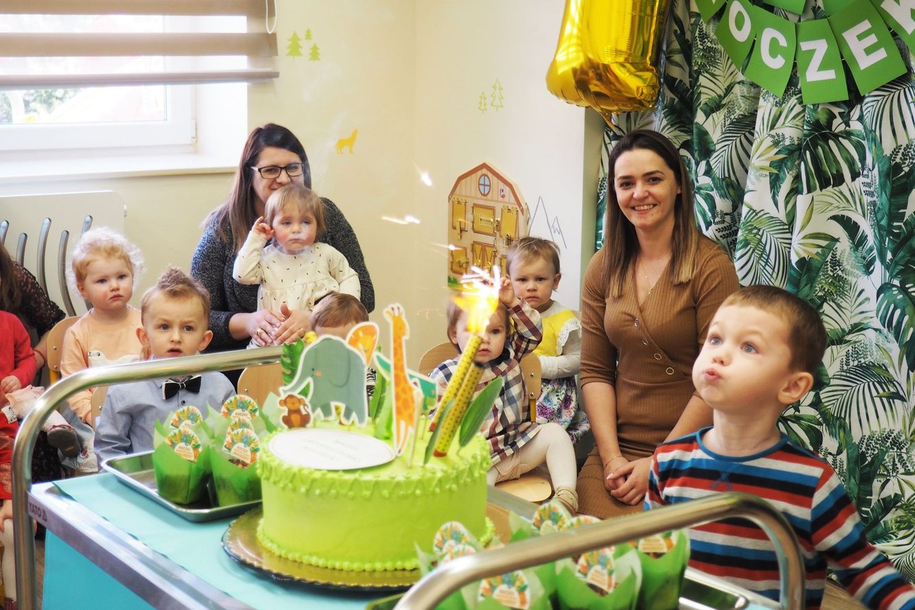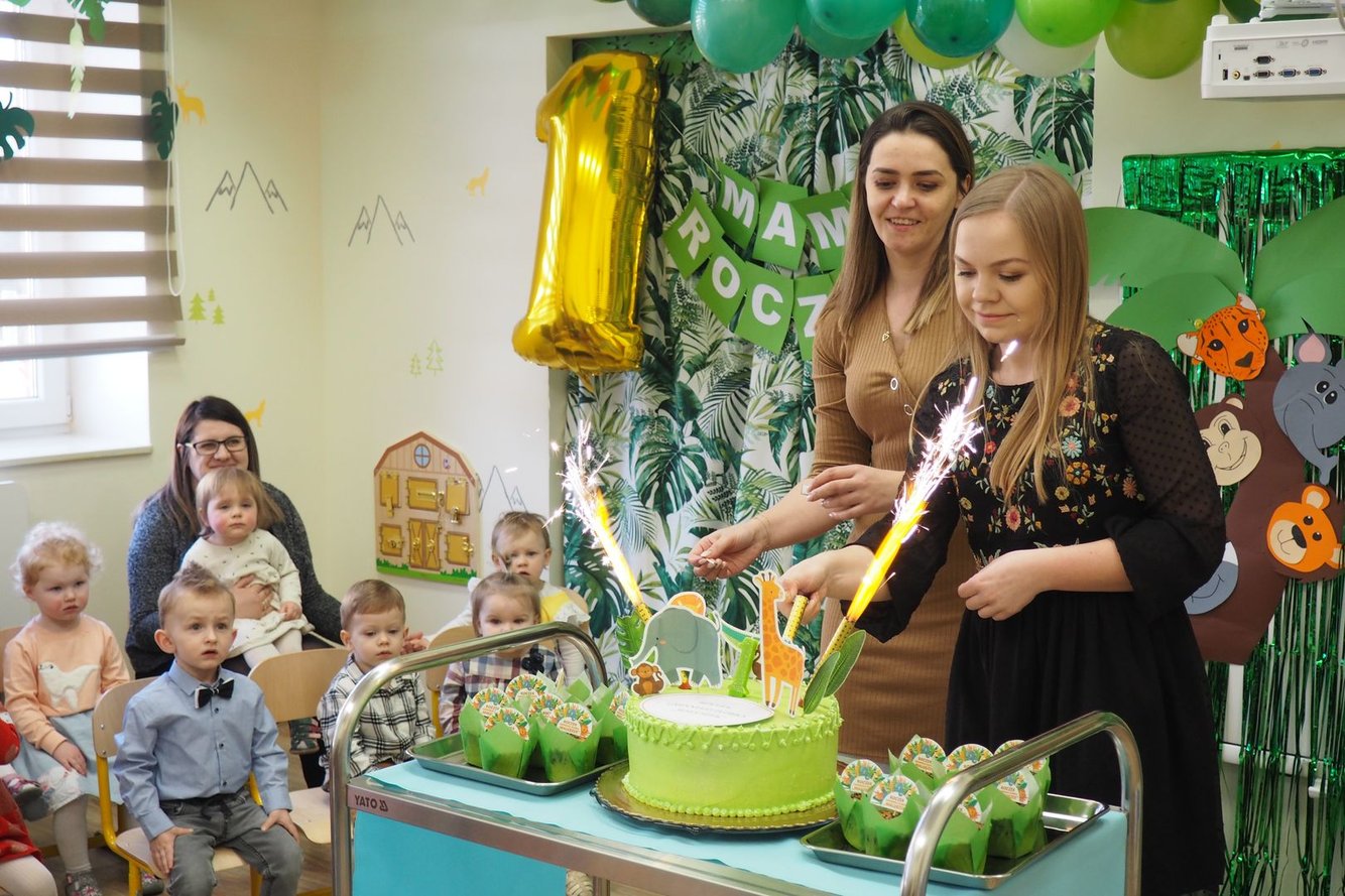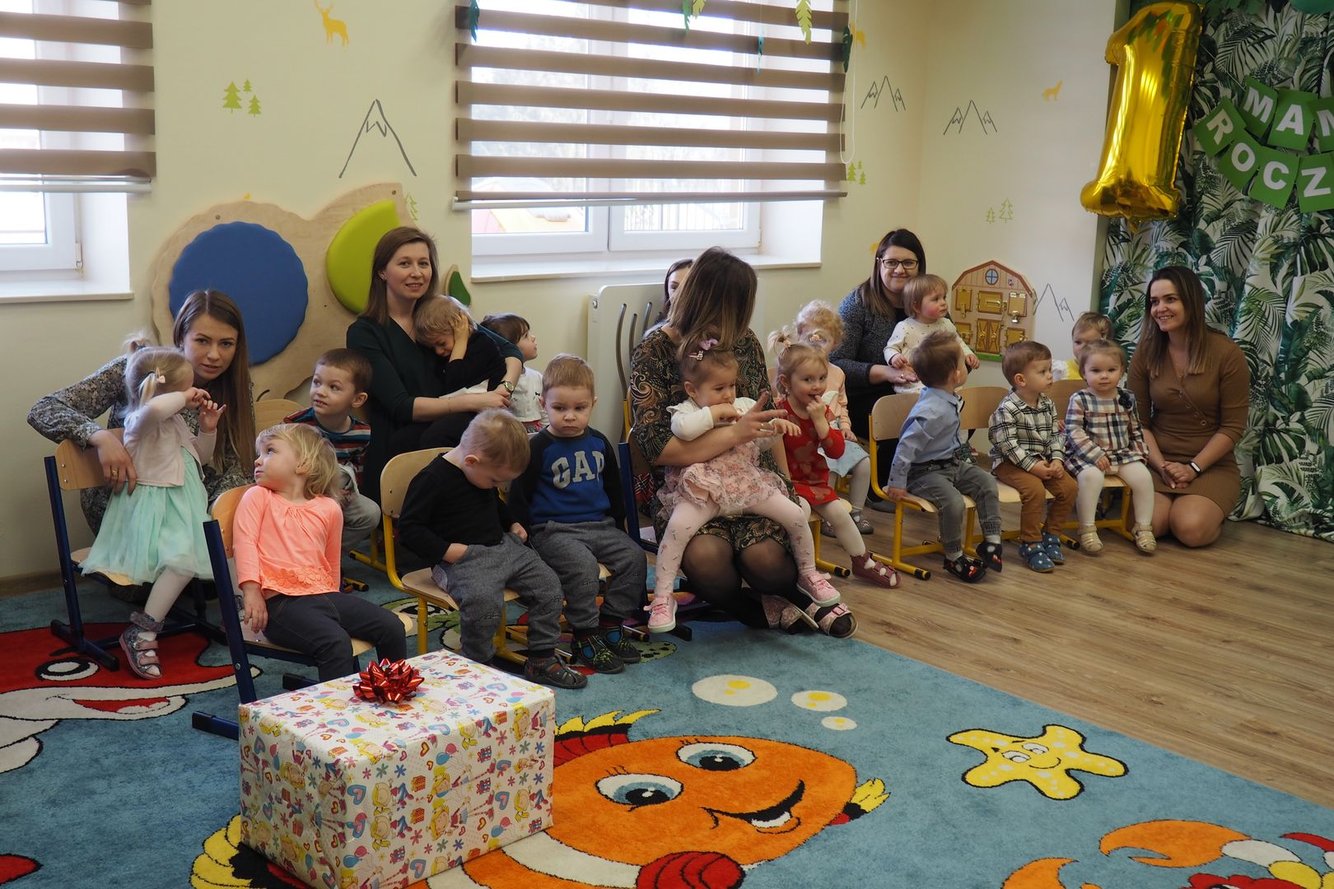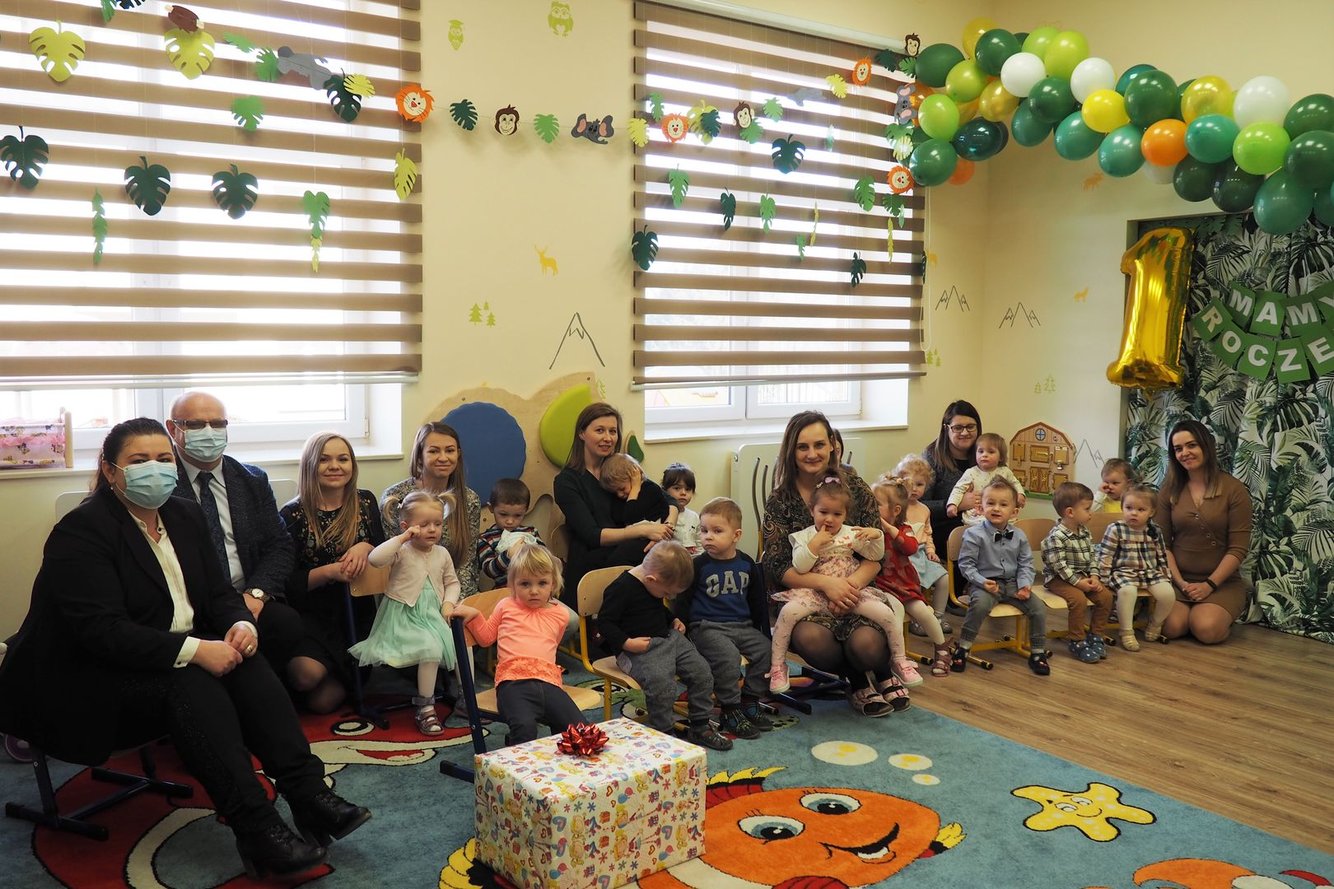 2 marca 2021 r. Gminny Żłobek „Maluszek” obchodził swoje pierwsze urodziny. Z uwagi na epidemię były one bardzo szczególne, przygotowano kartki okolicznościowe, które zostały rozesłane do osób wspierających działalność żłobka i rodziców korzystających z żłobka. W okolicznościowej imprezie urodzinowej uczestniczył Pan Marek Tęczar Wójt Gminy, Pani Dorota Łuszcz koordynator realizowanego projektu w ramach którego powołano żłobek, personel żłobka i dzieci objęte opieką placówki. Wójt Gminy na ręce Pani Dyrektor wręczył prezent urodzinowy życząc dalszych sukcesów i równie udanych lat funkcjonowania żłobka, podziękował za pracę i zaangażowanie w rozwój placówki. Nie zabrakło tortu z symbolicznymi świeczkami oraz gromkich braw po odśpiewaniu „Sto lat”. Roczek nie byłby tak wyjątkowy, gdyby nie najmłodsi bohaterzy tego dnia. Był śmiech, wzruszenia oraz wiele emocji, które wypełniły urodzinowe przedpołudnie. Wspólne zabawy poprowadzone przez Panie opiekunki, uśmiech na twarzach świadczyły o charakterze tego miejsca i zadowoleniu dzieci.