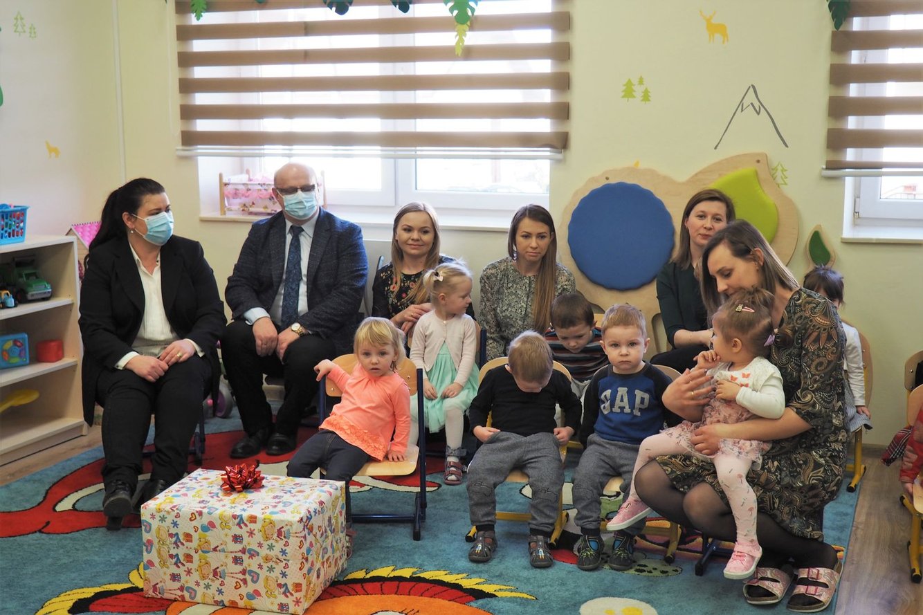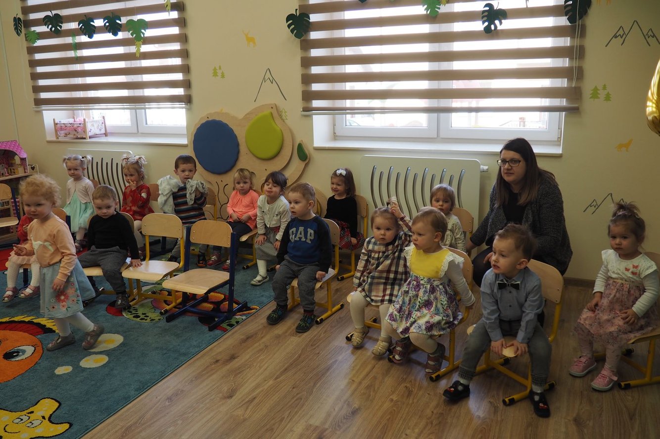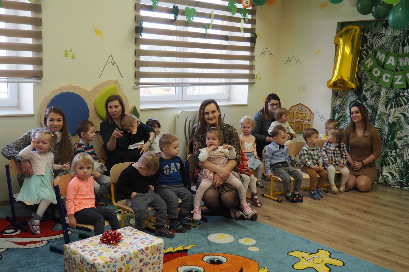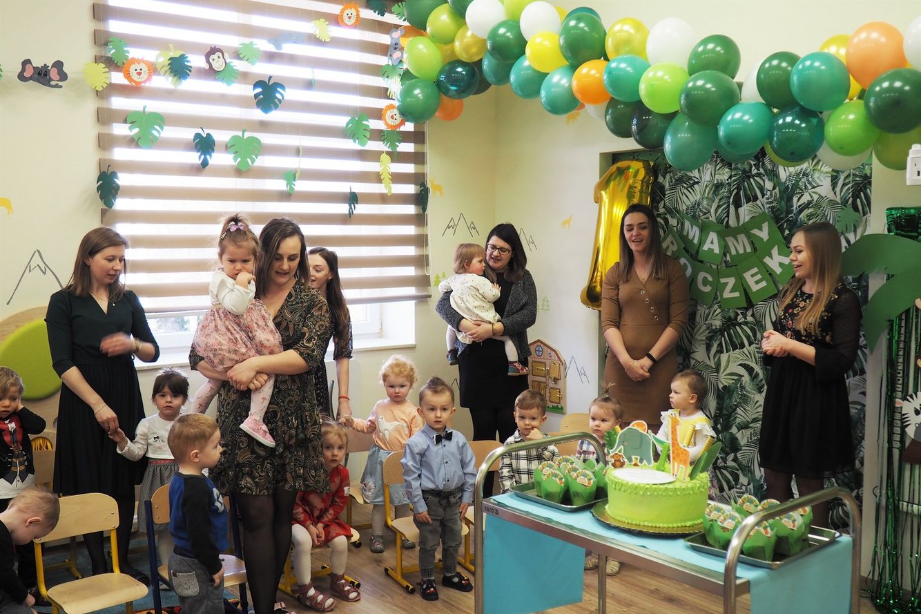 2 marca 2021 r. Gminny Żłobek „Maluszek” obchodził swoje pierwsze urodziny. Z uwagi na epidemię były one bardzo szczególne, przygotowano kartki okolicznościowe, które zostały rozesłane do osób wspierających działalność żłobka i rodziców korzystających z żłobka. W okolicznościowej imprezie urodzinowej uczestniczył Pan Marek Tęczar Wójt Gminy, Pani Dorota Łuszcz koordynator realizowanego projektu w ramach którego powołano żłobek, personel żłobka i dzieci objęte opieką placówki. Wójt Gminy na ręce Pani Dyrektor wręczył prezent urodzinowy życząc dalszych sukcesów i równie udanych lat funkcjonowania żłobka, podziękował za pracę i zaangażowanie w rozwój placówki. Nie zabrakło tortu z symbolicznymi świeczkami oraz gromkich braw po odśpiewaniu „Sto lat”. Roczek nie byłby tak wyjątkowy, gdyby nie najmłodsi bohaterzy tego dnia. Był śmiech, wzruszenia oraz wiele emocji, które wypełniły urodzinowe przedpołudnie. Wspólne zabawy poprowadzone przez Panie opiekunki, uśmiech na twarzach świadczyły o charakterze tego miejsca i zadowoleniu dzieci.