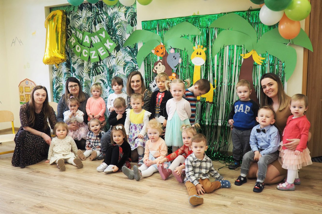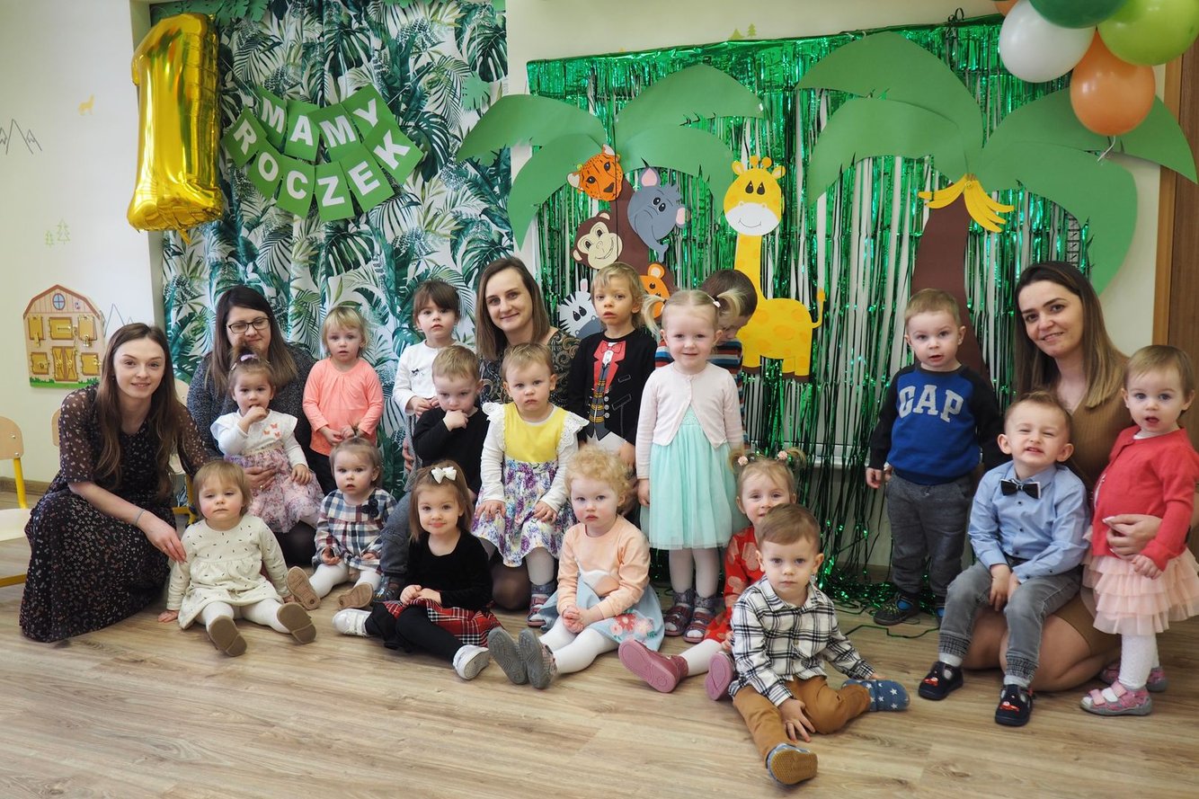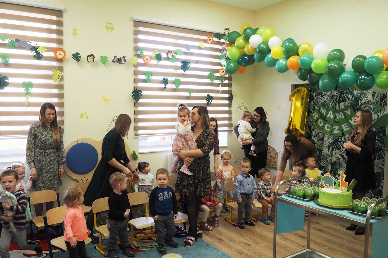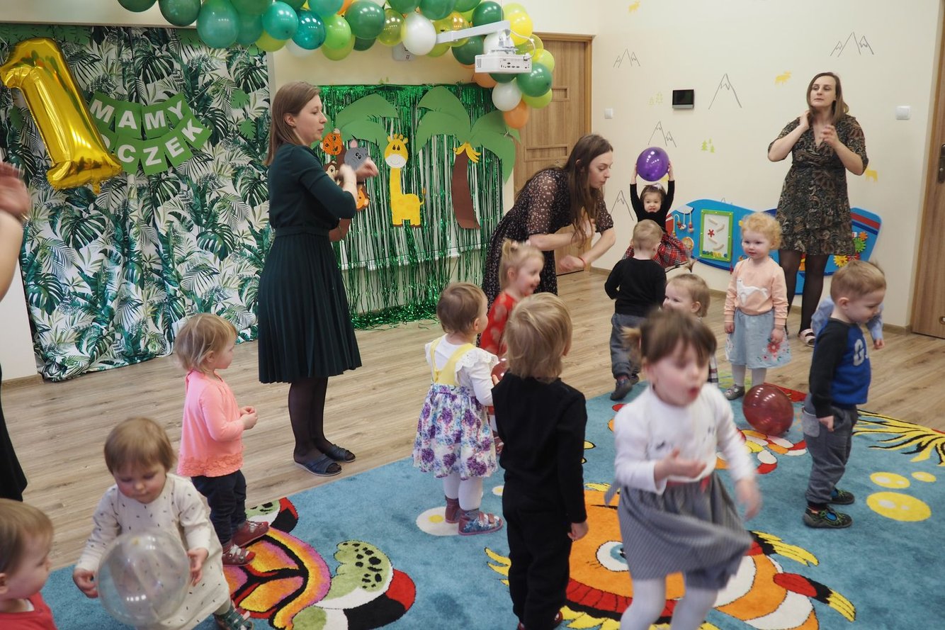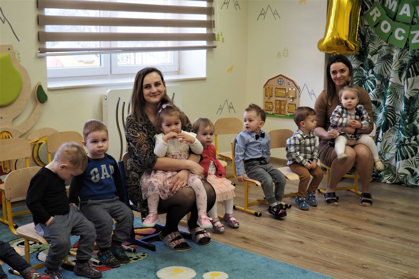 2 marca 2021 r. Gminny Żłobek „Maluszek” obchodził swoje pierwsze urodziny. Z uwagi na epidemię były one bardzo szczególne, przygotowano kartki okolicznościowe, które zostały rozesłane do osób wspierających działalność żłobka i rodziców korzystających z żłobka. W okolicznościowej imprezie urodzinowej uczestniczył Pan Marek Tęczar Wójt Gminy, Pani Dorota Łuszcz koordynator realizowanego projektu w ramach którego powołano żłobek, personel żłobka i dzieci objęte opieką placówki. Wójt Gminy na ręce Pani Dyrektor wręczył prezent urodzinowy życząc dalszych sukcesów i równie udanych lat funkcjonowania żłobka, podziękował za pracę i zaangażowanie w rozwój placówki. Nie zabrakło tortu z symbolicznymi świeczkami oraz gromkich braw po odśpiewaniu „Sto lat”. Roczek nie byłby tak wyjątkowy, gdyby nie najmłodsi bohaterzy tego dnia. Był śmiech, wzruszenia oraz wiele emocji, które wypełniły urodzinowe przedpołudnie. Wspólne zabawy poprowadzone przez Panie opiekunki, uśmiech na twarzach świadczyły o charakterze tego miejsca i zadowoleniu dzieci.