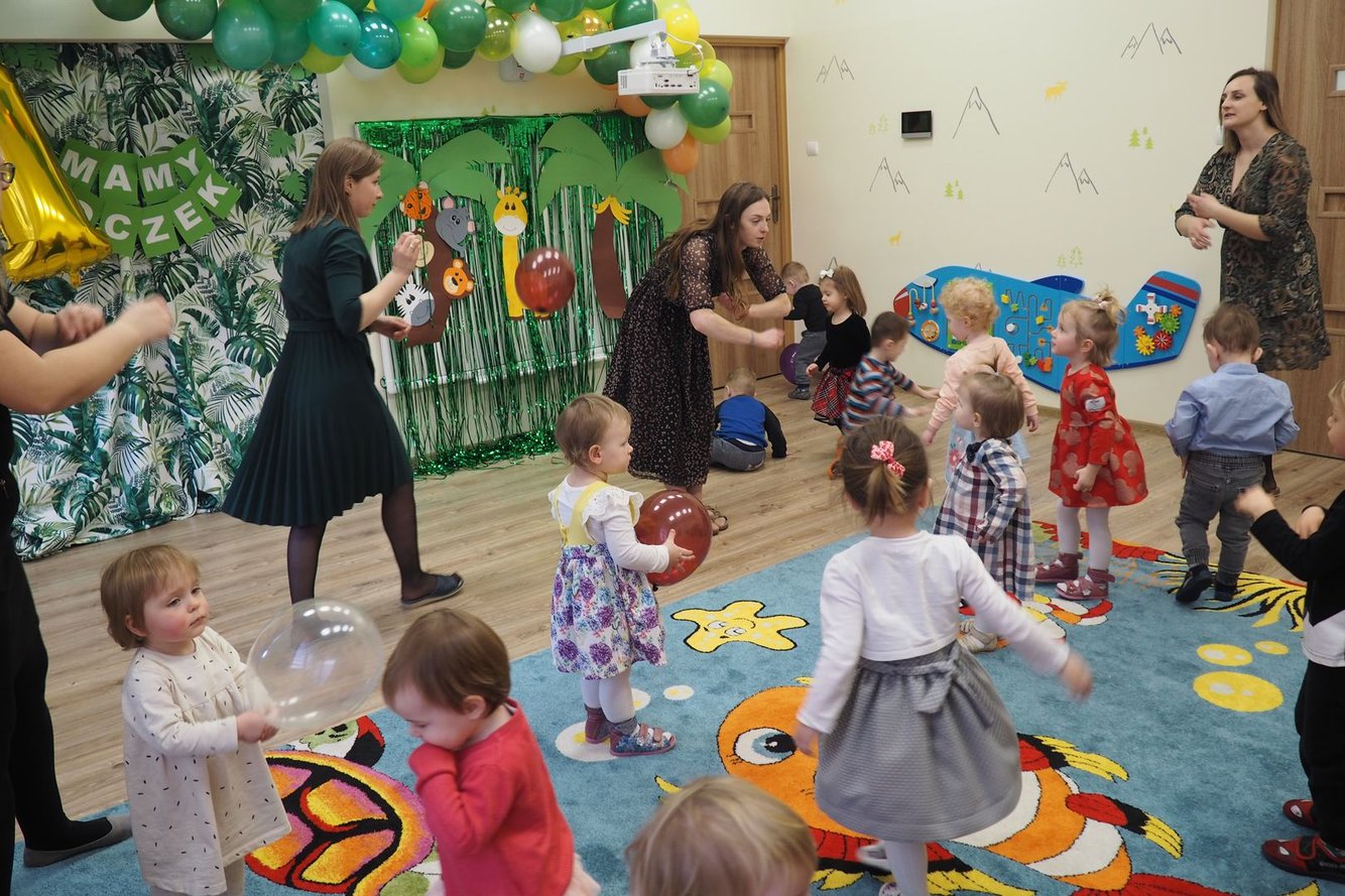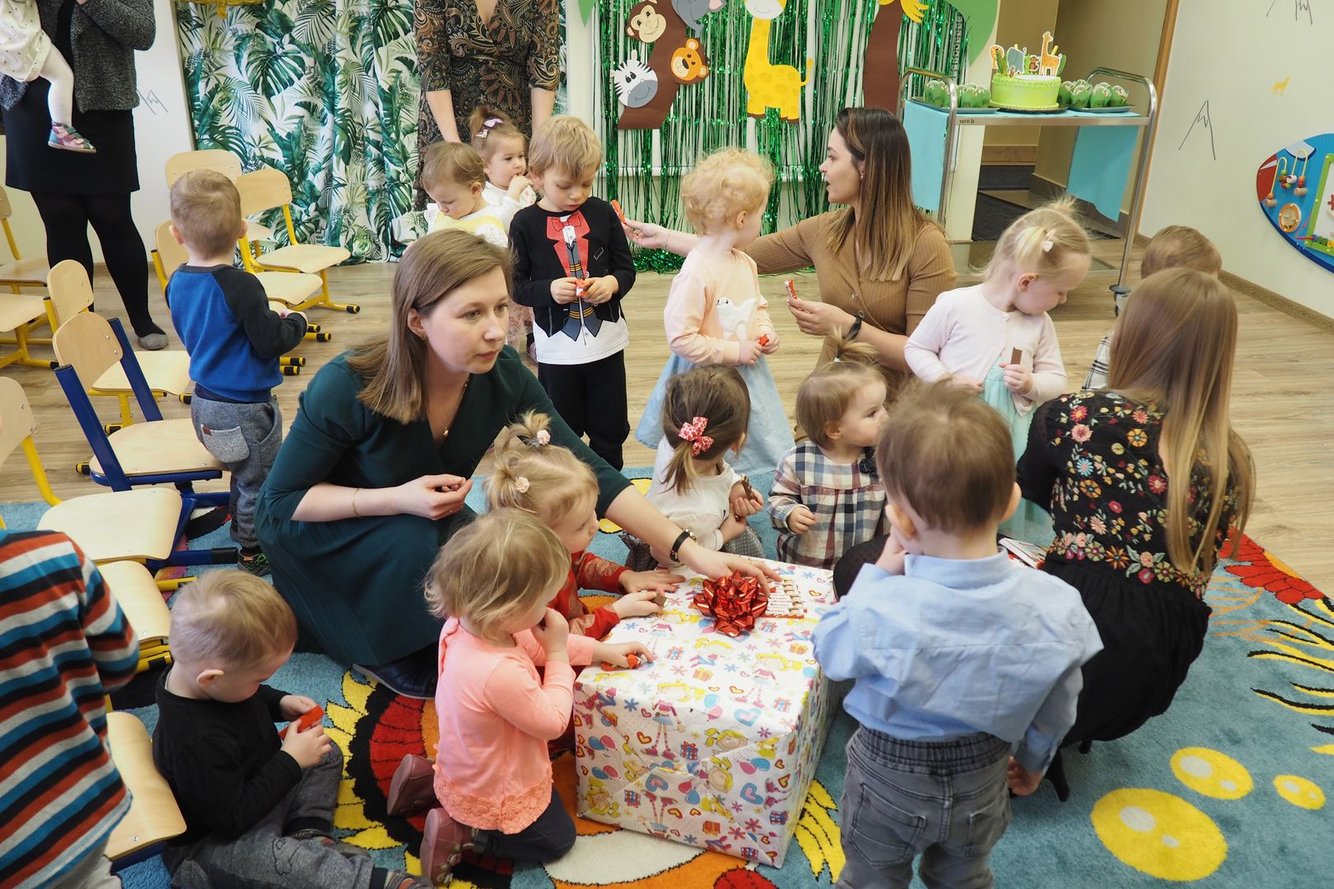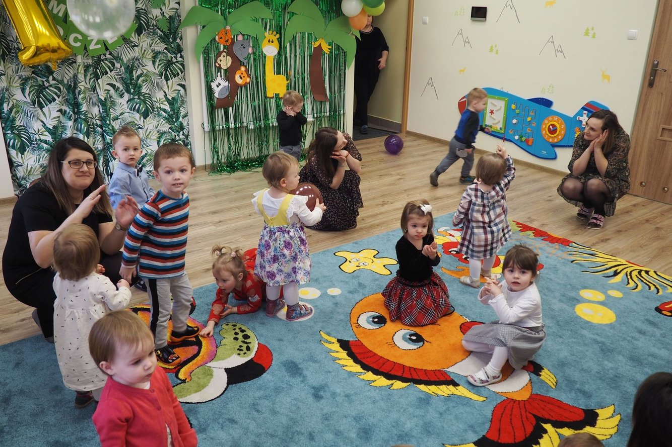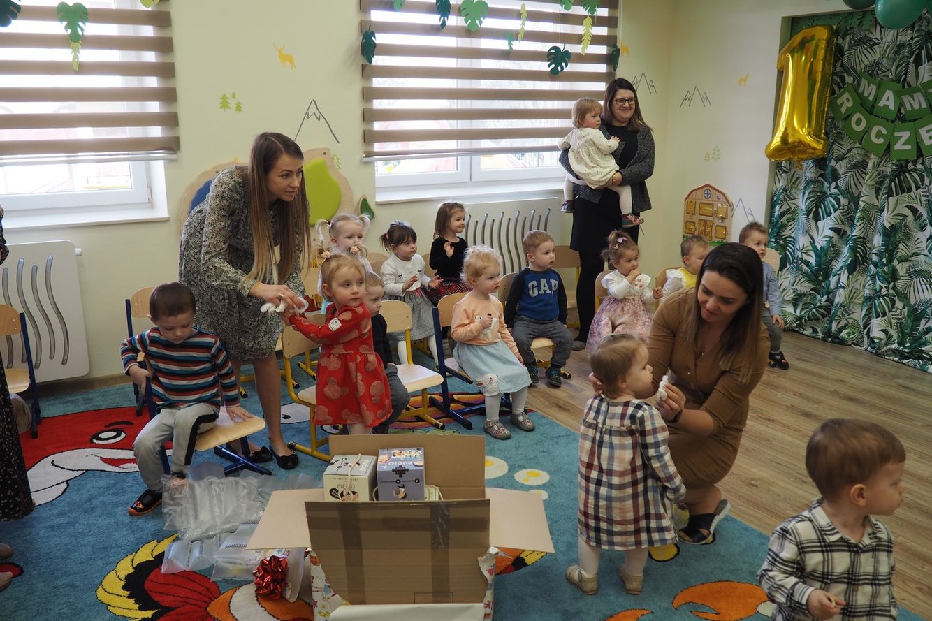 2 marca 2021 r. Gminny Żłobek „Maluszek” obchodził swoje pierwsze urodziny. Z uwagi na epidemię były one bardzo szczególne, przygotowano kartki okolicznościowe, które zostały rozesłane do osób wspierających działalność żłobka i rodziców korzystających z żłobka. W okolicznościowej imprezie urodzinowej uczestniczył Pan Marek Tęczar Wójt Gminy, Pani Dorota Łuszcz koordynator realizowanego projektu w ramach którego powołano żłobek, personel żłobka i dzieci objęte opieką placówki. Wójt Gminy na ręce Pani Dyrektor wręczył prezent urodzinowy życząc dalszych sukcesów i równie udanych lat funkcjonowania żłobka, podziękował za pracę i zaangażowanie w rozwój placówki. Nie zabrakło tortu z symbolicznymi świeczkami oraz gromkich braw po odśpiewaniu „Sto lat”. Roczek nie byłby tak wyjątkowy, gdyby nie najmłodsi bohaterzy tego dnia. Był śmiech, wzruszenia oraz wiele emocji, które wypełniły urodzinowe przedpołudnie. Wspólne zabawy poprowadzone przez Panie opiekunki, uśmiech na twarzach świadczyły o charakterze tego miejsca i zadowoleniu dzieci.