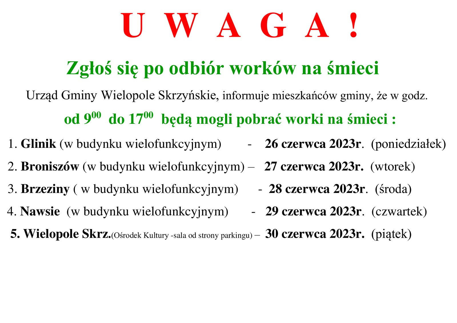 Wtorek 20 czerwca 2023 Ogłoszenie o wydawaniu worków 2023 r. Strona Główna/Biuletyn Informacji Publicznej/Gospodarka Komunalna