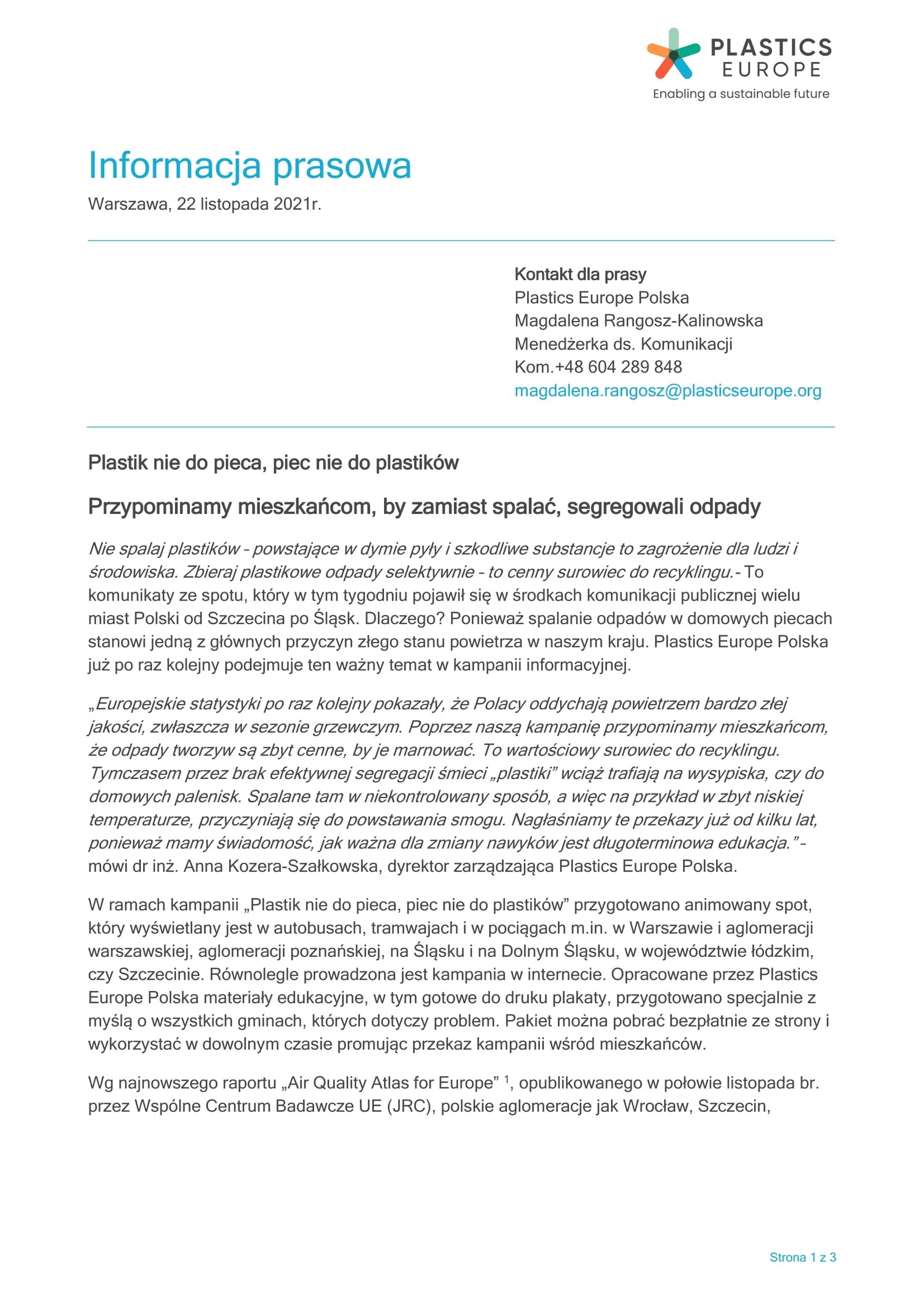 Środa 19 stycznia 2022 Plastik nie do pieca, piec nie do plastików Strona Główna/Biuletyn Informacji Publicznej/Gospodarka KomunalnaPlastik nie do pieca, piec nie do plastikówPlastik nie do pieca, piec nie do plastików