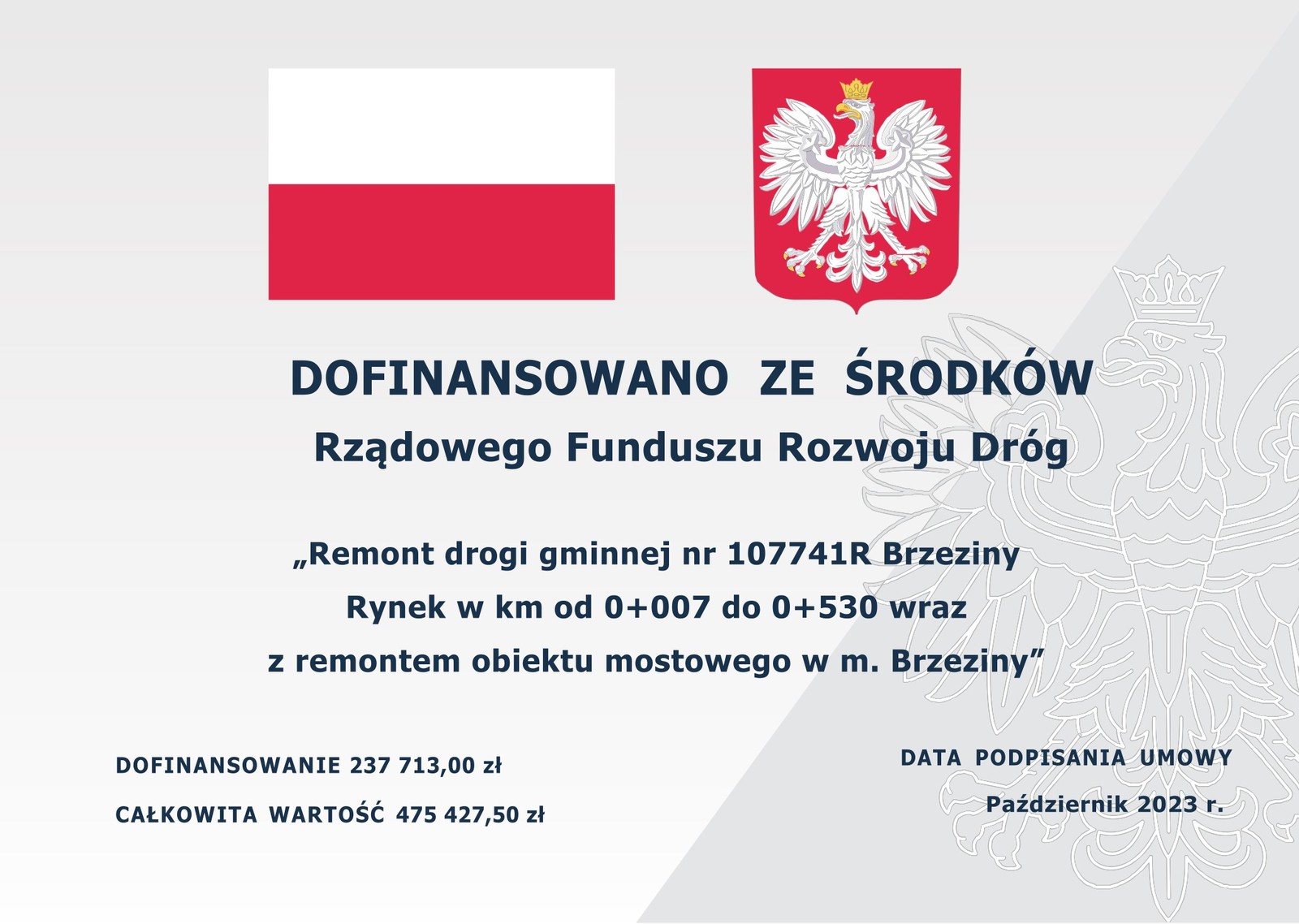 „Remont drogi gminnej nr 107741R Brzeziny Rynek w km od 0+007 do 0+530 wraz z remontem obiektu mostowego w m. Brzeziny”
