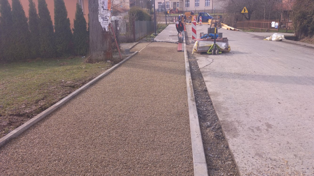 - wykonanie podbudowy MCE w zakresie istniejącej nawierzchni jezdni DG;