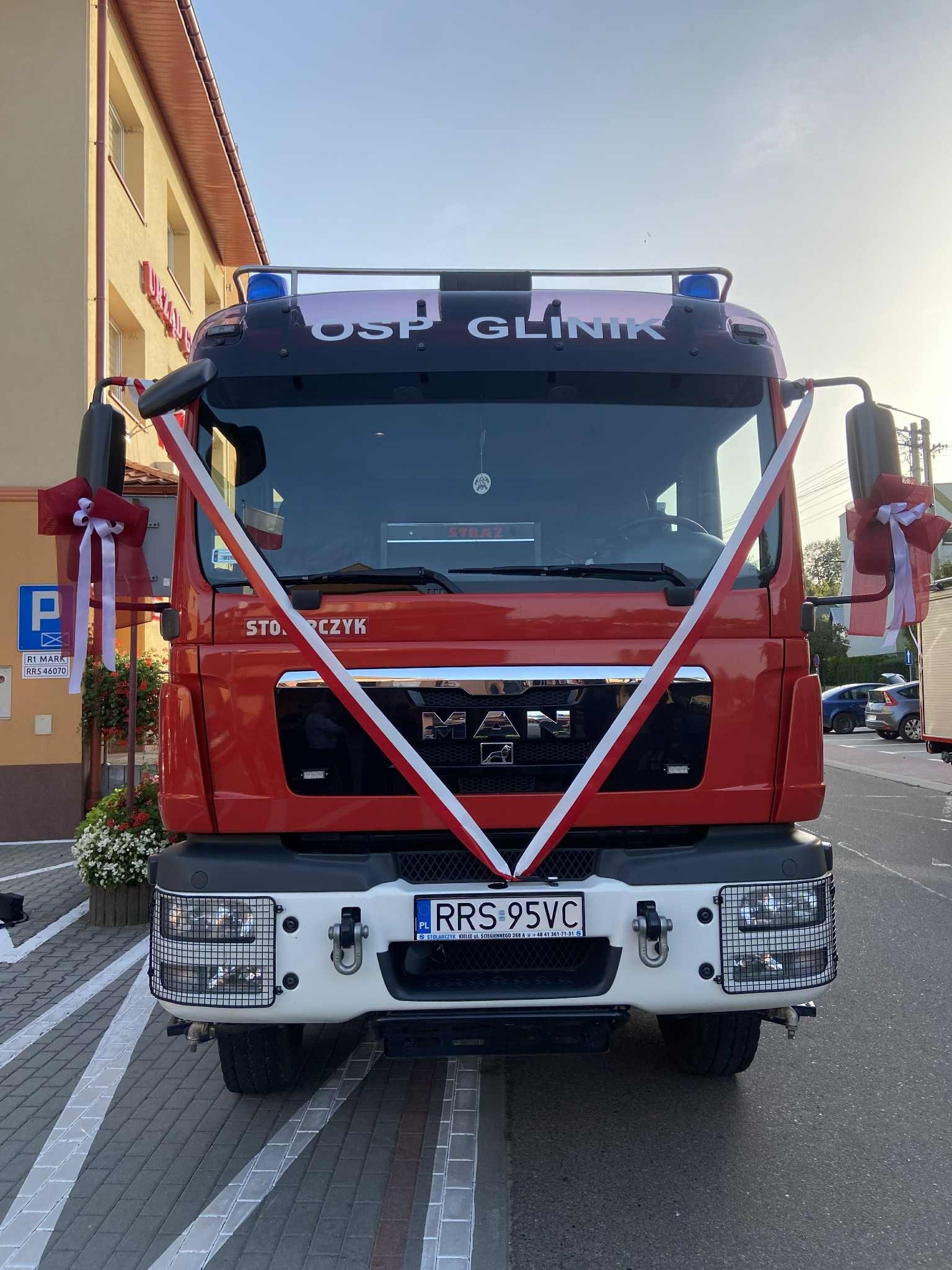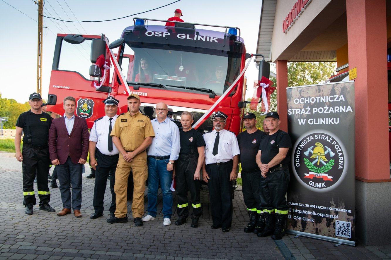 29.08.2025 roku nastąpiło uroczyste przekazanie samochodu ratowniczo - gaśniczego MAN dla jednostki OSP Glinik z jednostki OSP KSRG Wielopole Skrzyńskie.