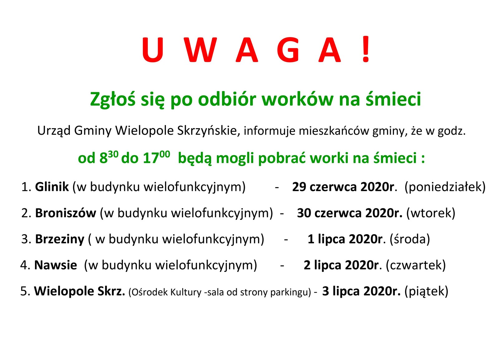 UWAGA ODBIÓR WORKÓW NA ŚMIECI
